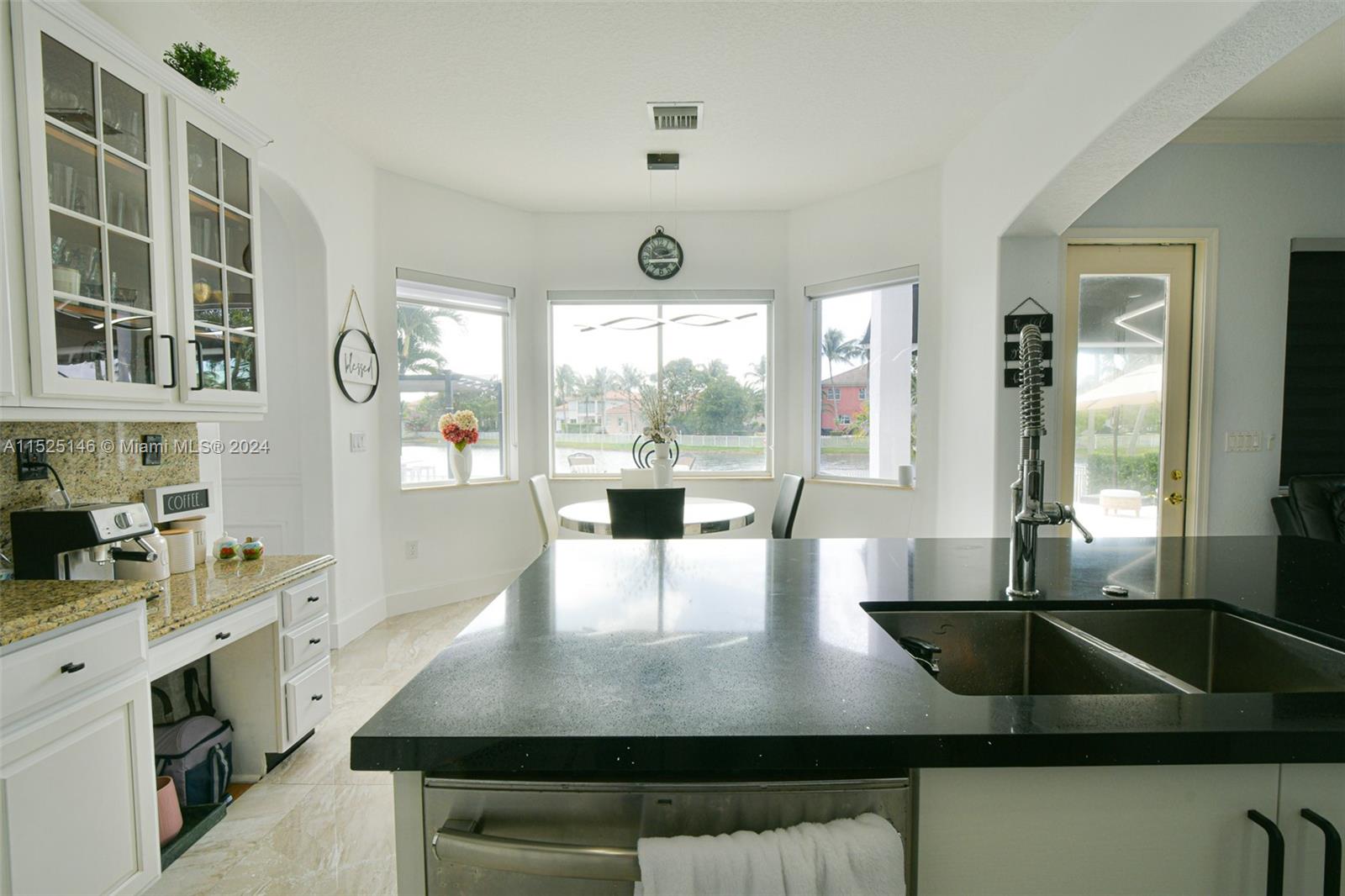 Price to sell now! Spectacular Mediterranean-style home in Sunset Lakes- Grand Isles! Lakefront 4 Bedrooms 3.5 Bathrooms This home is sure to impress upon view. High vaulted ceilings, formal living and dining room, large kitchen with double oven and granite countertops and quartz island. Awesome family room perfect for entertaining. The home features a full 3-car garage mesmerizing views of the lake with a spacious seating area by the pool.