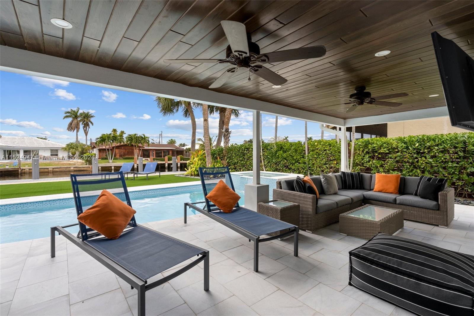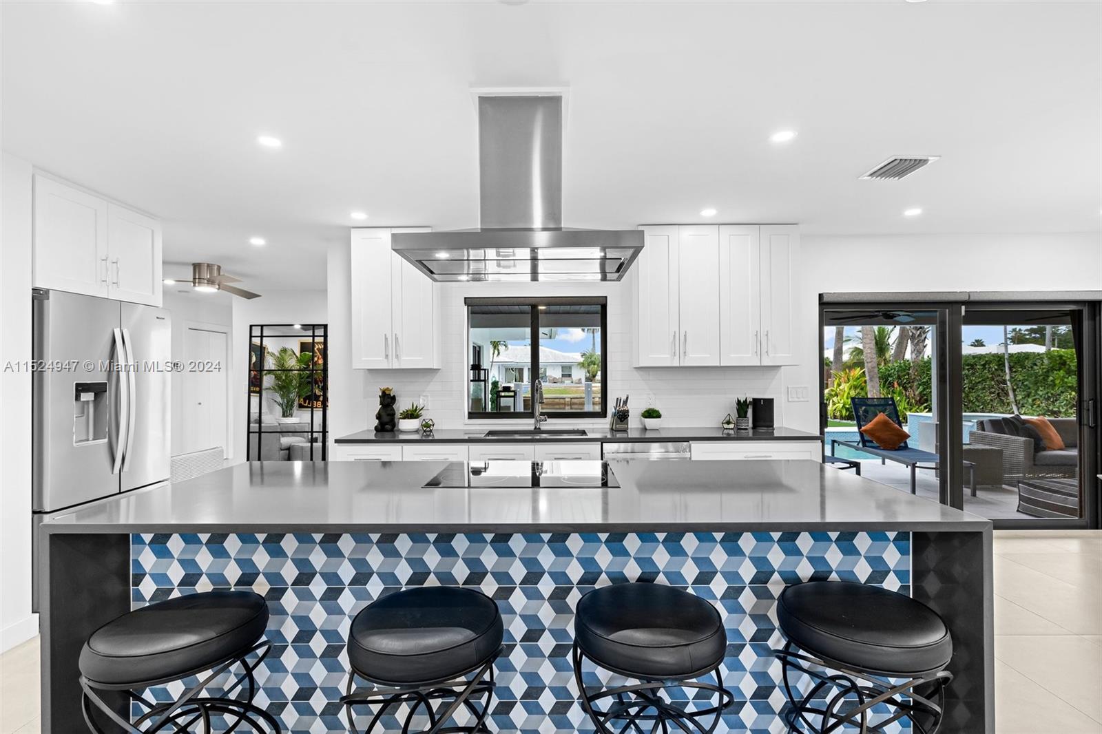 Beautiful waterfront home in Lake Estates! This fully renovated residence offers 80ft of water frontage with new sea wall cap, dock & 27,000 lb boat lift. The open floor plan is lined with upgrades including, impact windows & doors, Lutron lighting, Hunter Douglas blinds and custom finishes. The remodeled exterior includes new marble pavers, outdoor wet bar, new pool equipment w/ smart system, lighting and turf. Home also has new pvc plumbing under the home, newer A/C, new garage door and garage epoxy floor. This ocean access home is a must see!