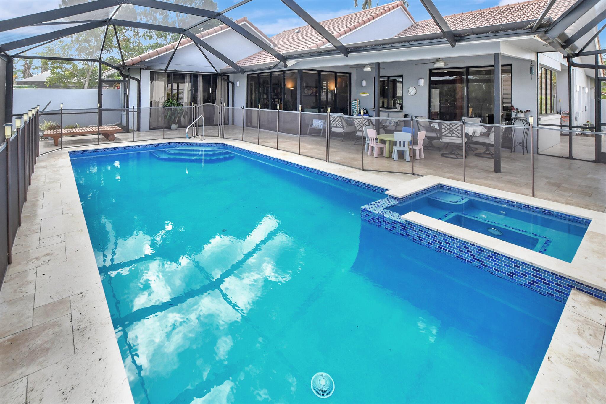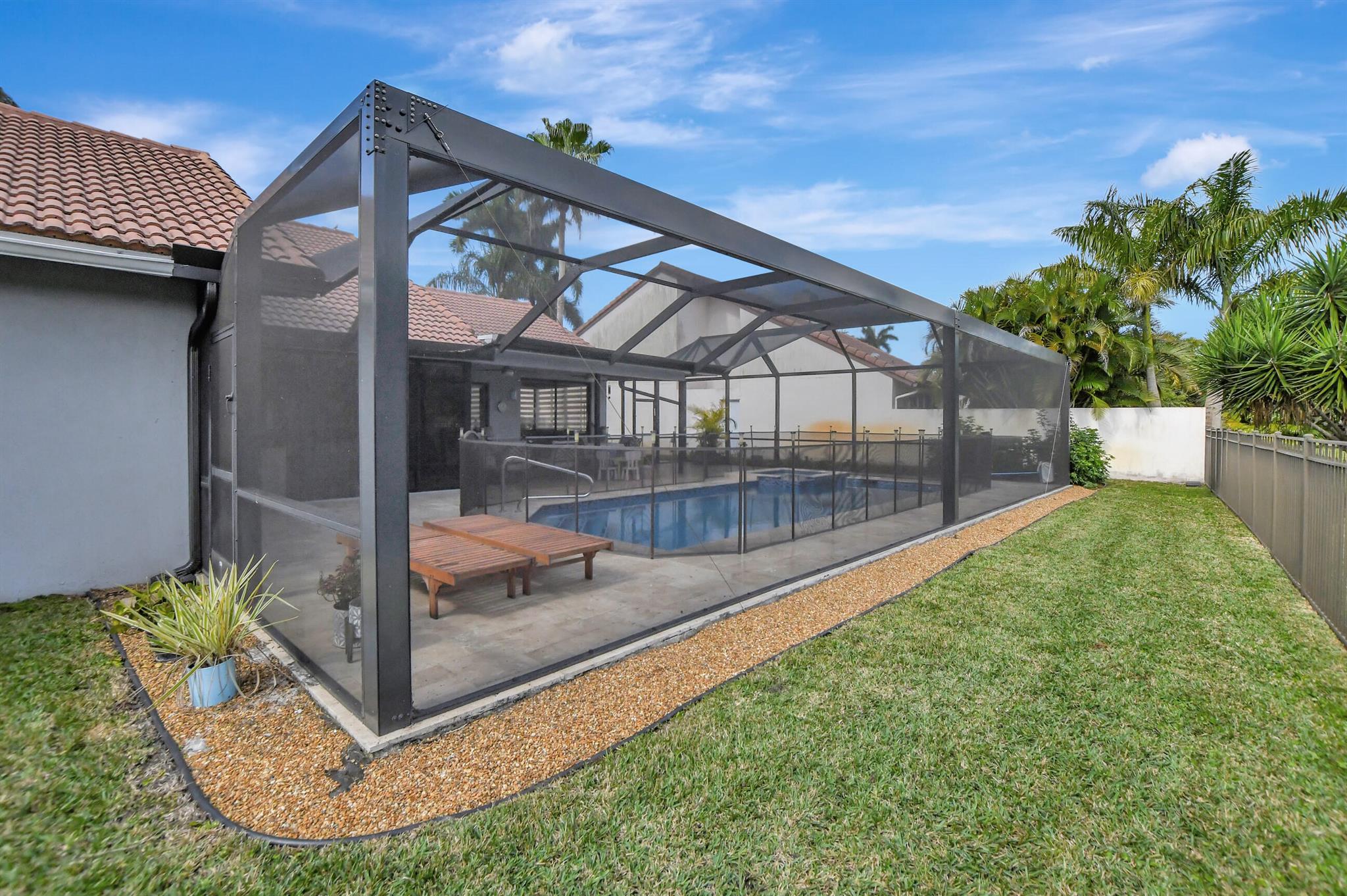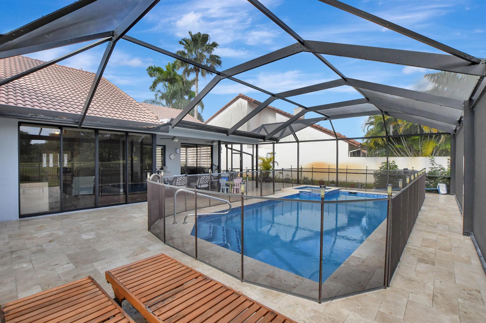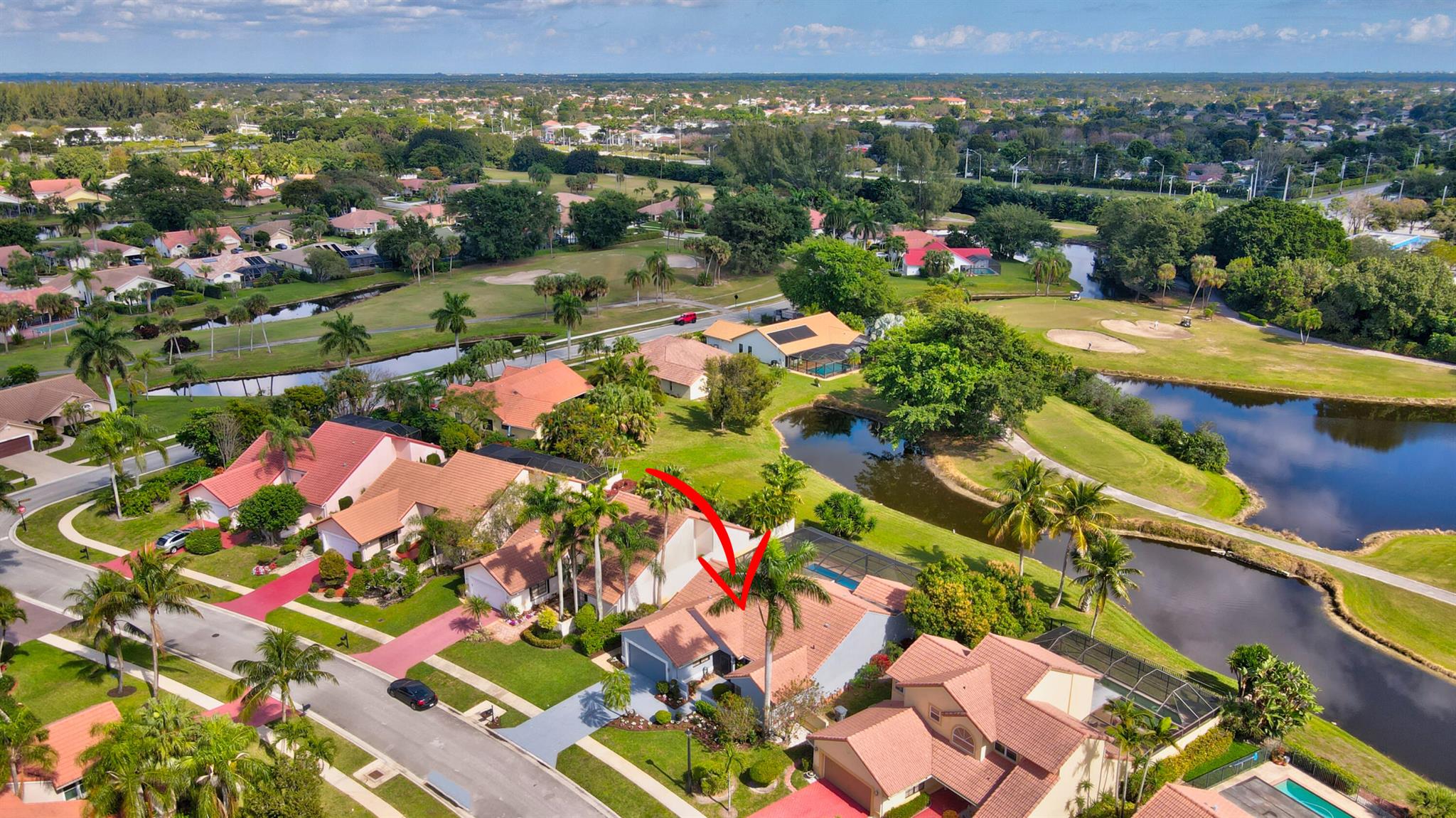 Immaculate, with a double lake and unobstructed golf course view. Huge great room, eat-in kitchen, split floor plan. And a pool patio area that is magnificent, all new pool equipment, renovated pool, travertine deck, panoramic pool inclosure. This is resort living in your own home.Boca Greens is a gated community of 586 homes located one mile north of Glades road on US 441. This community is also the home of the Boca Greens Golf Club. All residents can play the course on a pay for play basis. No membership is required. Premium cable package and high speed Internet included the low homeowner fee.