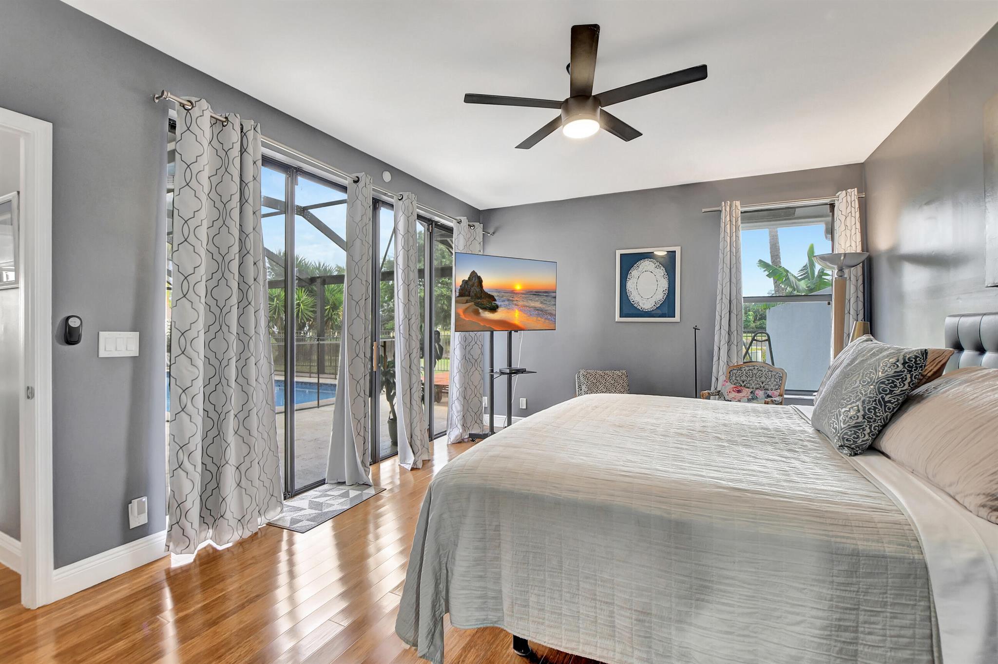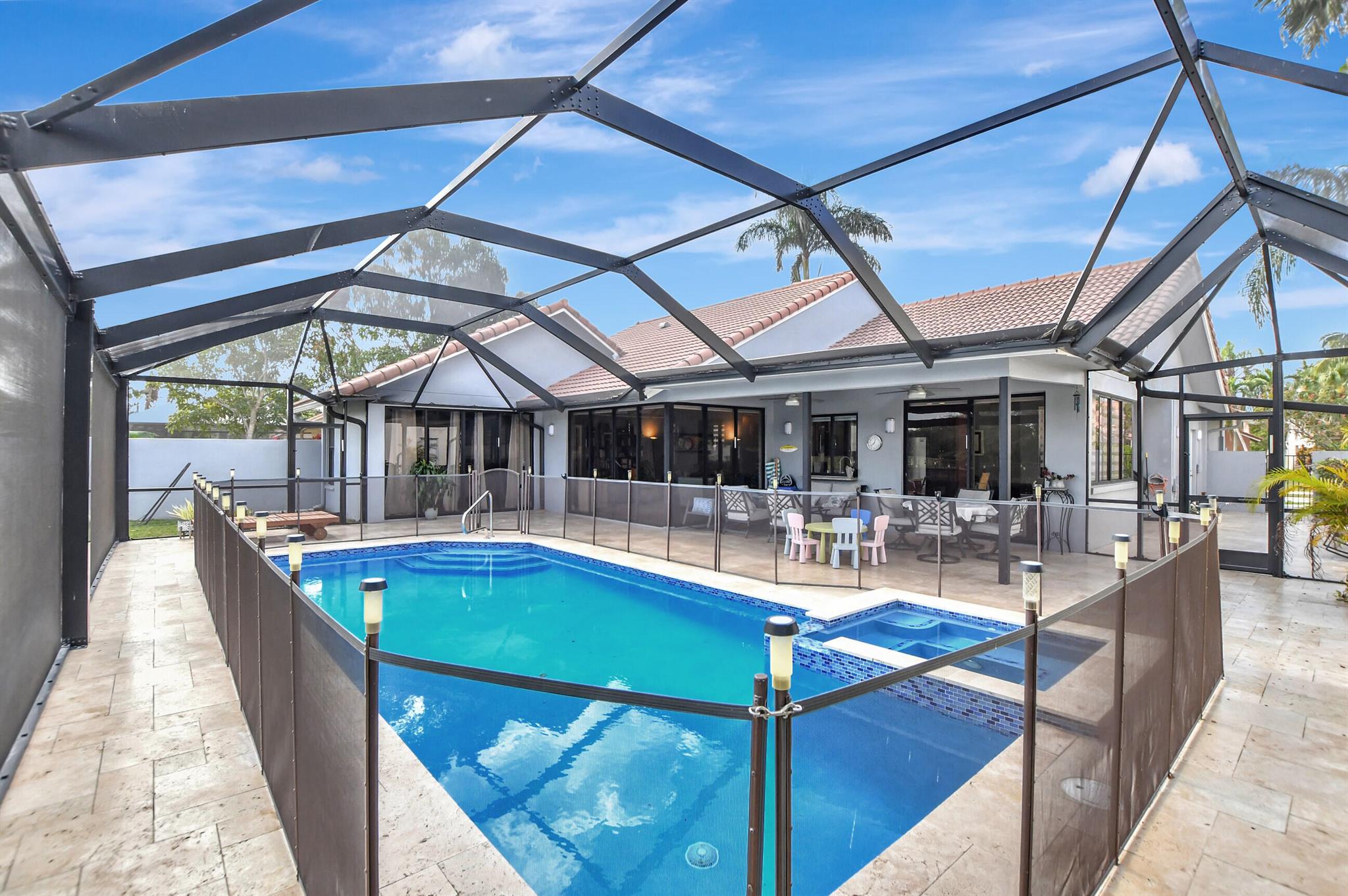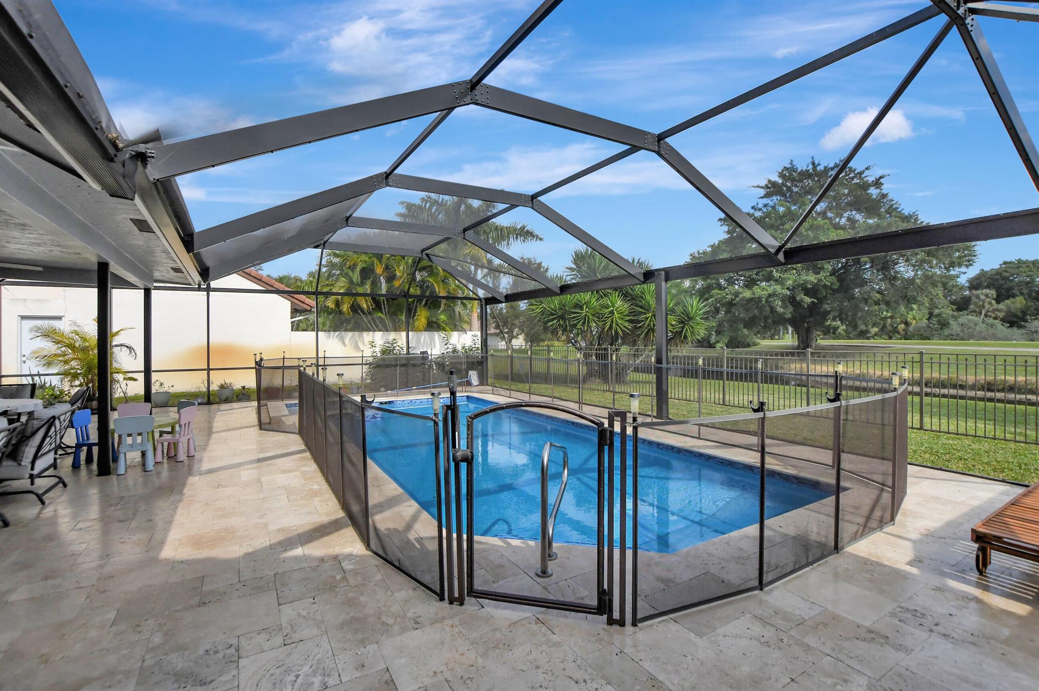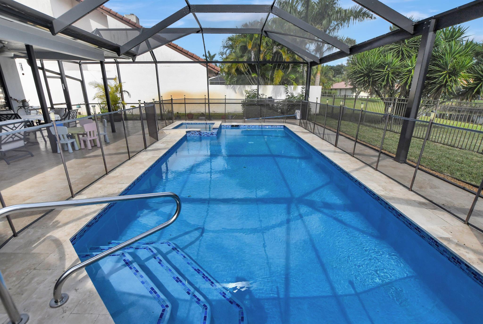 Immaculate, with a double lake and unobstructed golf course view. Huge great room, eat-in kitchen, split floor plan. And a pool patio area that is magnificent, all new pool equipment, renovated pool, travertine deck, panoramic pool inclosure. This is resort living in your own home.Boca Greens is a gated community of 586 homes located one mile north of Glades road on US 441. This community is also the home of the Boca Greens Golf Club. All residents can play the course on a pay for play basis. No membership is required. Premium cable package and high speed Internet included the low homeowner fee.