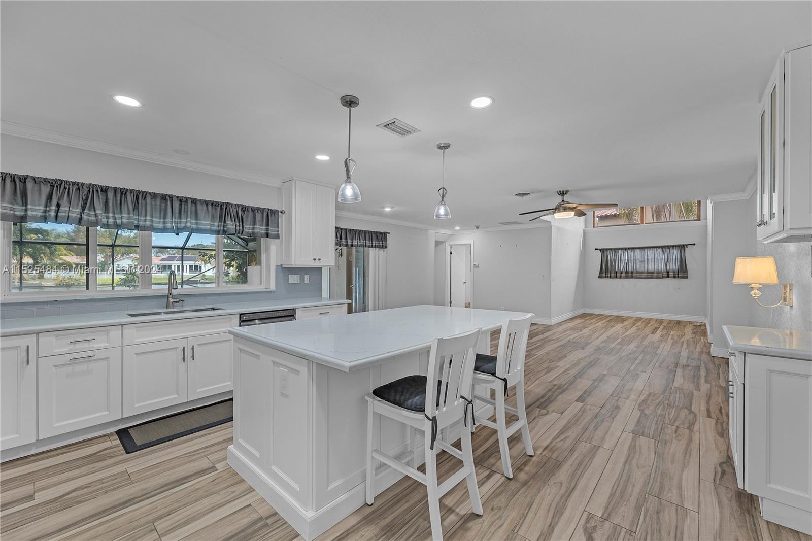 Discover luxury living at Eldorado Estates, one of Plantation's premier gated communities. This expansive five-bedroom, three-bath pool home boasts a spacious floor plan complemented by a vast water view and private dock—great for fishing and relaxing in the beautiful backyard. The updated kitchen adds modern elegance; with 3310 sq ft of living space, this home offers excellent space for a growing family. This tri-split floor plan provides a private mother-in-law, Nanny, or guest room—large family room for entertainment. Walking distance to St. Gregory, the Great Catholic Church/School, and the new Plantation Walk. Plantation's premier shopping, dining, and entertainment hub. Centrally located and minutes away from FLL airport, beaches, downtown Las Olas, and major highways.