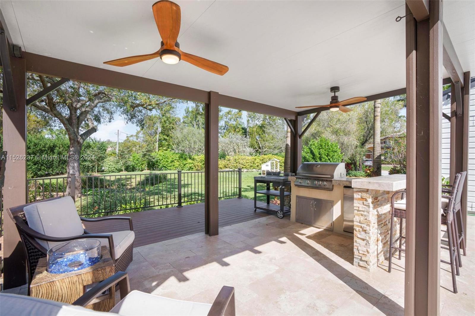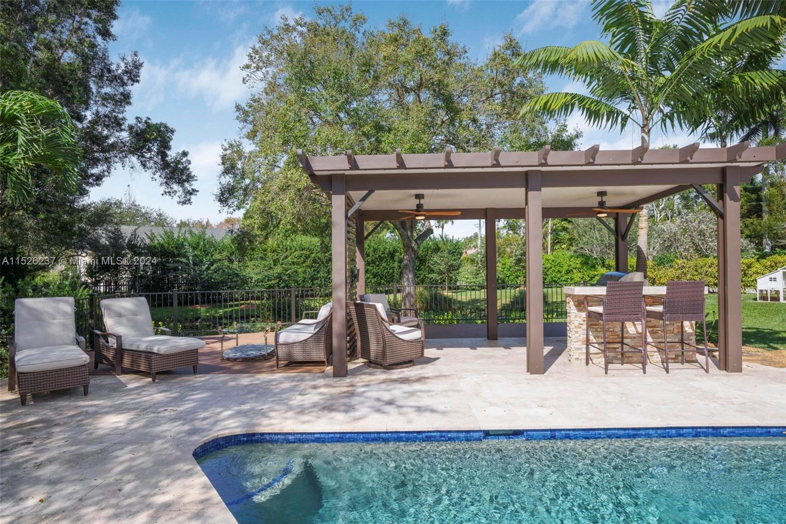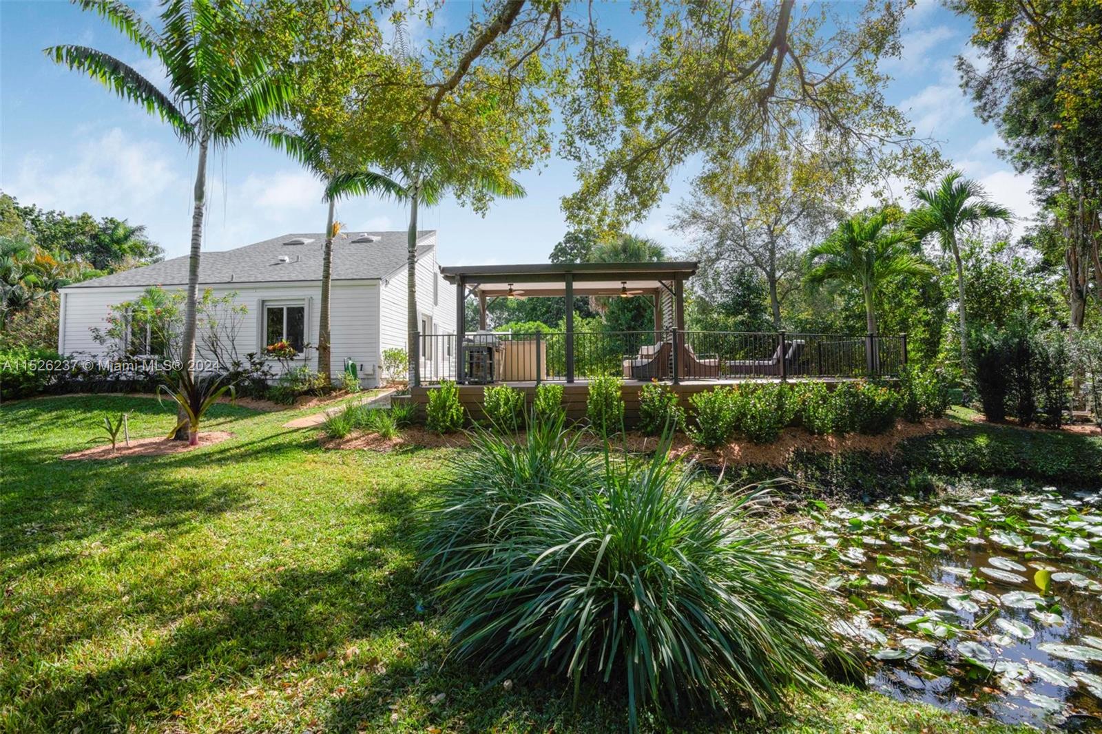 Experience coastal elegance in this prestigious Plantation Acres home. New landscaping and hardscape, including a flagstone walkway and patio overlooking a serene pond, this .75-acre property offers unrivaled privacy and tranquility. Enjoy water views from the canal and pond, while basking in the luxury of a brand NEW ROOF and freshly painted interior and exterior. Entertain guests on the expansive deck with a covered pergola featuring an outdoor kitchen, or relax by the pool. Inside, the home boasts a newly updated kitchen with top-of-the-line appliances, quartz countertops, and a wine refrigerator. Tile and luxury vinyl floors complement the spacious bedrooms. Additional features include a two-car garage under air, new pool safety fence, hurricane shutters, and a new irrigation system.