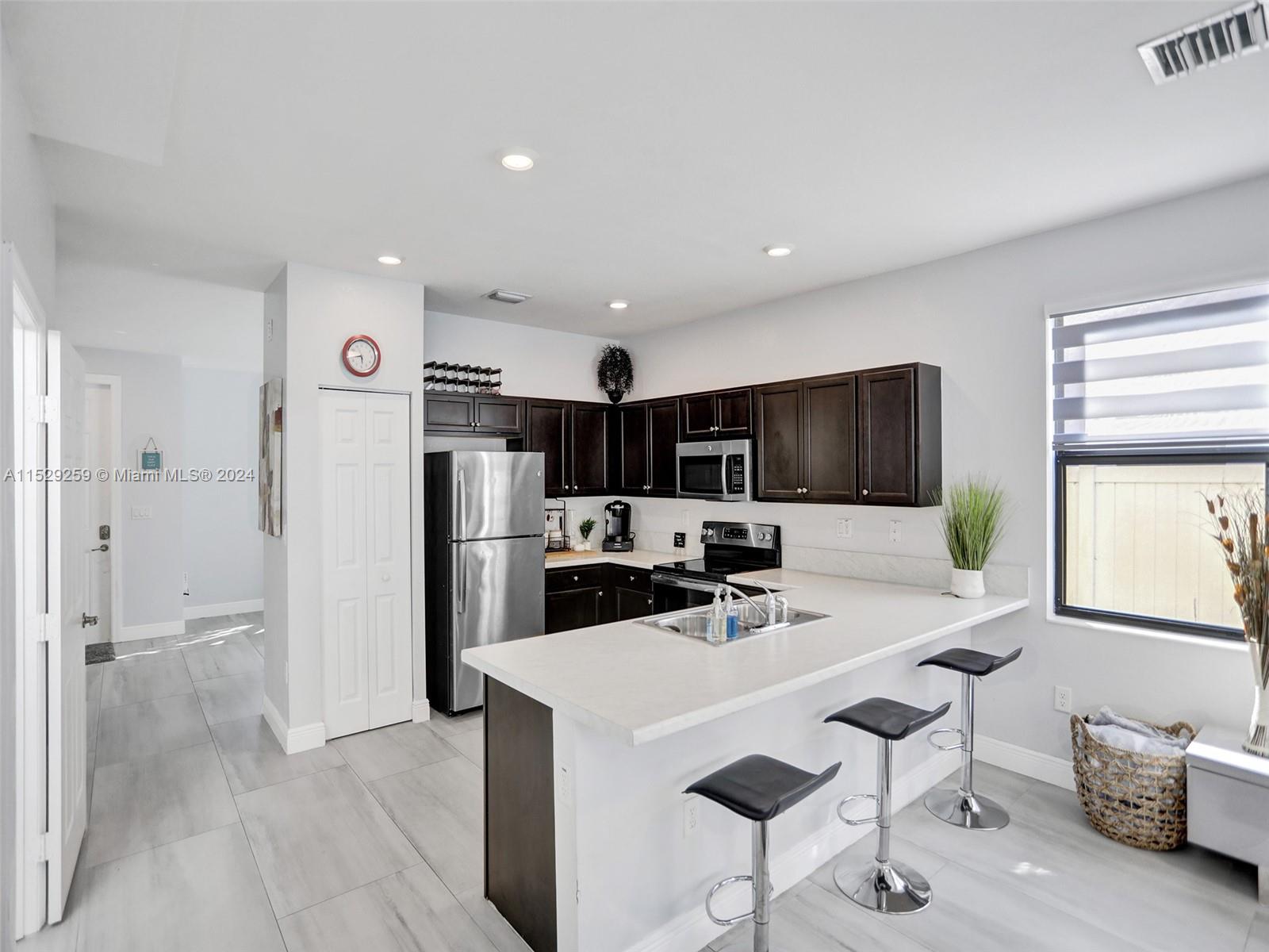 Beautifully updated 2 bedroom 2.5 bath corner townhouse in excellent community of Bonterra. Property has been updated with large format modern tile in the first floor and vinyl in the second floor. There is modern blinds through out the home which allow the perfect amount of light in the property while still being stylish. Corner unit allows for amazing natural light to enter the home. Backyard is fenced and has pavers installed to be able to entertain and have BBQs. The kitchen is an open style kitchen which faces the living area so that it allows for entertaining.On the second floor you will find the Primary Bedroom with walk-in closet. The Primary bathroom has updated shower with glass enclosure. Second bedroom also has walk in closet and nice bathroom. Soccer, basketball, pool and more