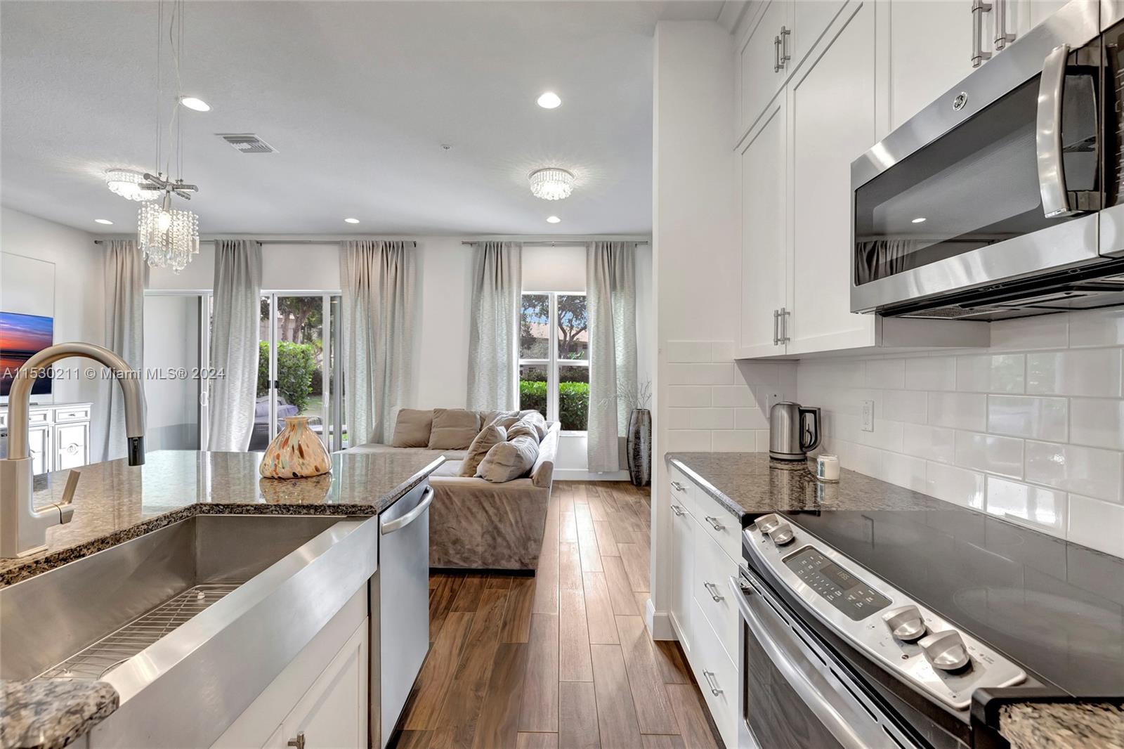 Welcome to modern living in the heart of Boca Raton! Pristinely maintained a 2018-built gem in Pointe 100 in Boca Pointe! Single-owner 3-bed, 2.5-bath townhome offers elegance, convenience, & comfort. Upgraded ceiling-high kitchen cabinets with granite countertops and backsplash, GE stainless steel appliances, open layout ideal for entertaining. Tile wood-look tile floors downstairs, carpet staircase, upstairs. Crown molding, big wall custom mirrors downstairs and in the middle of the stairway, custom closet in primary bedroom. Designer details throughout, impact windows, impact garage door. Enjoy a spectacular canal view from the extended patio. Excellent schools,HOA includes pool, fitness center, clubhouse, lawn care, sewer, roof maintenance, and security. Easy access to shopping,dining.
