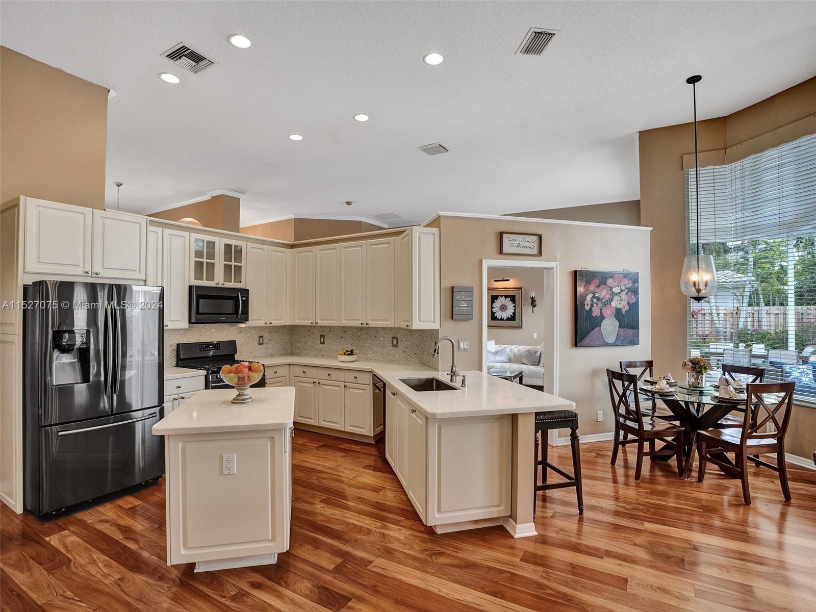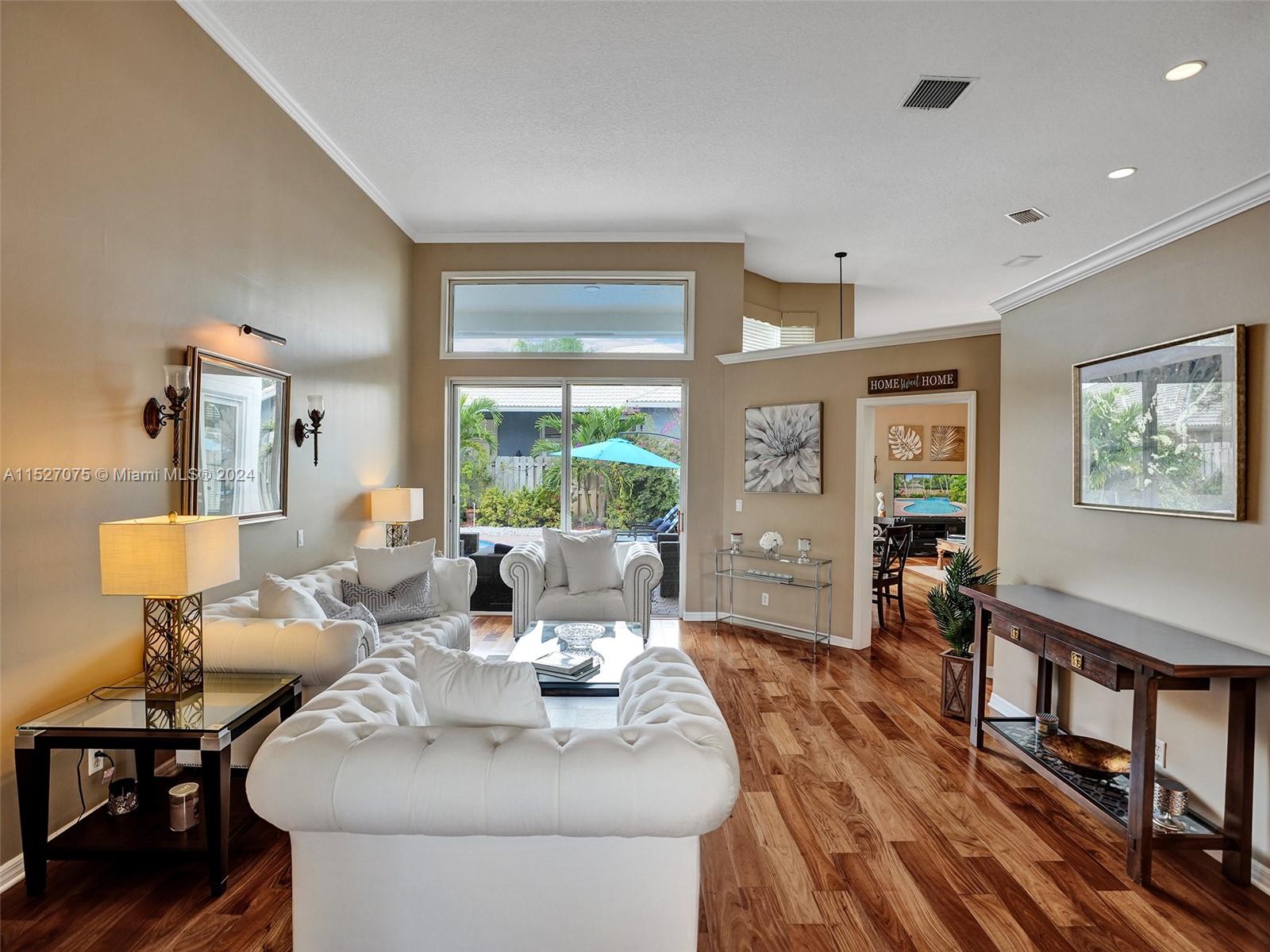 HIGHLY SOUGHT-AFTER MONTEREY MODEL W/ NEW ROOF (OCT. 2022), NEW IMPACT GLASS WINDOWS (2023) ON THE FRONT OF THE HOUSE & 2 IMPACT GLASS DOORS ON THE BACK. FULL HURRICANE PROTECTION W/ A COMBINATION OF IMPACT GLASS, ACCORDIAN SHUTTERS (INSTALLED 2022) & SOME PANELS. NEWLY PAINTED EXTERIOR (2023), NEWLY RESURFACED POOL (2021) WITH NEW GLASS TILES & LED LIGHT WITH CHANGING COLORS. YOU'LL LOVE THE NEWER UPDATED KITCHEN WITH QUARTZ COUNTERTOPS, BLACK STAINLESS STEEL APPLIANCES & A DRYBAR W/ WINE RACK. OTHER FEATURES INCLUDE GORGEOUS 4" BRAZILIAN HARDWOOD FLOORS IN EVERY ROOM, SOARING CEILINGS, LOTS OF NATURAL LIGHT, 3-WAY SPLIT BEDROOM PLAN & A HUGE PRIMARY BEDROOM & BATHROOM. THIS HOME FEATURES MORE THAN $150,000 IN IMPROVEMENTS. LOCATED ON QUIET INTERIOR STREET, JUST STEPS FROM THE TOT LOT.