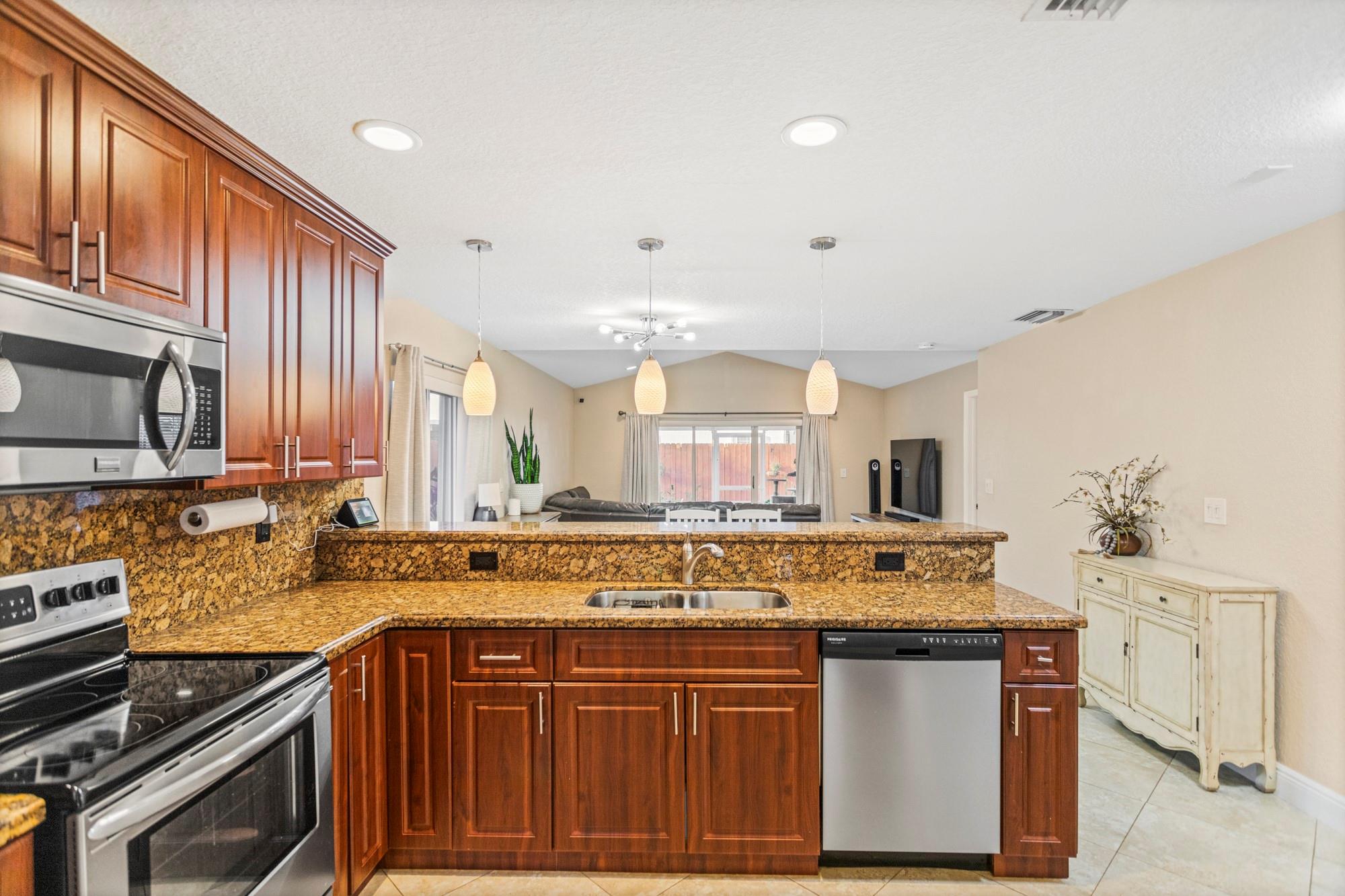 Stunning 3 bedroom 2.5 bath 2 story home located in the sought after neighborhood of the Trellises at Embassy Lakes. Open floorplan with oversized tile in the main living area and wood laminate floors throughout the bedrooms and stairs. Walk in closets in all bedrooms with master located on the first floor. Kitchen has wood cabinets and granite countertops with stainless steel appliances. 2014 tile roof, tankless water heater, Fence, Landscaping, Garage door all from 2021/22. Garage features washer/dryer and 220 electric car outlet New light fixtures and blink security system with Accordion shutters included! The newly enclosed patio and fence allow for maximum privacy. Multiple amenities including tennis, gym, pool, playgrounds and tennis court. Plus, the best A rated schools around!