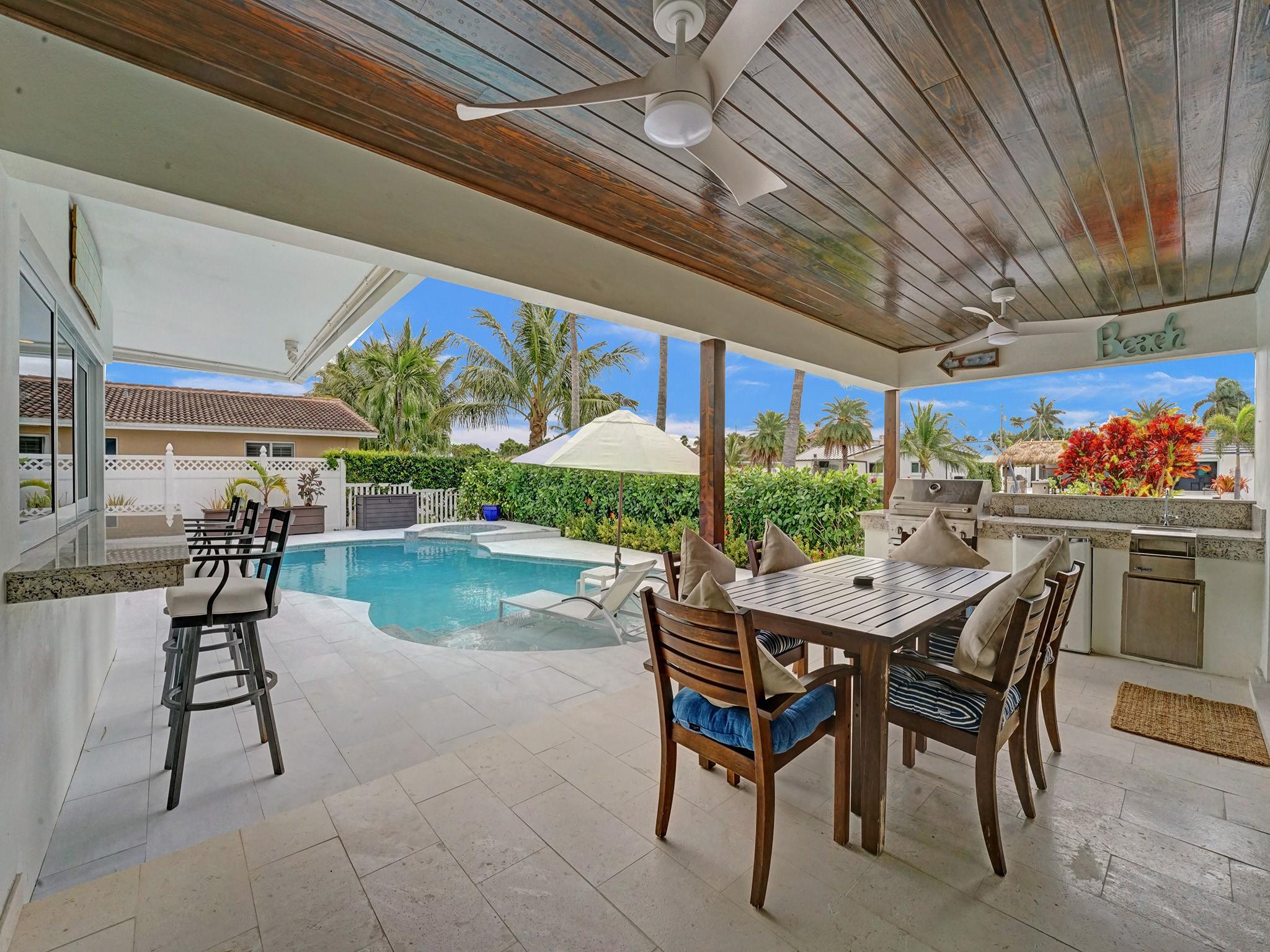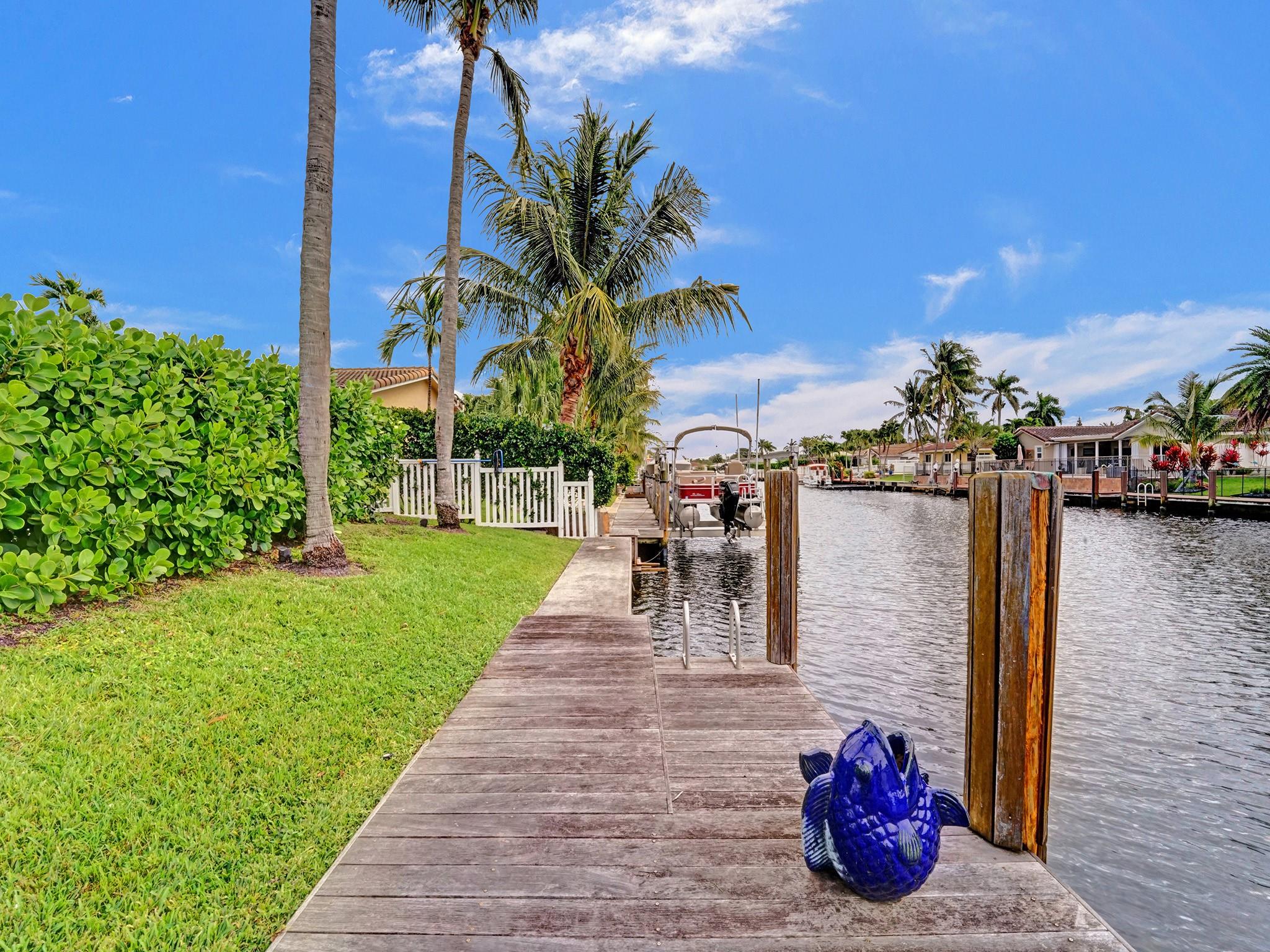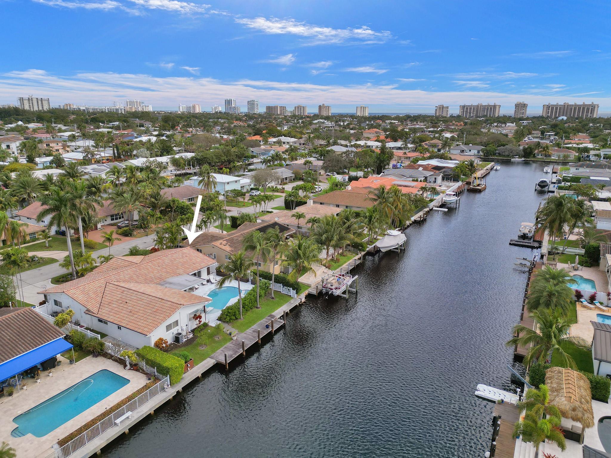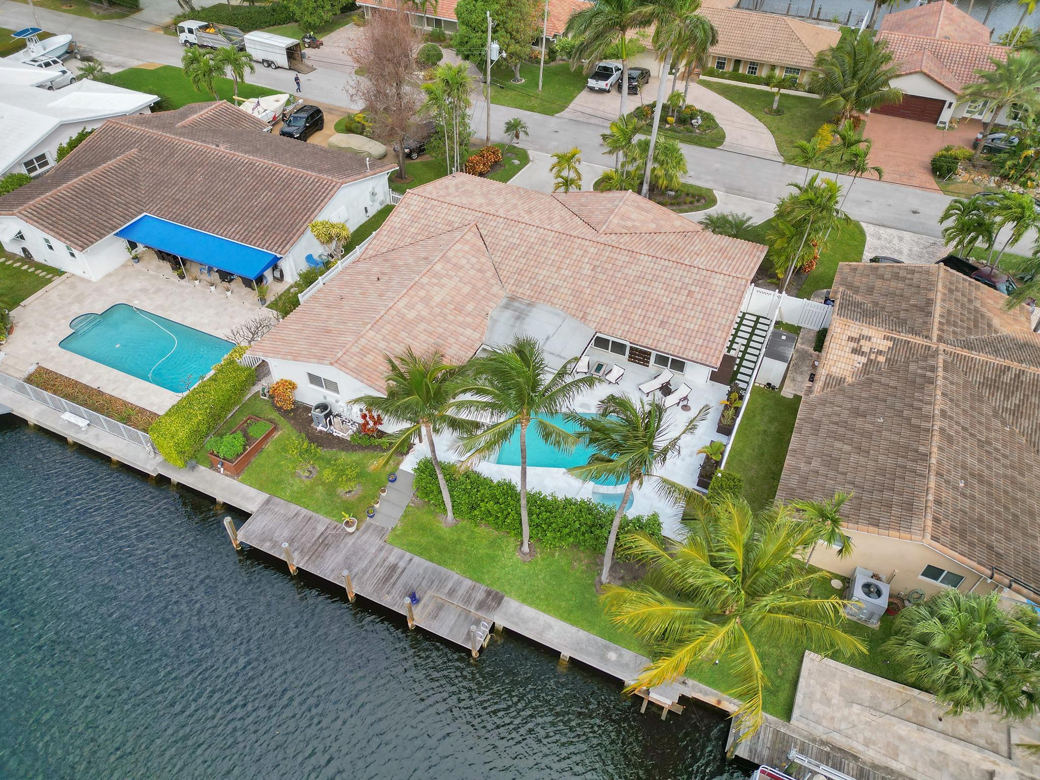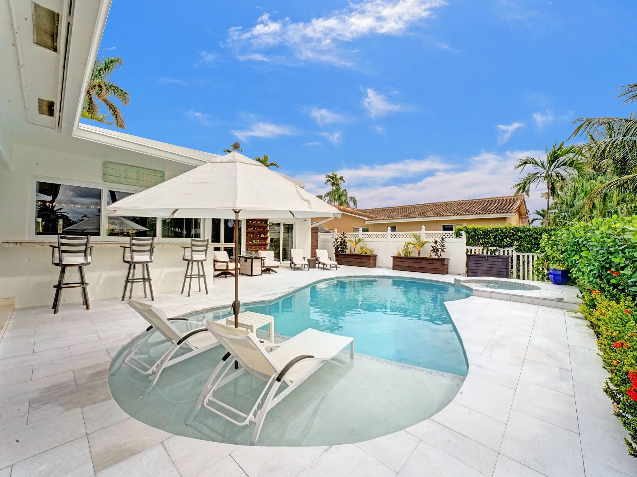 This amazing home is located in the exclusive The Landings/Lake Estates neighborhood. It’s a boater’s paradise with 80’ waterfront with a private dock and ocean access. It’s an entertainer’s dream home offering the best luxury of resort feeling with a South facing heated newly renovated saline pool and a pristine and beautiful new marble deck. The outside area is equipped with a fully functional outdoor kitchen which includes a built-in BBQ grill perfect for entertaining and alfresco dining. This newly renovated home offers 3 en-suite bedrooms. An open concept with a spectacular kitchen opens to conveniently serve as a bar for the pool area. It has Florida limestone floors throughout, including front porch and lanai. Impact sliders and windows. Just minutes away from the beach.