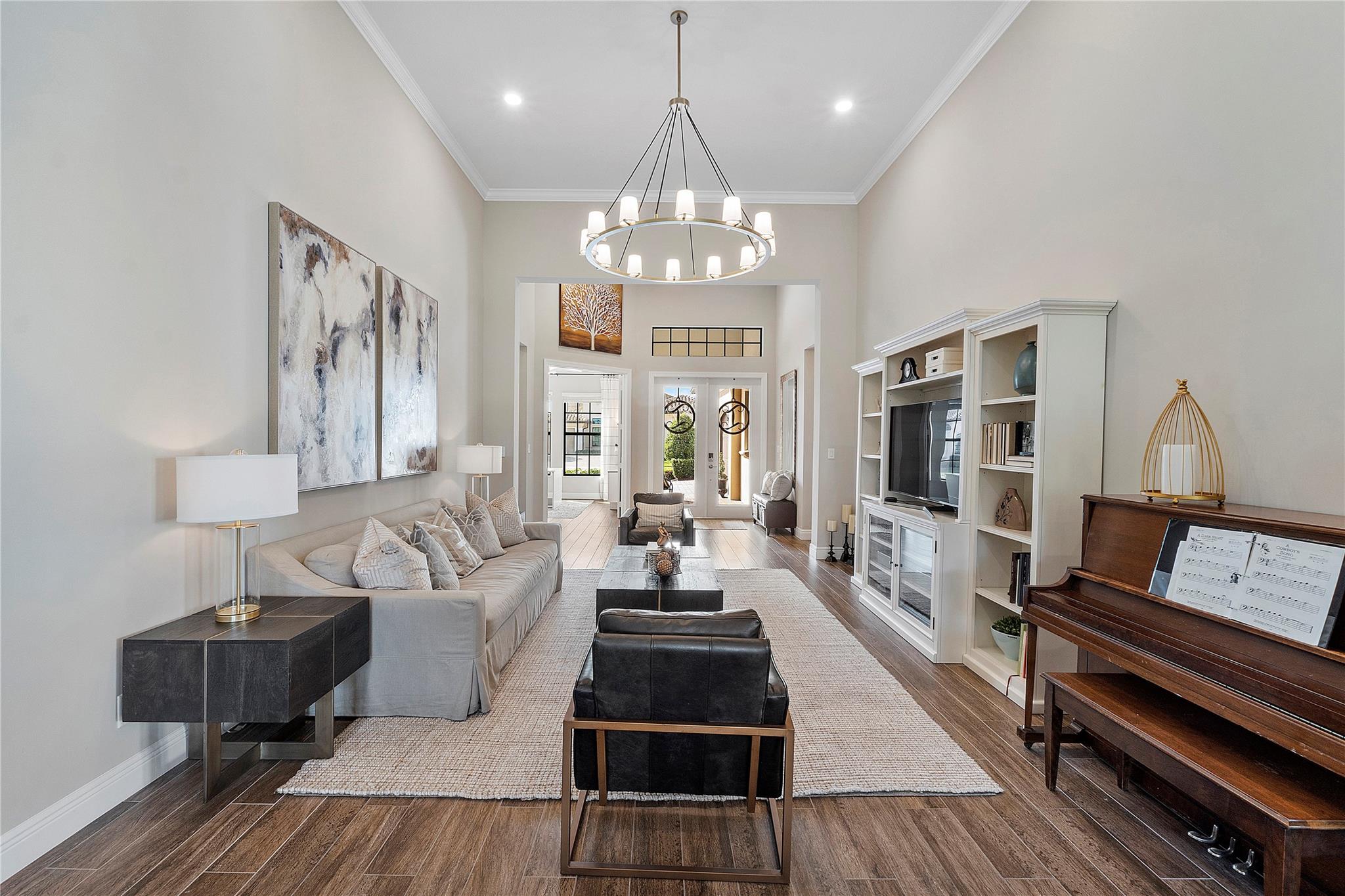 Indulge in luxury living in Parkland's gated community. This single-story gem, with 5 beds and 4 1/2 baths, epitomizes opulence. The chef's kitchen, great room, and formal dining flow seamlessly, showcasing upgrades galore. The primary suite is a haven with coffered ceilings and a spa-like bathroom. Soaring 14' ceilings in main areas and 12' ceilings in bedrooms create an expansive feel. Backyard has room for a pool, please see renderings. Enjoy exclusive amenities like a beach entry pool, culinary kitchen, fitness center, kids club, tot lot, tennis and basketball courts and more. Live the Parkland luxury lifestyle in this model-like home – a masterpiece of elegance and comfort. Contact us for an exclusive viewing.