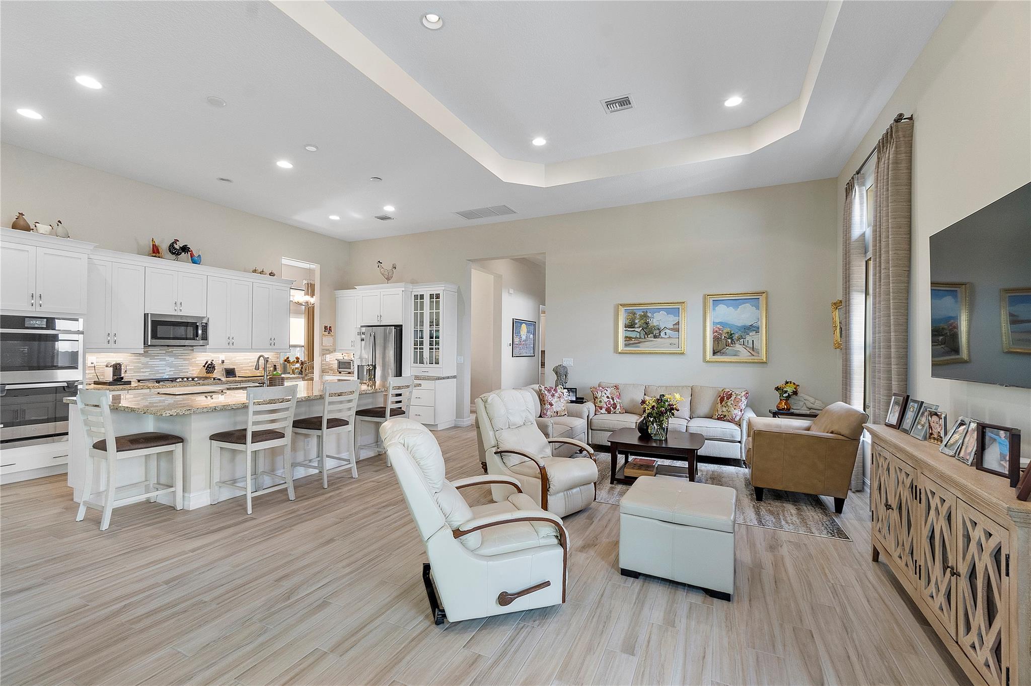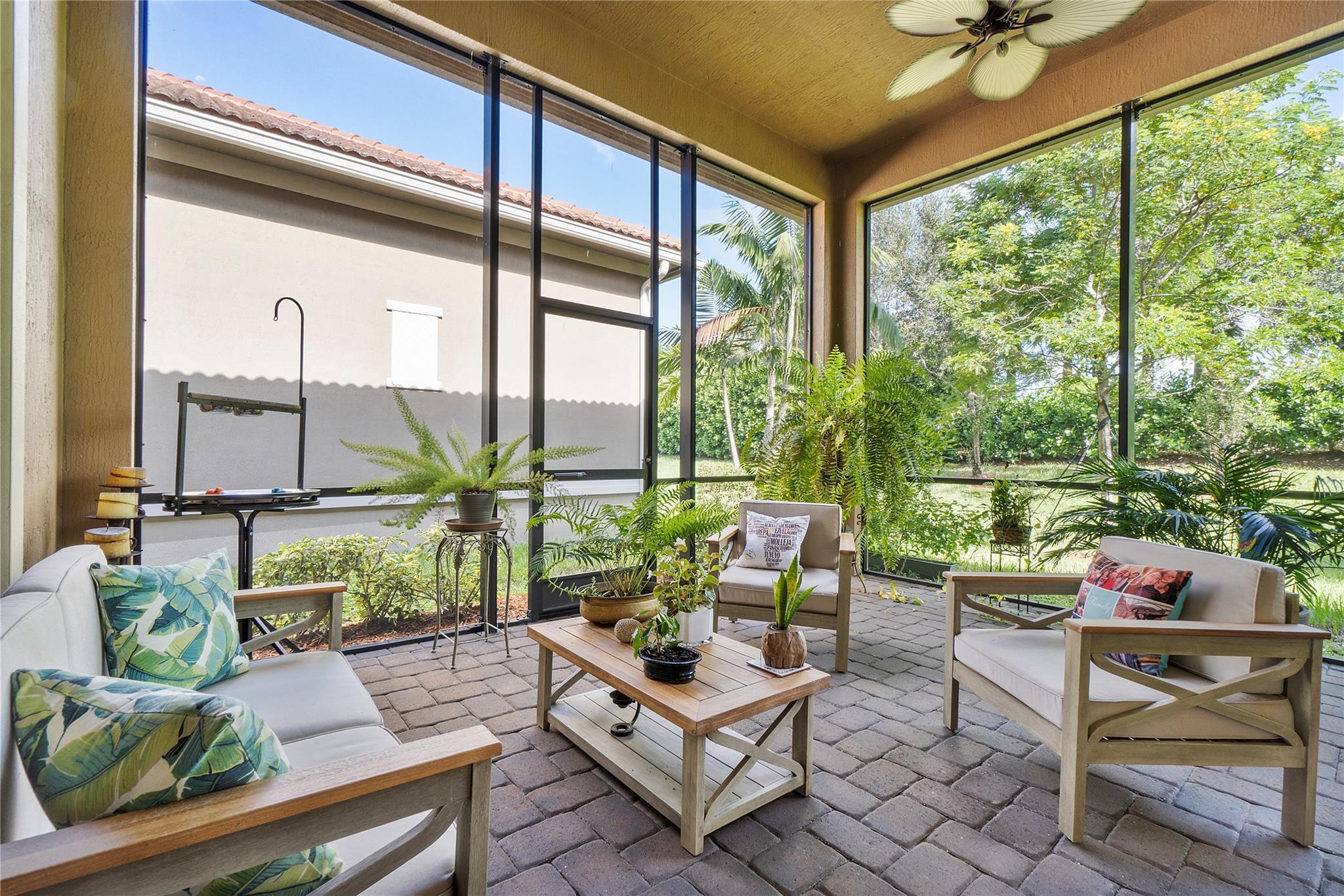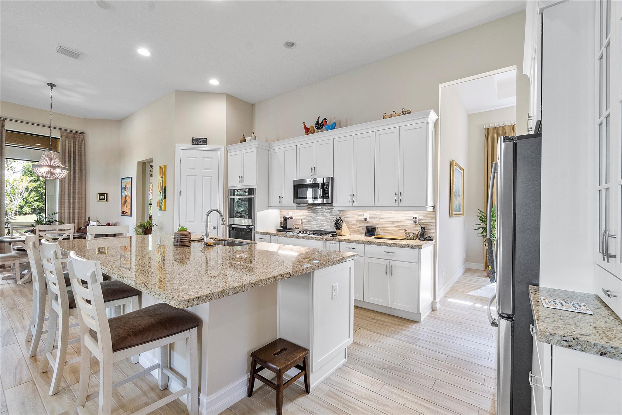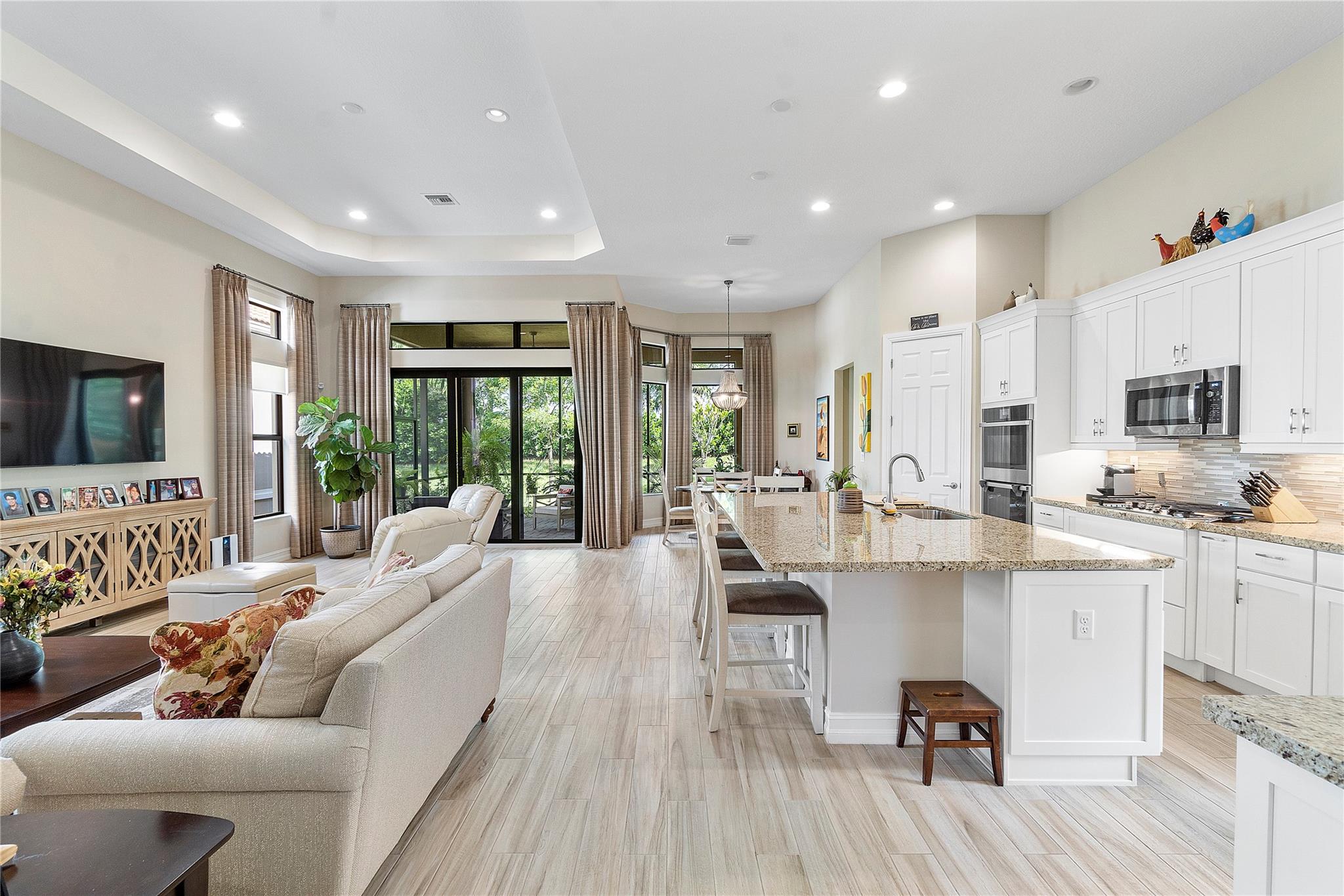 $10,000 Seller's concession towards closing costs! Step into the exquisite guard-gated Four Seasons of Parkland! This dream home features a stunning Tuscan exterior, custom 12' tray ceilings, and wood-like tile flooring. Enjoy a gourmet kitchen with high-end appliances, a gas stove, white cabinets, and granite countertops. The master bedroom offers 2 walk-in closets, and there's a den with French doors convertible to a third bedroom. Outside, relax in the spacious screened and covered lanai. With resort-like amenities including a clubhouse, tennis courts, pickleball, and more, embrace an active lifestyle!