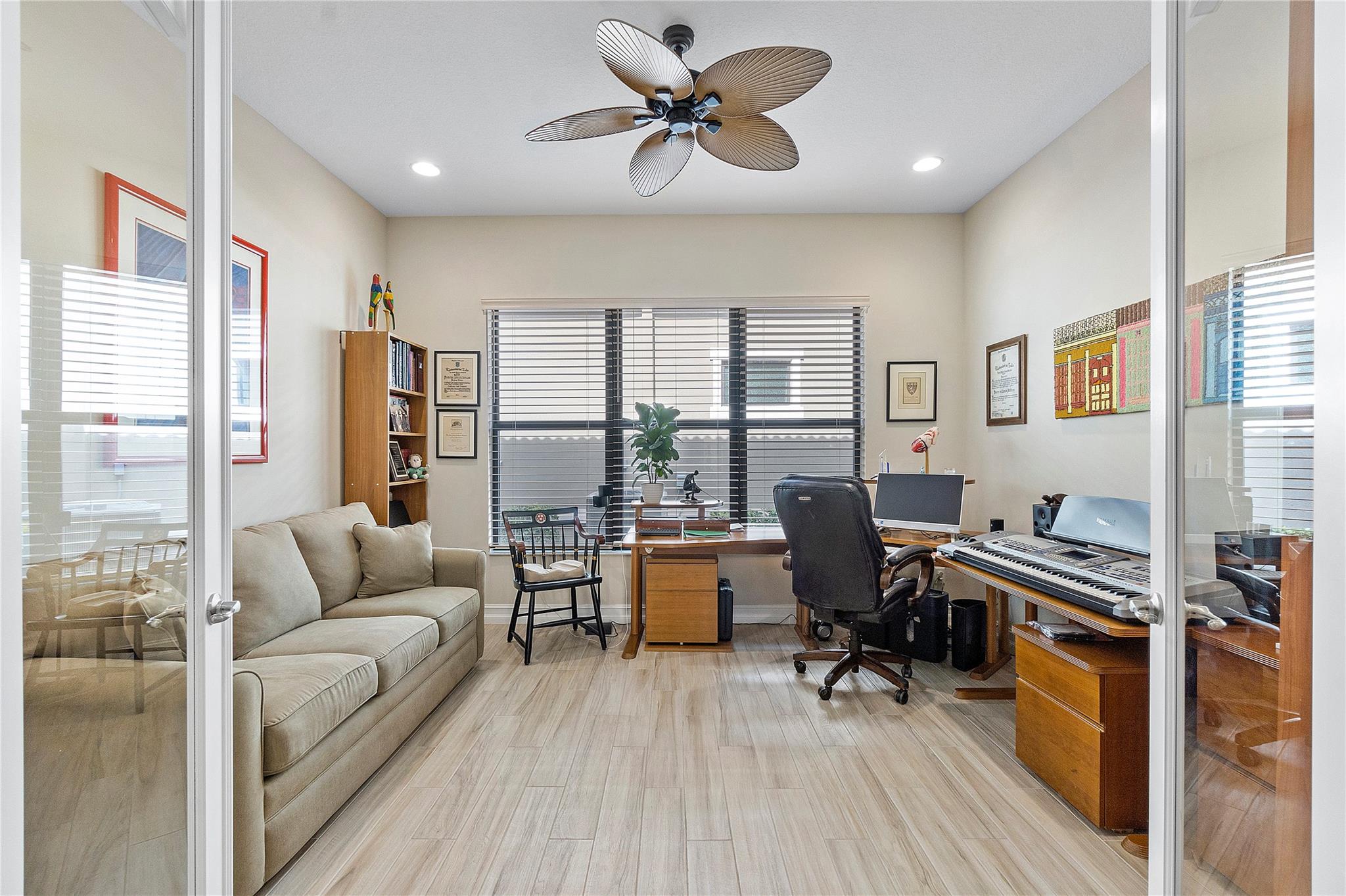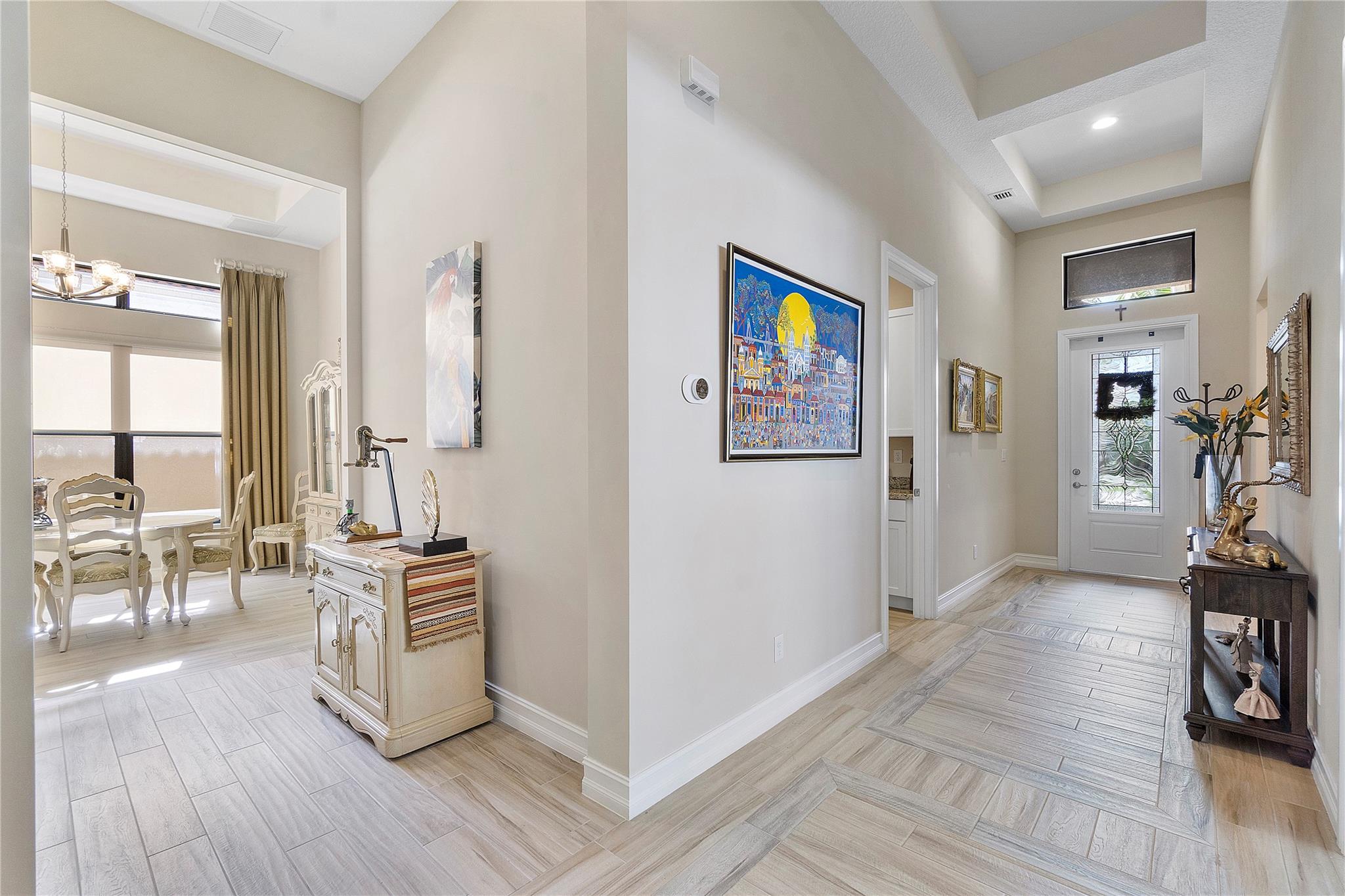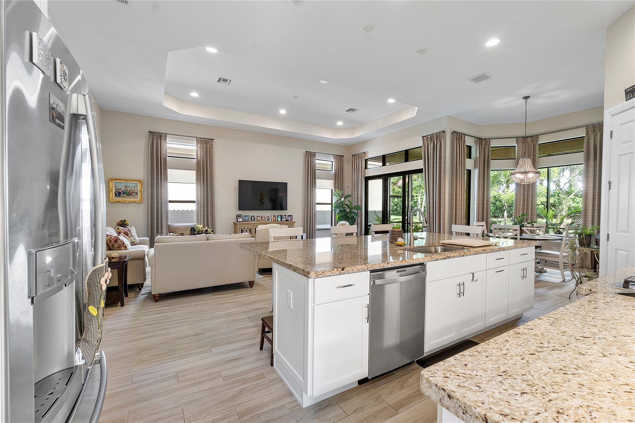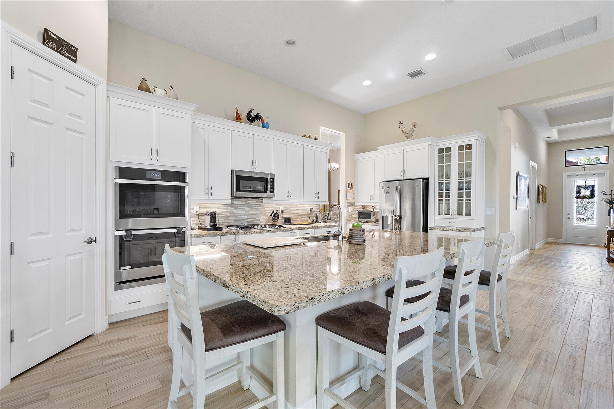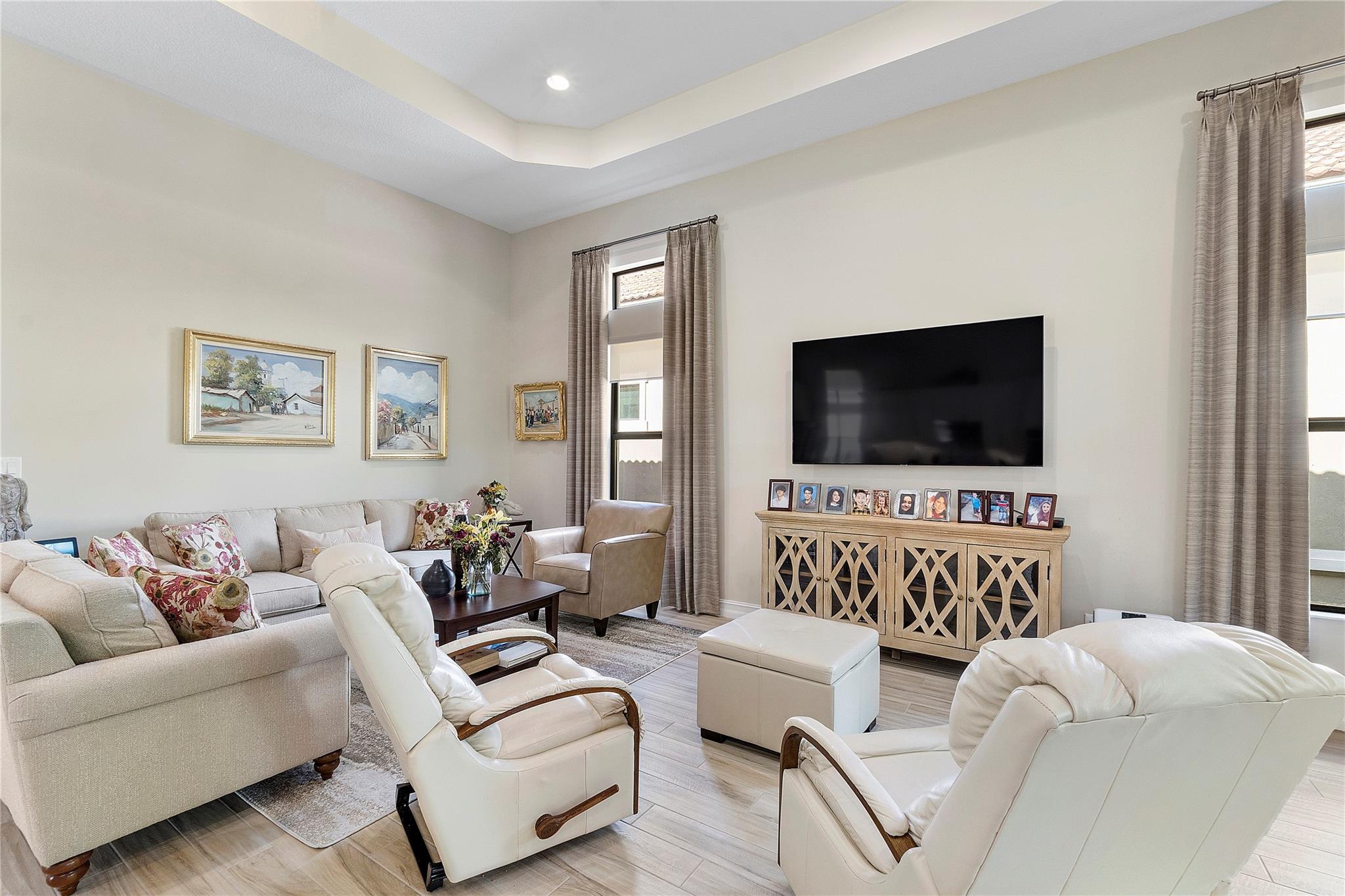 $10,000 Seller's concession towards closing costs! Step into the exquisite guard-gated Four Seasons of Parkland! This dream home features a stunning Tuscan exterior, custom 12' tray ceilings, and wood-like tile flooring. Enjoy a gourmet kitchen with high-end appliances, a gas stove, white cabinets, and granite countertops. The master bedroom offers 2 walk-in closets, and there's a den with French doors convertible to a third bedroom. Outside, relax in the spacious screened and covered lanai. With resort-like amenities including a clubhouse, tennis courts, pickleball, and more, embrace an active lifestyle!