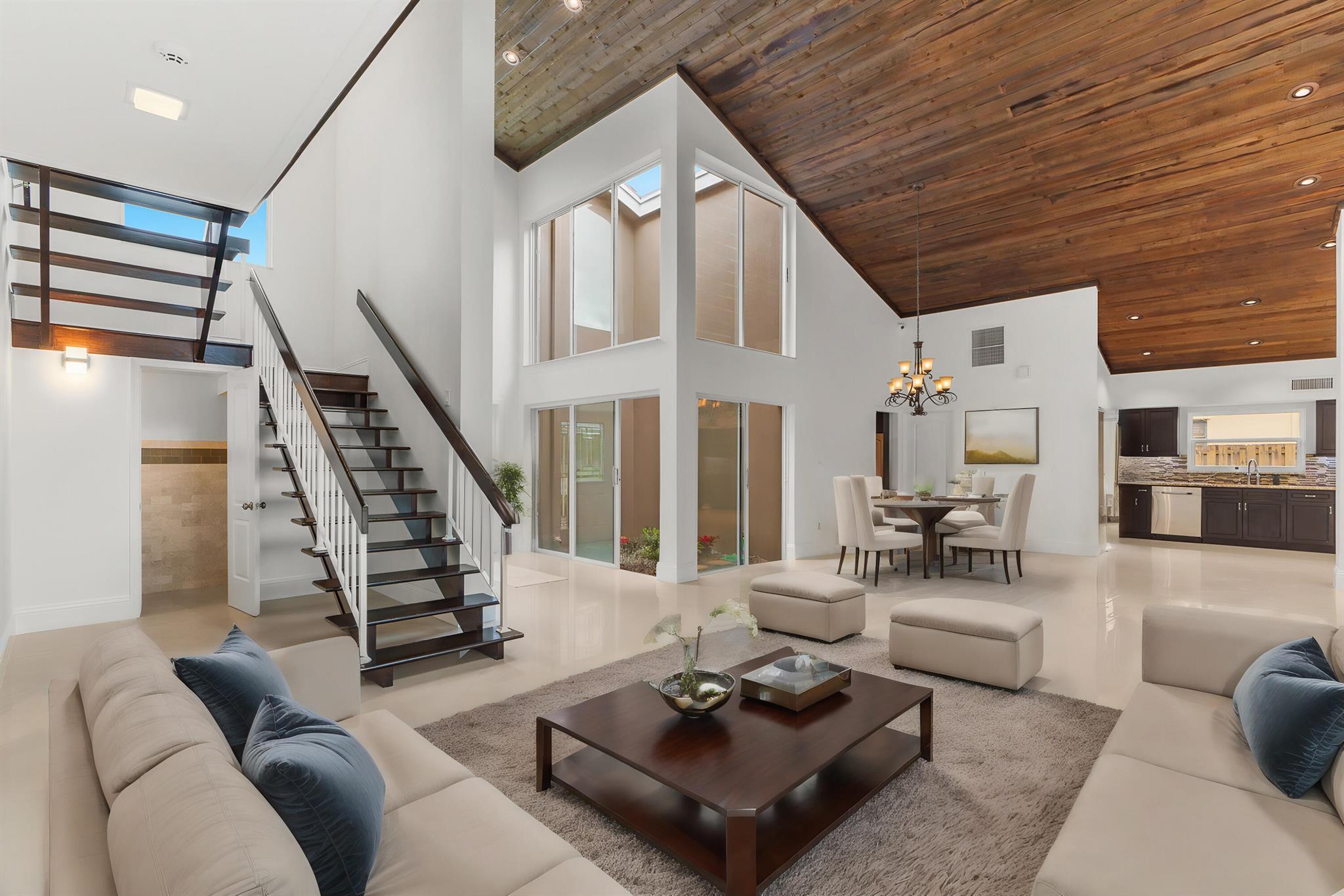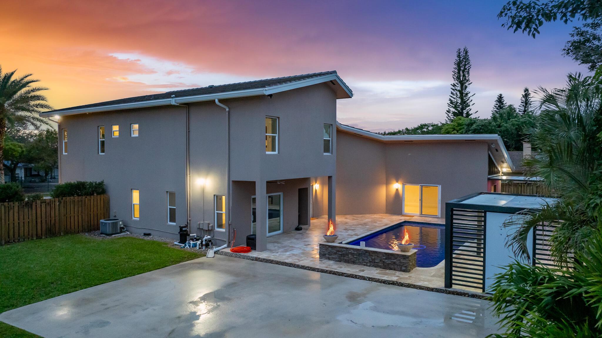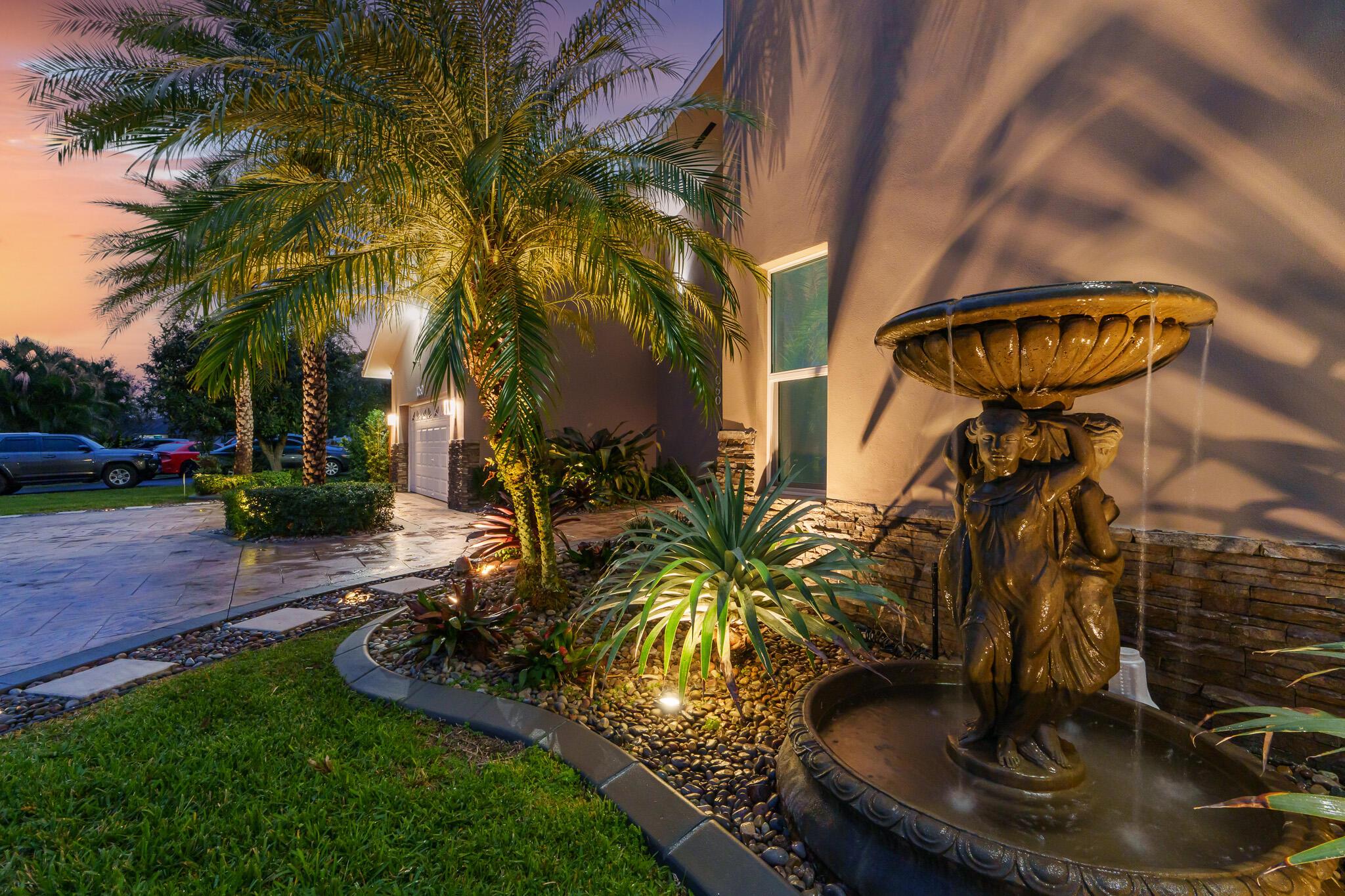 Pure Magnificence awaits. Ultra-Luxury CUSTOM 4 Bed|3.5 bath| Pool Estate Masterpiece on .32 ACRE corner fenced private lot in the coveted community of MARCANO ESTATES. Exquisitely appointed 6 car circular drive+Intricate FL native landscape, LED in-ground lights, Designer Stone enhancements+custom hardscape curbing, fountain leading to the GRAND TWO-STORY foyer enhanced w/Open Air Atrium adds to a decadent light-filled living space showcasing a concrete column against WOOD 19' CATHEDRAL Ceilings! From the Porcelain Diamond laid tile, freshly painted interior, HURRICANE DBLE PANE IMPACT GLASS|DOORS, 7'' Baseboards, precisely skimmed drywall, Soaring Skylight, NEW CONCRETE ROOF (2023) sweeping outdoor oasis views, you'll appreciate the clarity of design that harmonizes seam