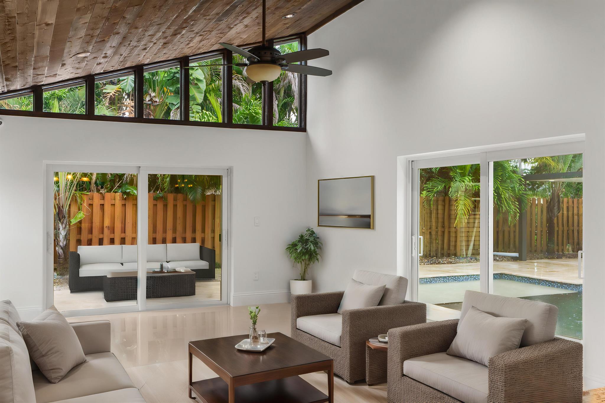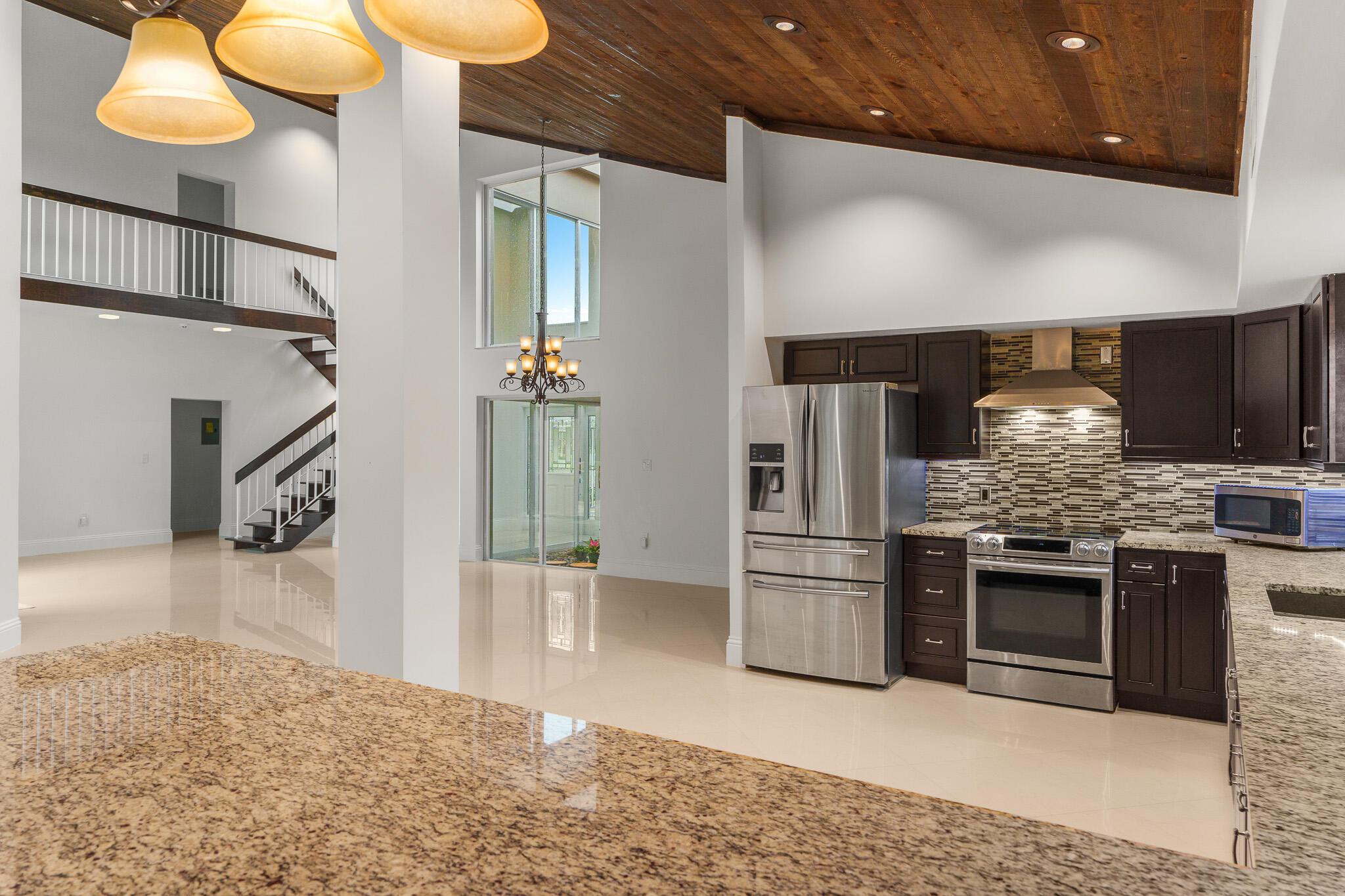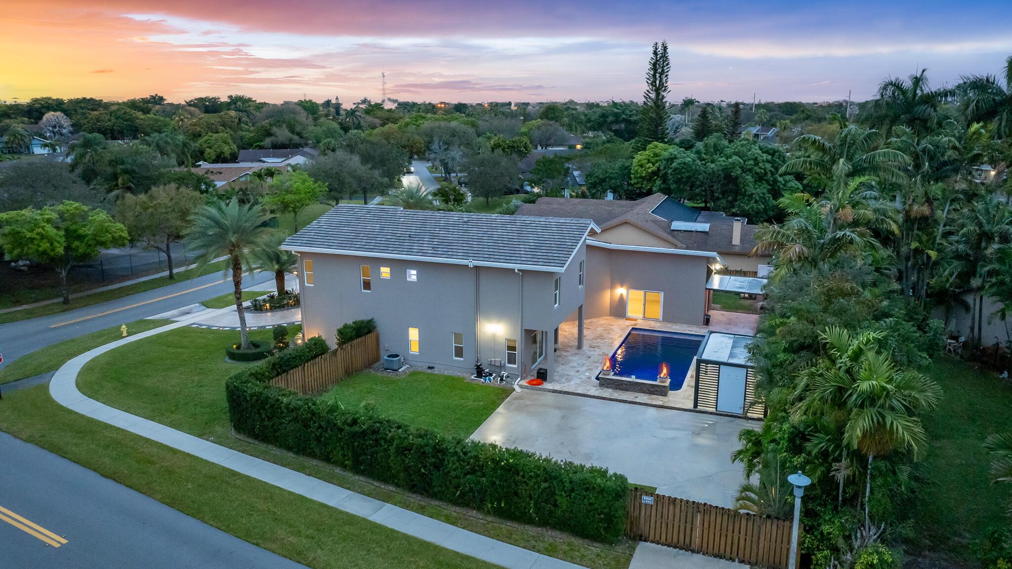 Pure Magnificence awaits. Ultra-Luxury CUSTOM 4 Bed|3.5 bath| Pool Estate Masterpiece on .32 ACRE corner fenced private lot in the coveted community of MARCANO ESTATES. Exquisitely appointed 6 car circular drive+Intricate FL native landscape, LED in-ground lights, Designer Stone enhancements+custom hardscape curbing, fountain leading to the GRAND TWO-STORY foyer enhanced w/Open Air Atrium adds to a decadent light-filled living space showcasing a concrete column against WOOD 19' CATHEDRAL Ceilings! From the Porcelain Diamond laid tile, freshly painted interior, HURRICANE DBLE PANE IMPACT GLASS|DOORS, 7'' Baseboards, precisely skimmed drywall, Soaring Skylight, NEW CONCRETE ROOF (2023) sweeping outdoor oasis views, you'll appreciate the clarity of design that harmonizes seam