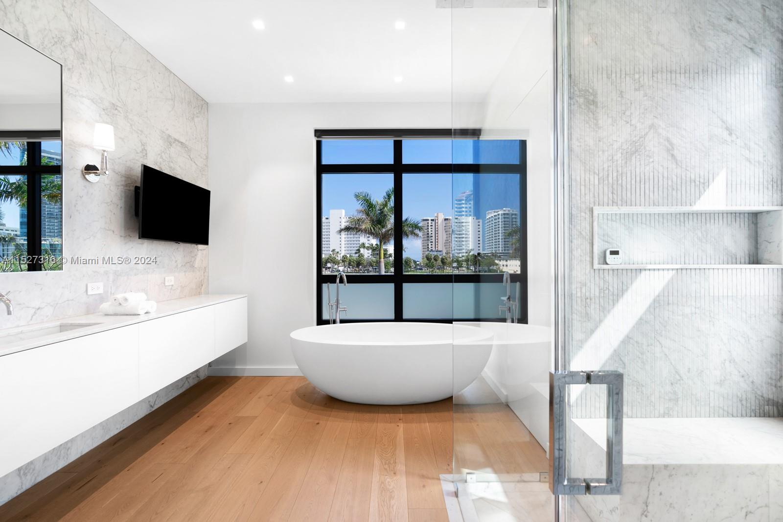 Located on guard-gated Allison Island, this Max Strang designed home was completed at the beginning of 2022. Sitting on a 16,200 SF lot, this 7,000 SF home boasts six bedrooms and nine bathrooms. The oversized primary suite, facing the Indian Creek waterway, has two separate closets and bathrooms. Custom kitchen cabinetry by Boffi, appliances by Wolf and Sub-Zero, this Smart home is powered by Savant. Shellstone and white oak flooring throughout are complemented by built-in, custom cabinetry. Interior design by Artefacto. Enjoy true outdoor living in your large backyard oasis with a full summer kitchen and heated salt water swimming pool. Home also has a whole-house generator. 75 FT on the water offers the ability to dock your yacht at home.