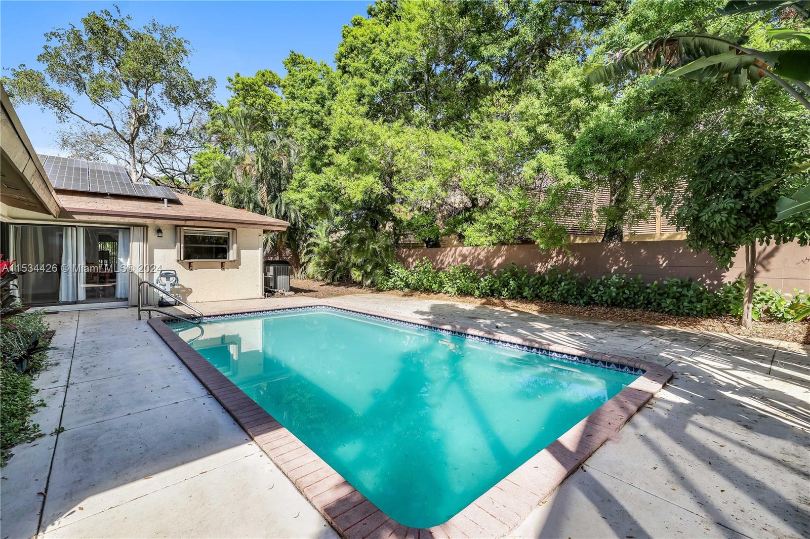 Great pool home located in the desired neighborhood, The Woods of Emerald Hills. Home features 4 bedrooms 2.5 baths, beautiful ceramic floors, french doors, wood burning fire place, solar panels, vaulted wood beam ceiling, newer A/C (2022), tankless water heater & two car garage. Interior freshly painted. Rarely available. Close to Fort lauderdale International airport, Hollywood Beach, major expressways, Hard Rock, parks, shopping, dining, schools & worship. Home has two power walls manufactured by Tesla .