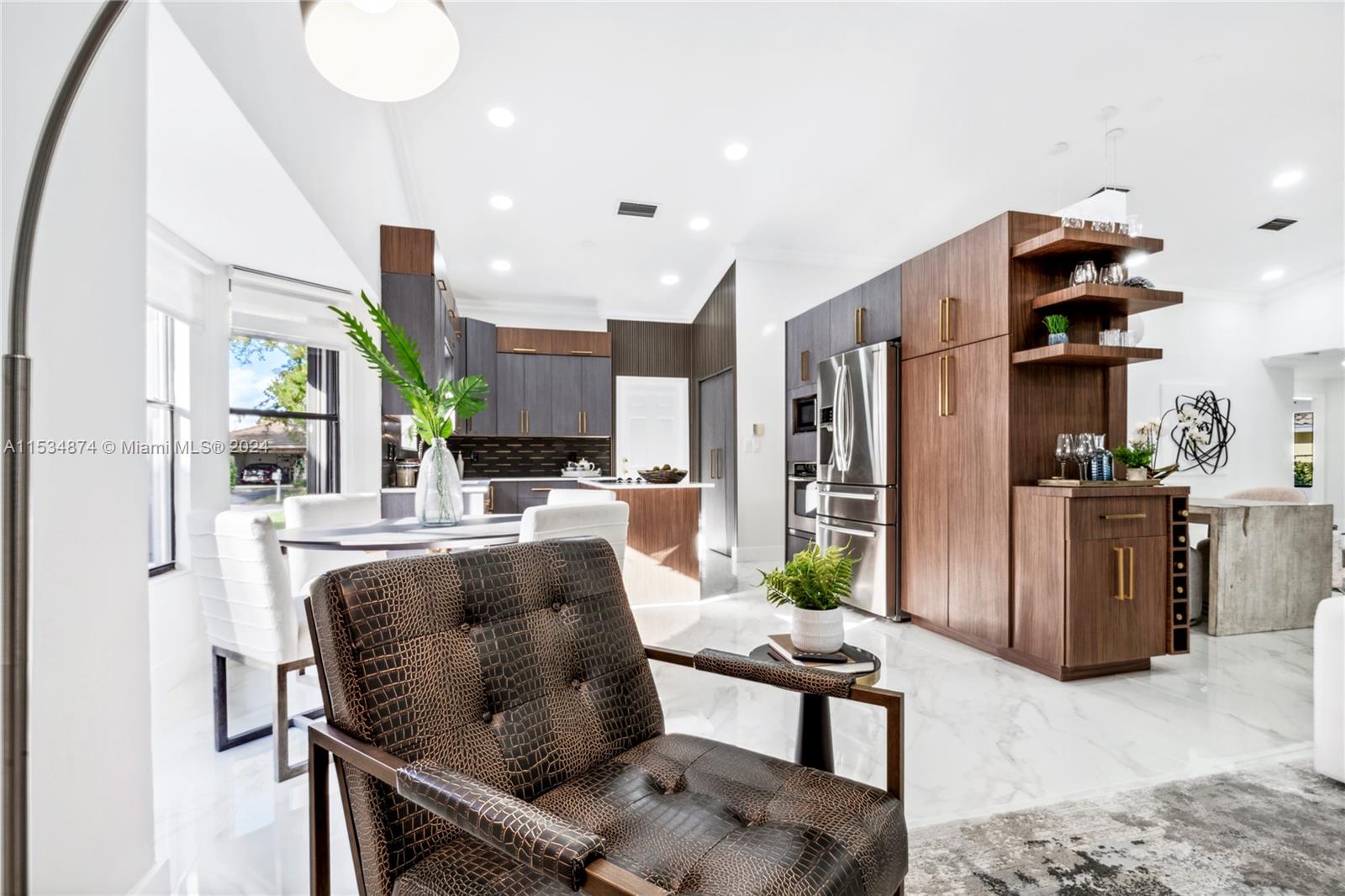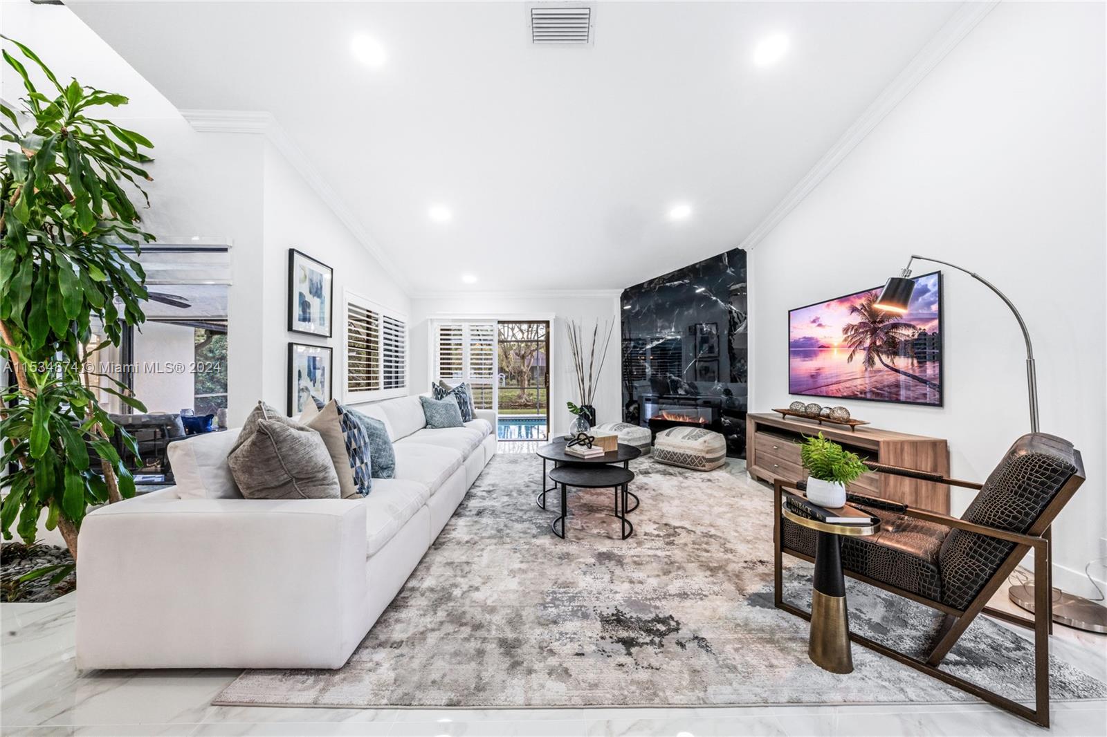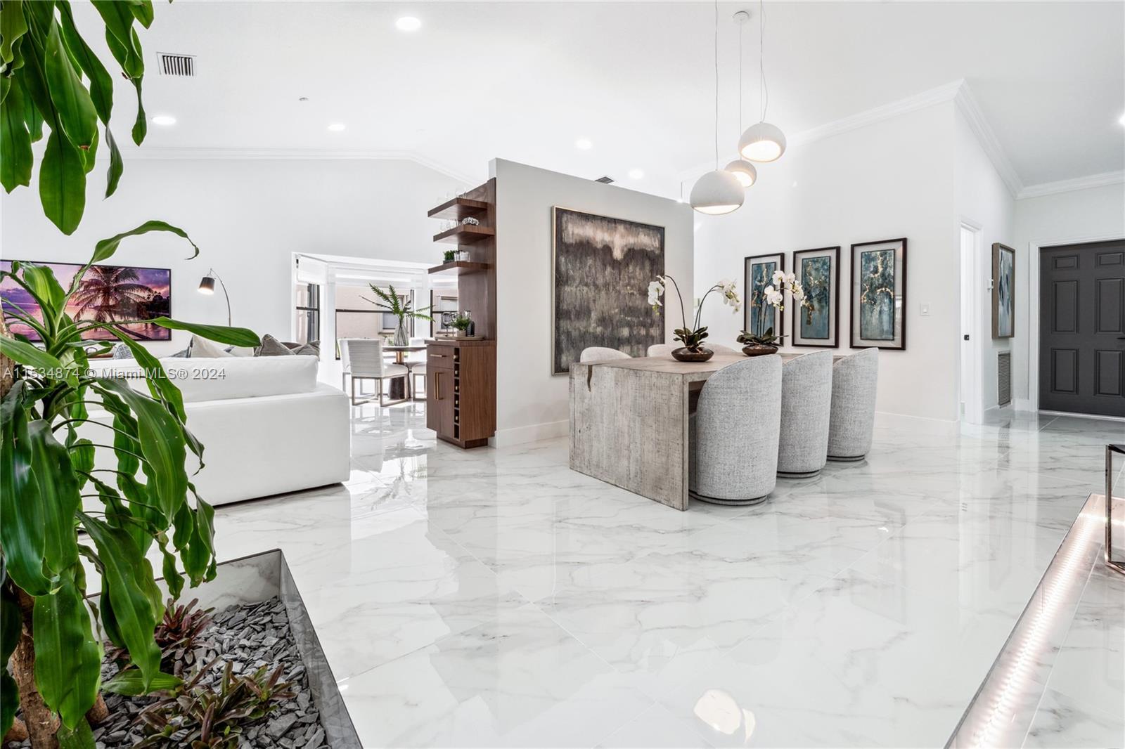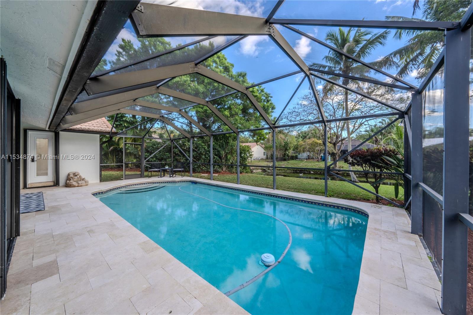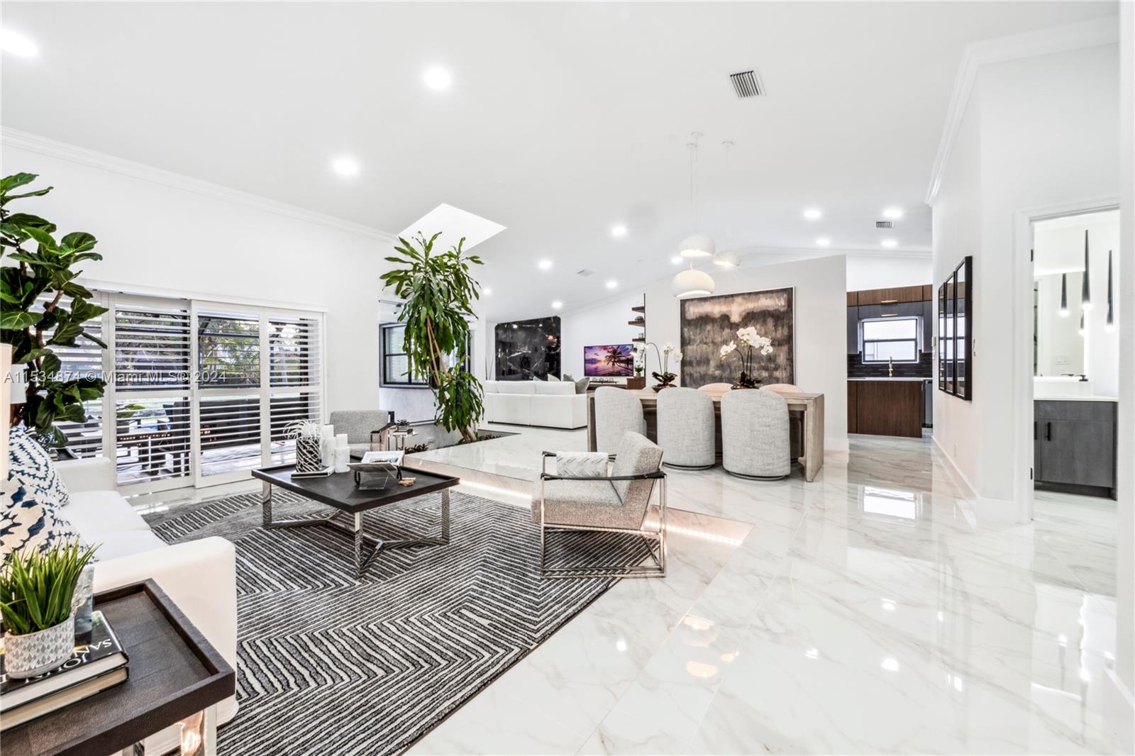 Embrace elegance & comfort in this meticulously renovated pool home located in the desirable Pine Landings neighborhood. Offering a seamless blend of indoor & outdoor living, this open concept residence features stunning water views & tranquil ambiance. Delight in modern design highlighted by an indoor garden, new flooring, crown molding & marble pool pavers. The gourmet kitchen is equipped with quartz counter tops & soft close cabinetry complimented by ample natural light. Luxurious touches include a state of the art shower system, soaking tub & custom cabinetry throughout. Recent updates include a 2023 AC, Hot water heater & dishwasher. Newer pool pump, accordion shutters, security cameras & fireplace. Located within walking distance to nature trails, sports center & waterpark. NO HOA