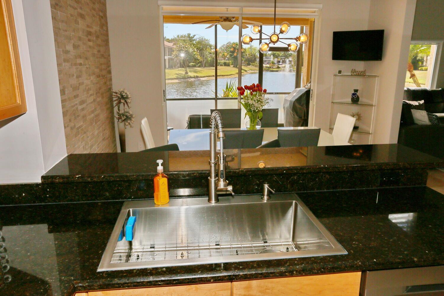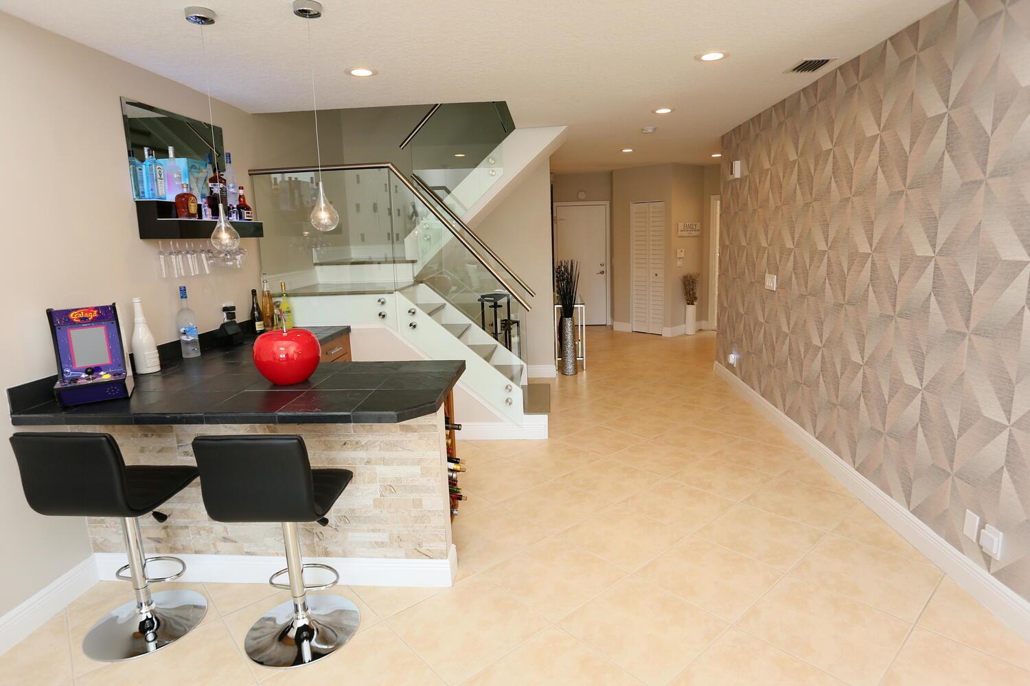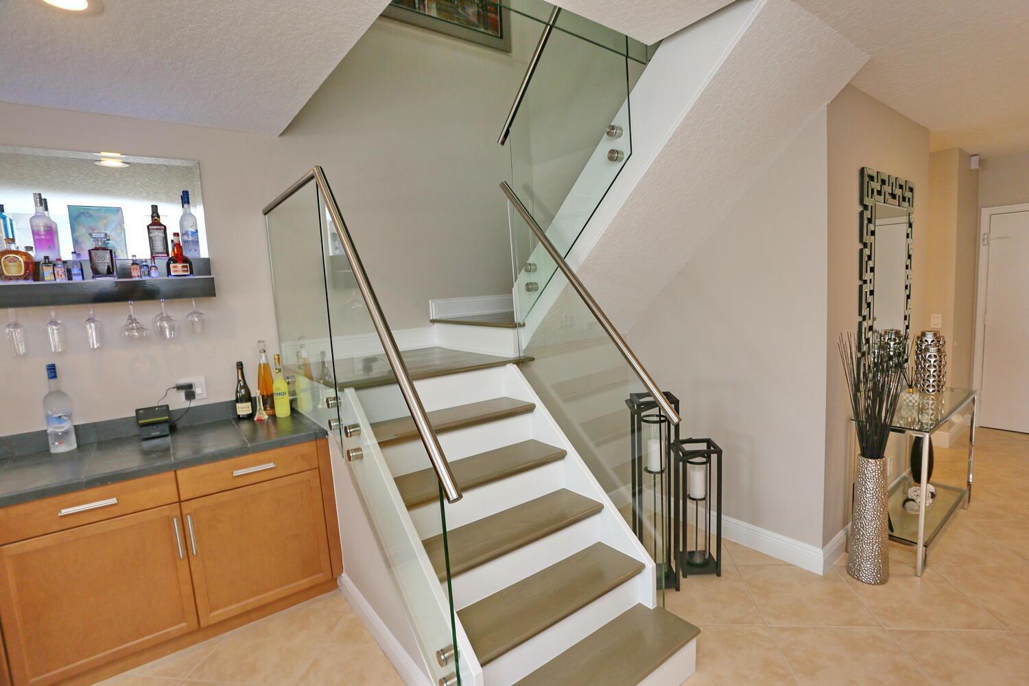 Looking for that WOW factor? Beautifully remodeled townhome in the perfect location. Private first floor entrance. First floor has open spacious living area with great volume ceilings with a remodeled bar for entertaining. All popcorn has been removed. New Washer/Dryer and powder room. Flex room_office, den, bedroom or exercise room. What a long lake view from almost all the sliders and windows. Hurricane protection throughout. Open kitchen to dining area. More views. Use the gorgeous, upgraded staircase to the second floor. Three bedrooms on second floor. New Laminate flooring and new bathrooms. Association planning new roofs, painting and new landscaping.