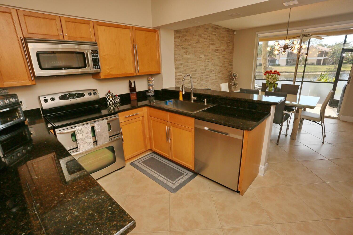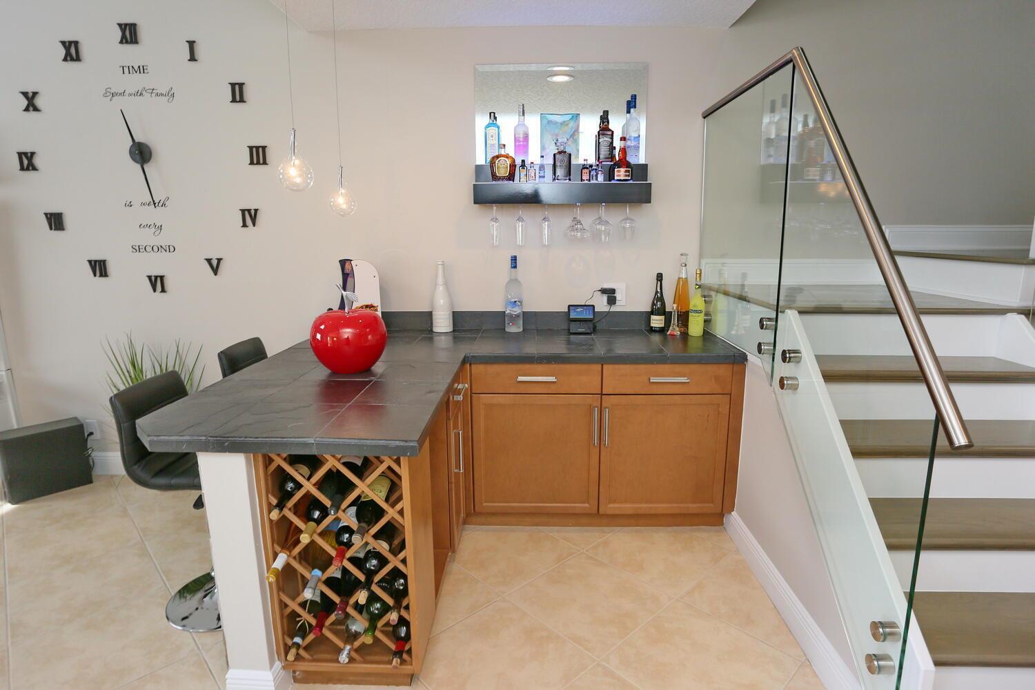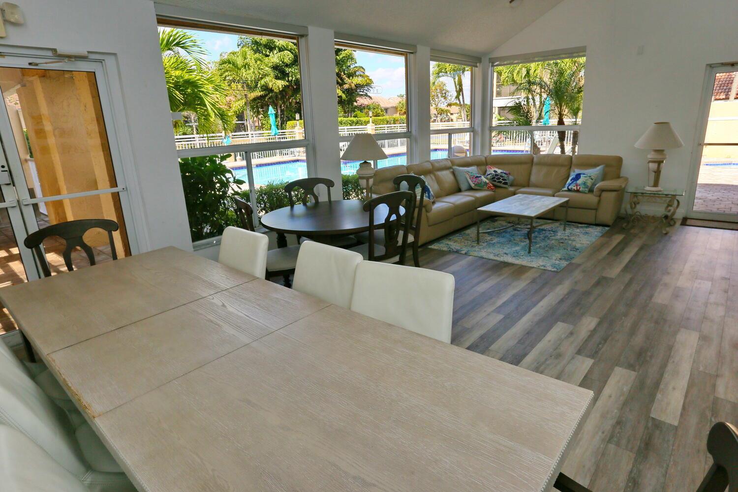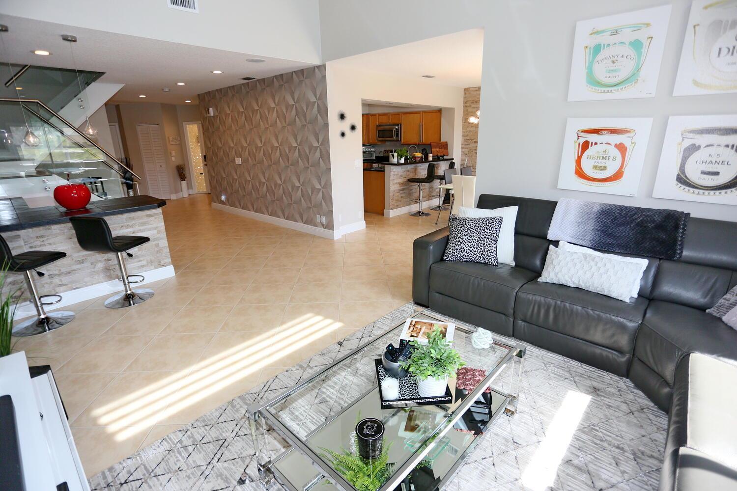 Looking for that WOW factor? Beautifully remodeled townhome in the perfect location. Private first floor entrance. First floor has open spacious living area with great volume ceilings with a remodeled bar for entertaining. All popcorn has been removed. New Washer/Dryer and powder room. Flex room_office, den, bedroom or exercise room. What a long lake view from almost all the sliders and windows. Hurricane protection throughout. Open kitchen to dining area. More views. Use the gorgeous, upgraded staircase to the second floor. Three bedrooms on second floor. New Laminate flooring and new bathrooms. Association planning new roofs, painting and new landscaping.