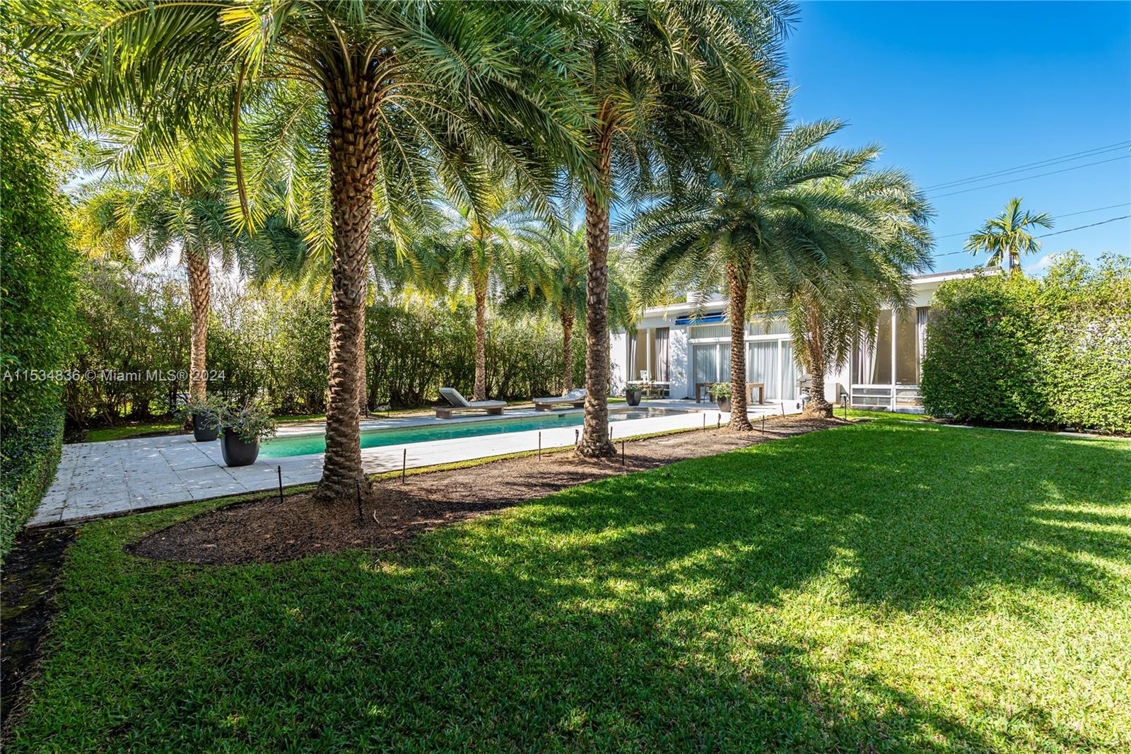 Welcome to 910 N Venetian Drive. This architectural gem, "Heller House 1" was designed by famed architect Igor B. Polevitzky. Recently updated, this 2-bed, 2-bath home is a sanctuary of tranquility, featuring high ceilings, brick walls & 13' windows that fully open into a seamless indoor-outdoor space. The backyard, with a fully motorized, retractable awning, is the perfect place to entertain & host dinner parties, framed by rows of Royal Palms flanking a large 12x40 pool. The 9,000sqft oversized lot is a developer’s dream, affording plenty of room to add on or build your dream home with unobstructed bay views from your future second floor or rooftop terrace. Prime location in Miami's most coveted neighborhoods, this home offers the ultimate blend of luxury, privacy, and convenience.