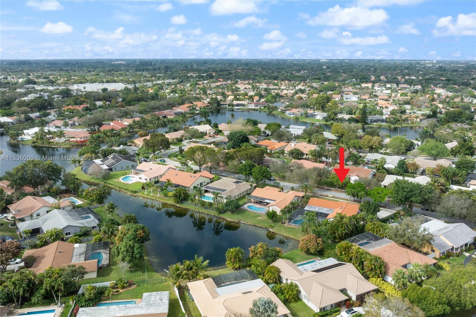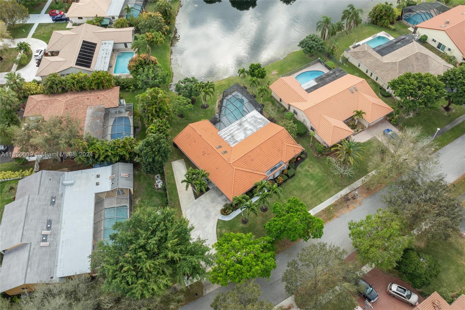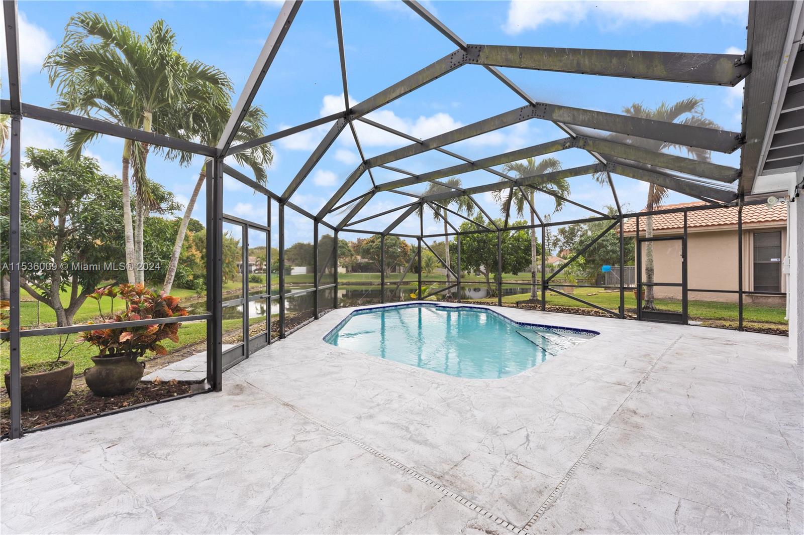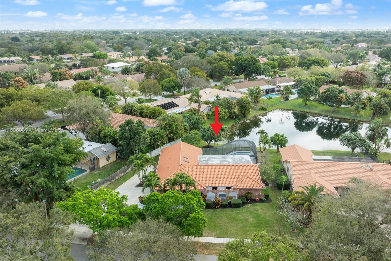 Experience luxury in this meticulously maintained ranch-style home in prestigious Jacaranda Lakes. With four bedrooms and three full bathrooms, the residence offers comfortable living space and breathtaking water views. The updated custom kitchen features incredible storage, space and top-of-the-line appliances. Updated bathrooms add sophistication and skylights offer ample natural light, illuminating tile floors throughout. Impact windows and doors enhance security and energy efficiency. The pool, nestled in a screened lanai, overlooks the serene lake, complemented by a built-in bar/outdoor kitchen area, perfect for entertaining. Centrally located near shops, dining, entertainment and the renowned American Heritage School, this upscale gem with a thoughtful design awaits its new owner!