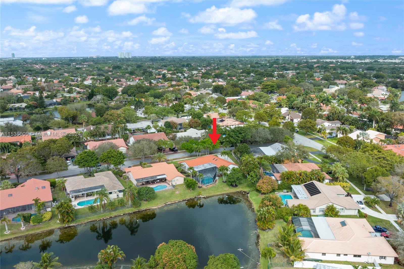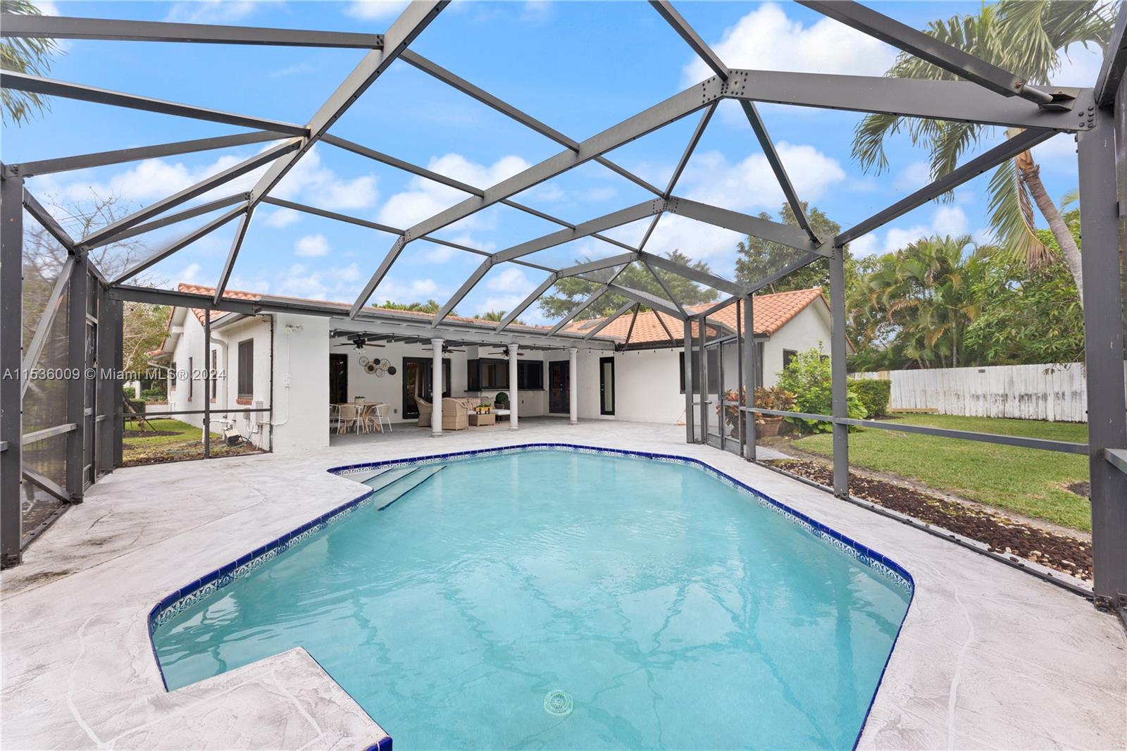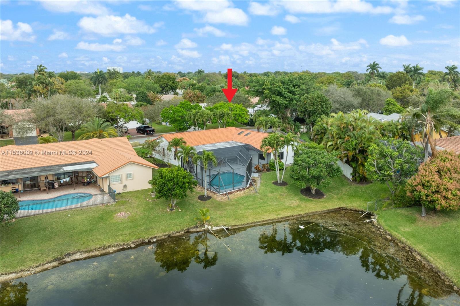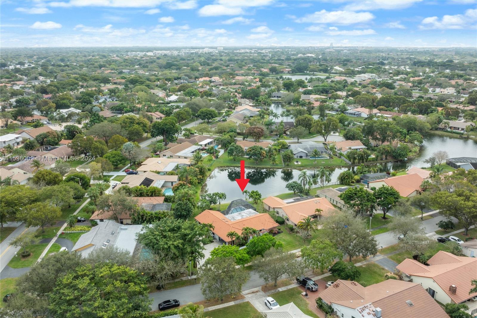 Experience luxury in this meticulously maintained ranch-style home in prestigious Jacaranda Lakes. With four bedrooms and three full bathrooms, the residence offers comfortable living space and breathtaking water views. The updated custom kitchen features incredible storage, space and top-of-the-line appliances. Updated bathrooms add sophistication and skylights offer ample natural light, illuminating tile floors throughout. Impact windows and doors enhance security and energy efficiency. The pool, nestled in a screened lanai, overlooks the serene lake, complemented by a built-in bar/outdoor kitchen area, perfect for entertaining. Centrally located near shops, dining, entertainment and the renowned American Heritage School, this upscale gem with a thoughtful design awaits its new owner!