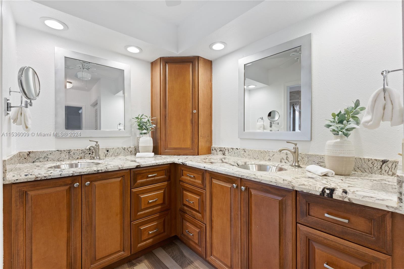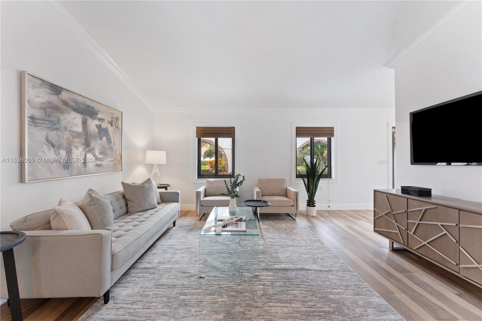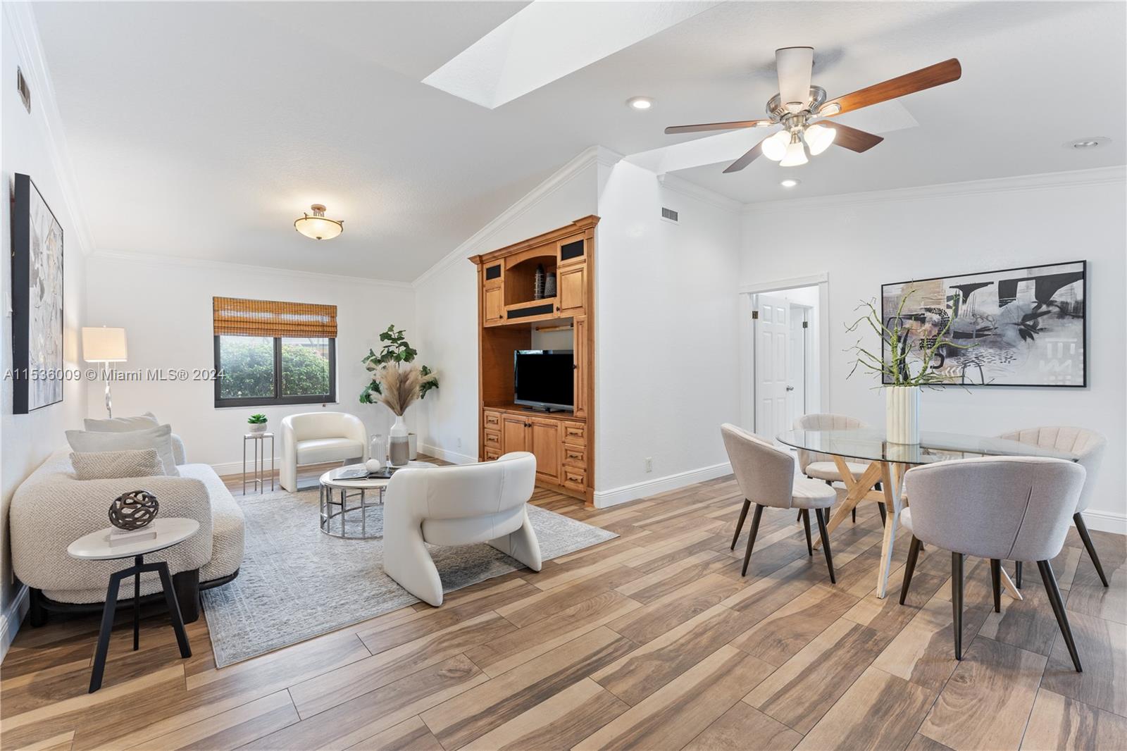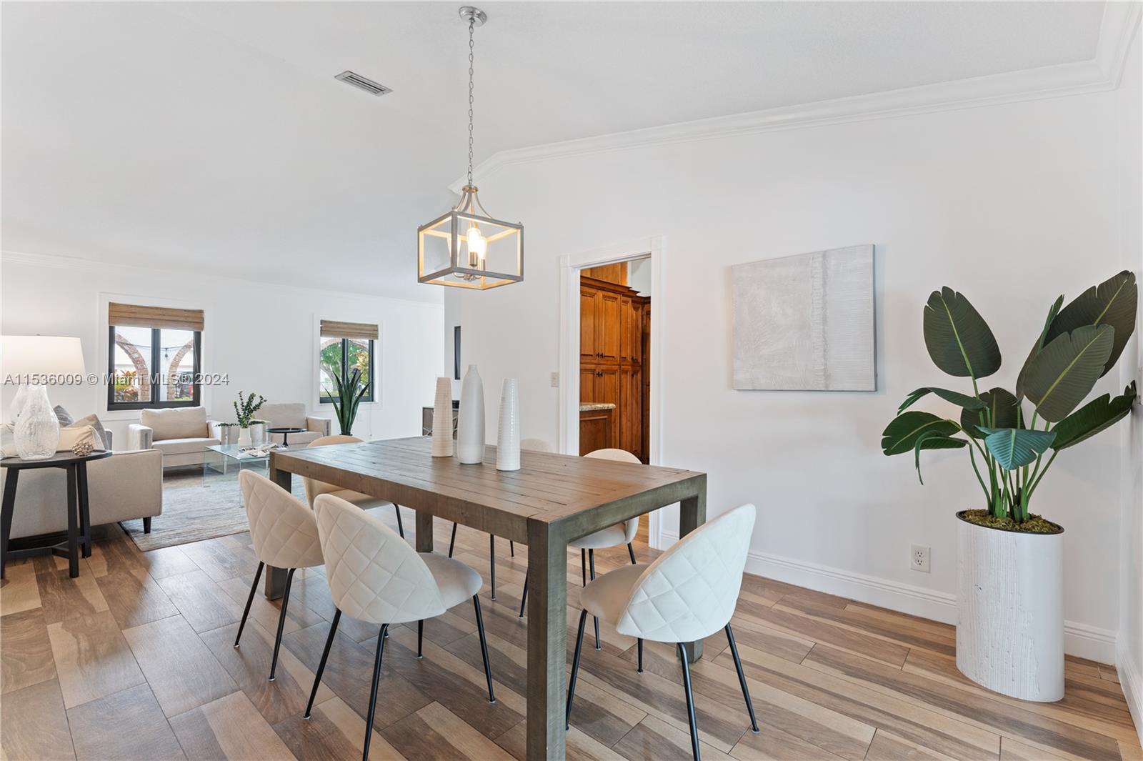 Experience luxury in this meticulously maintained ranch-style home in prestigious Jacaranda Lakes. With four bedrooms and three full bathrooms, the residence offers comfortable living space and breathtaking water views. The updated custom kitchen features incredible storage, space and top-of-the-line appliances. Updated bathrooms add sophistication and skylights offer ample natural light, illuminating tile floors throughout. Impact windows and doors enhance security and energy efficiency. The pool, nestled in a screened lanai, overlooks the serene lake, complemented by a built-in bar/outdoor kitchen area, perfect for entertaining. Centrally located near shops, dining, entertainment and the renowned American Heritage School, this upscale gem with a thoughtful design awaits its new owner!