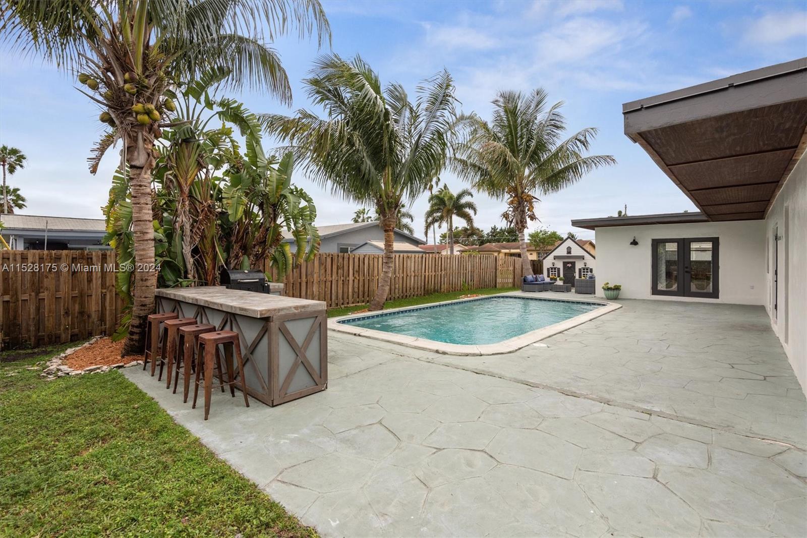 This one won't last long! Light, bright and beautifully remodeled 3BR/2BA POOL-HOME on a huge corner lot. **NO HOA** The updated eat-in kitchen boasts elegant crystalline stone countertops and SS appliances. Updated bathrooms including a full cabana bath allowing easy access to the pristine pool without having to go through the main living spaces. Tile floors throughout the living and the bedrooms. This meticulously maintained property has so many more desirable features: private fenced yard, circular driveway, walk-in closet, garage, organic palm trees, etc. Great for entertaining! Pet-friendly community. Perfect home to enjoy the South Florida lifestyle. Conveniently located near major highways, airport, restaurants, shopping, etc. Move-in ready - Perfect place to call home.
