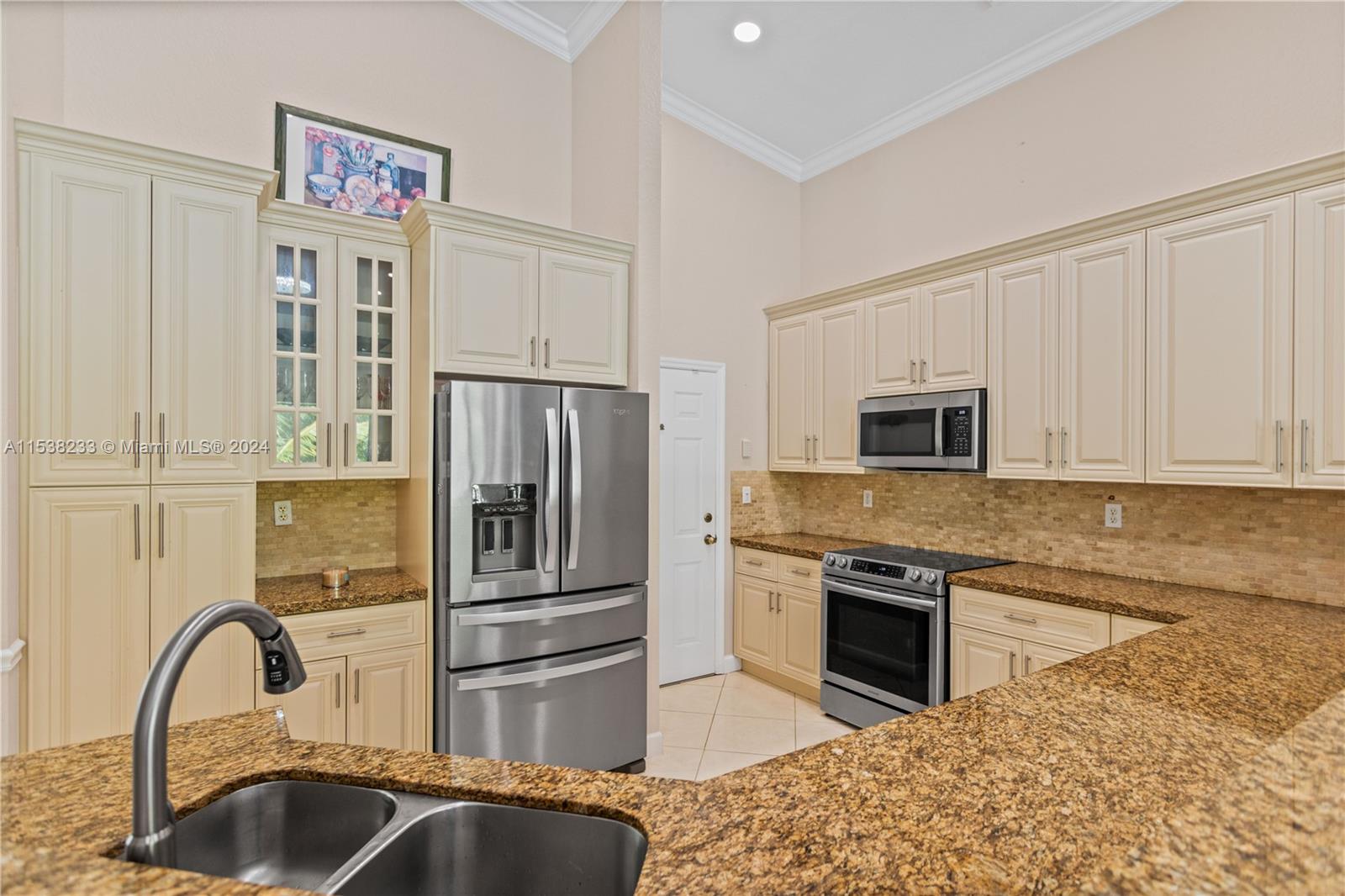 Just bring a toothbrush-move right into this 1 story pool home. Open & spacious plan. Renovated gourmet kitchen w/newer upgraded stainless appliances-a formal living & dining rm & sep fam room. Large owners suite w/wood floors, double closets w/built ins & beautifully & recently upgraded en-suite bath complete w/double sinks, shower & soaking tub. Other home features include newer roof (2019), zebra shades & electronic shade in family rm, newer plumbing, fans, light fixtures & complete hurricane protection. Enjoy relaxing outside & tranquil lake view from your oversized patio & fully fenced yard. Pool/hot tub complete w/ child fence, lots of fruit trees (avocado, coconut, guava and mango). Gated community, walk to elem school in community, close to shopping and major roads (I75 & turnpike)