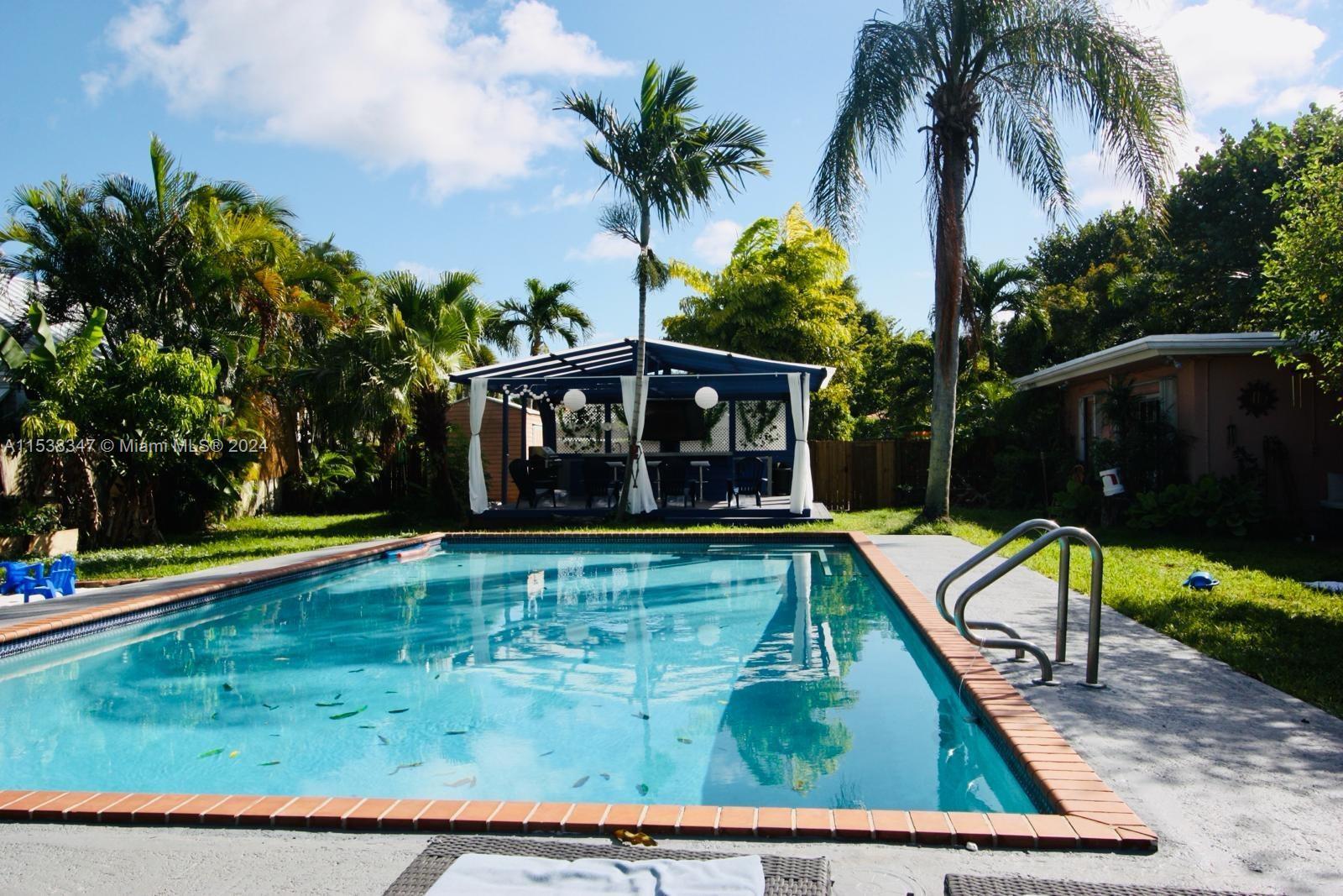 PARADISE FOUND in one of the most desirable locations in East Hollywood!This very special 3,800 SqFt home on a 16,152 SqFt Lot is where memories will be made w/all day swimming in the fabulous pool & sipping cool drinks in the tropically landscaped sanctuary!Split floor plan ,dining room,family room,guest bath,Master suite & master bath with bathtub just renovated,+2 bonus rooms that can be used as bedrooms,office or studio & best of all walk through the hall or use the private entrance to your "guest casita"! The 1,100SqFt "casita" includes a master suite plus one den recently renovated ,master bathroom, living room, kitchen with own washer/dryer. Owner can provide designed plans for main house renovation.Brand new impact glasses throughout. New deck. TRIPLE LOT.
