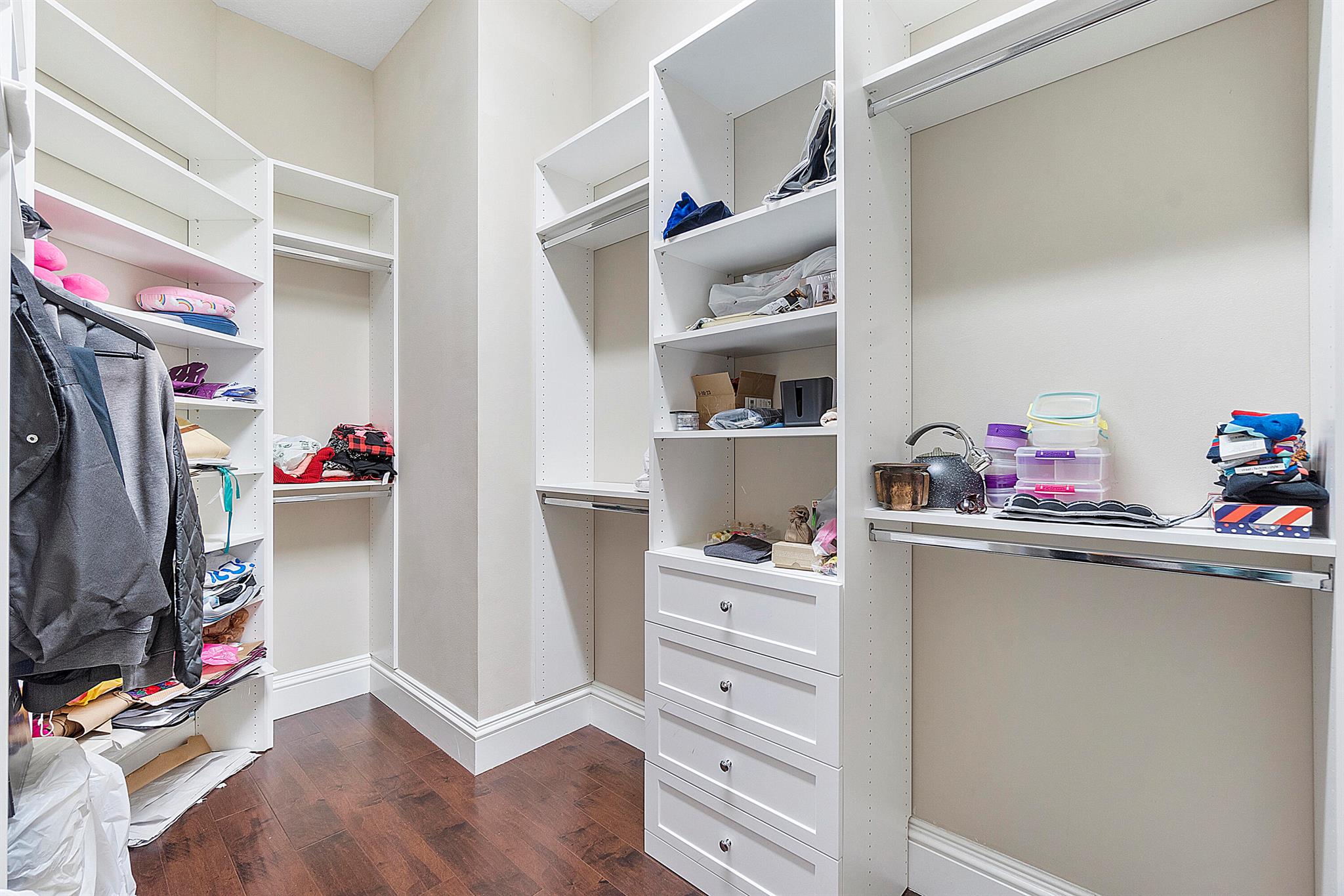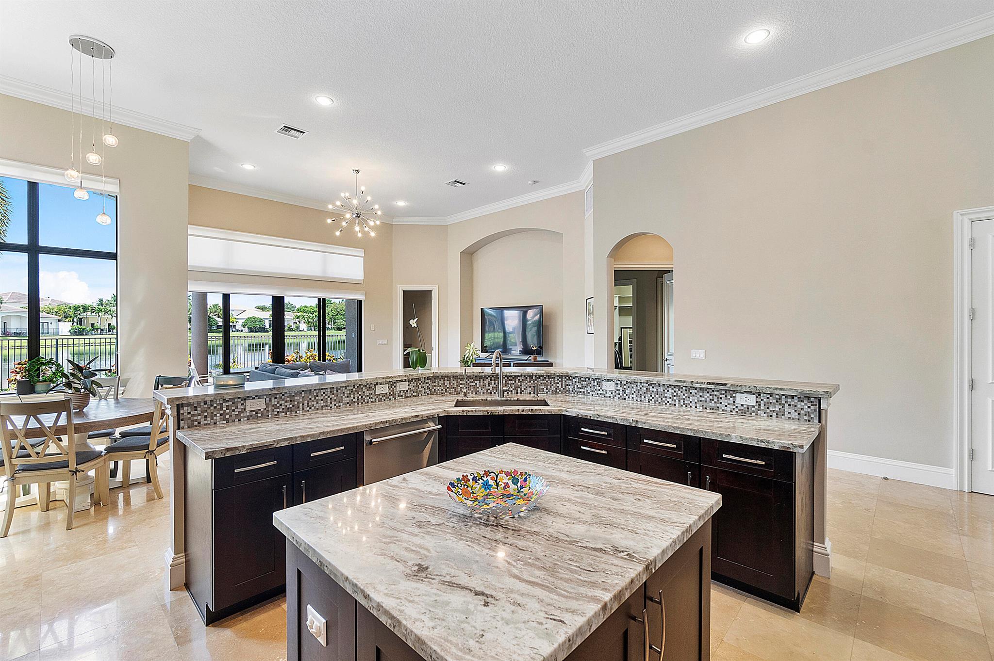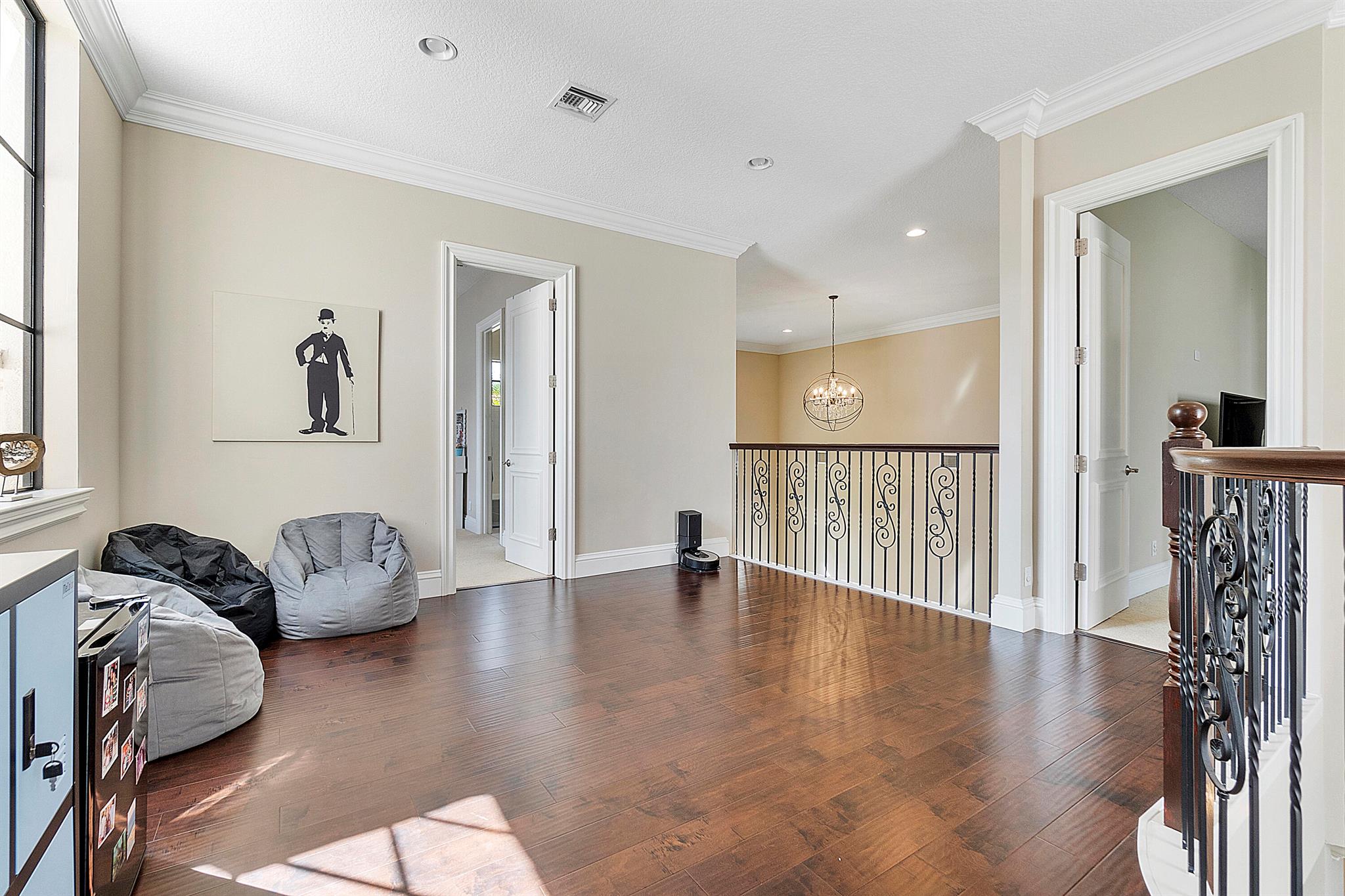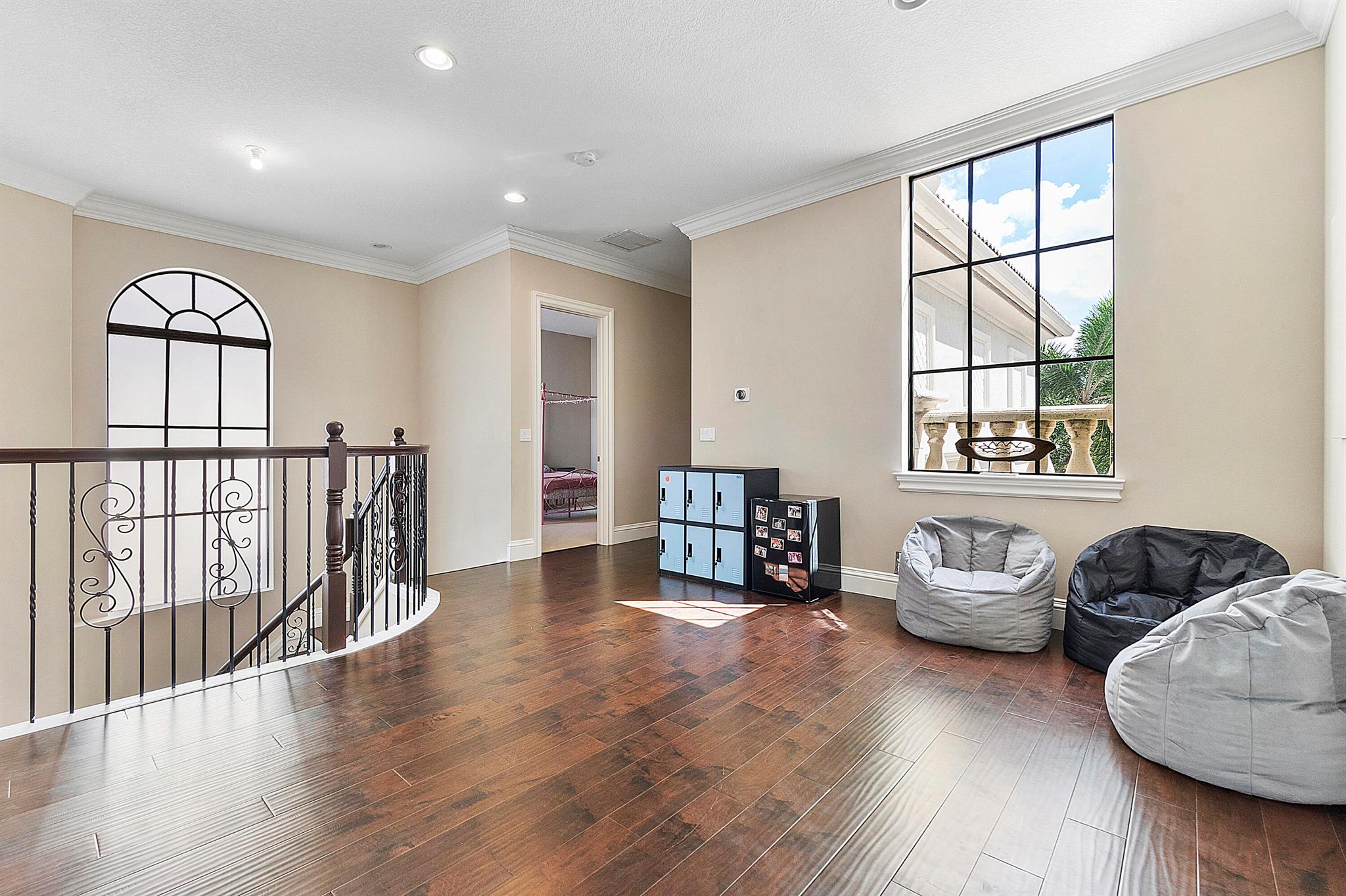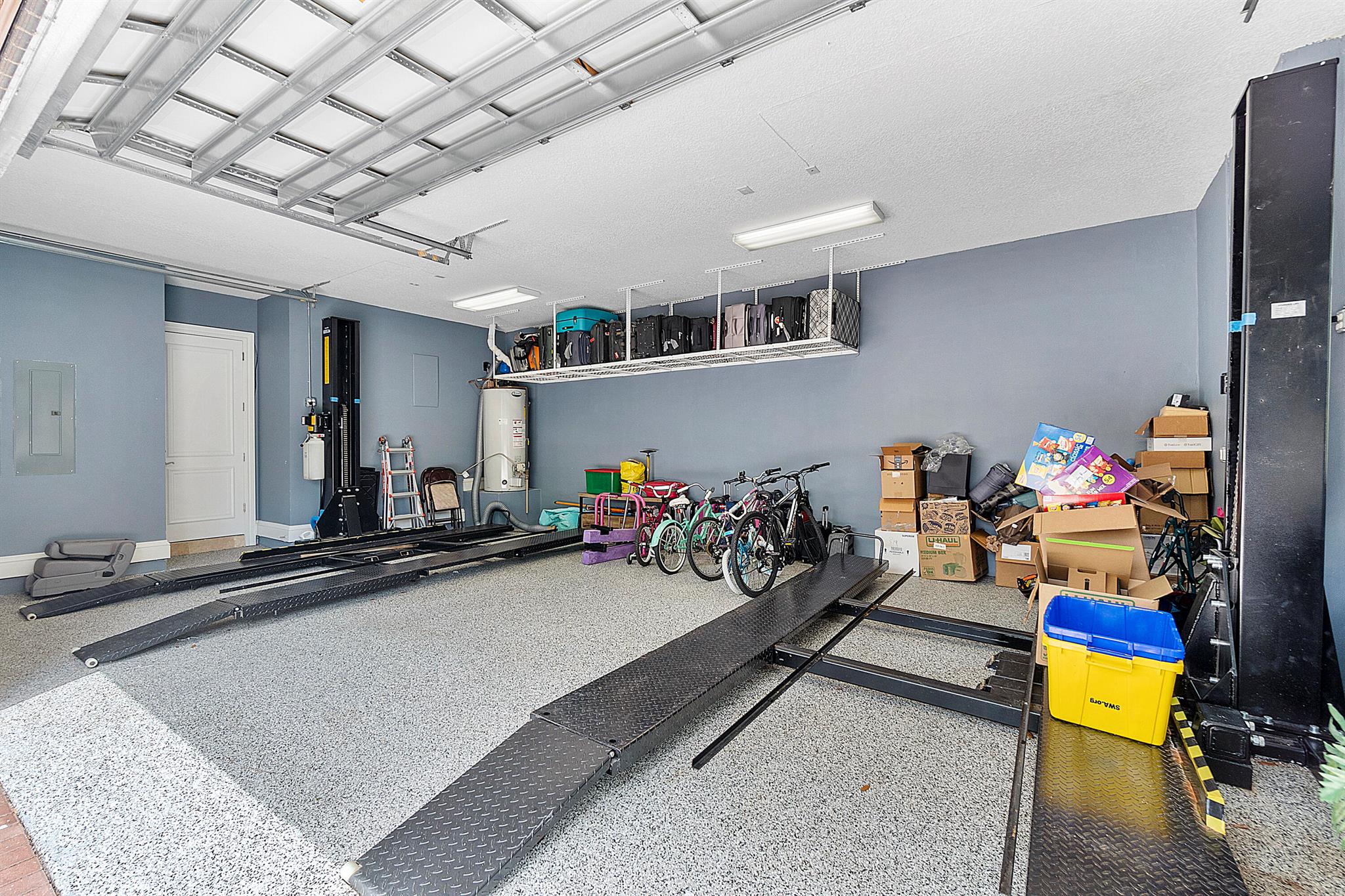 5 Car Garage Oaks Boca Raton St. Moritz model on the lake, 2 car lifts, 3 car garage, accommodates 5 cars in the garage, room for more cars in the driveway, master bedroom first floor, French doors off master to the pool, private back yard, his and hers walk-in closets, 22-foot ceiling, wrought iron stair rail, marble floors, crown molding, remote control blinds, built-in closets, woodwork trim details, custom upgrades, including a gourmet island kitchen, granite counters, glass tile backsplash and Thermador S/S appliance package with 48'' built-in refrigerator and 36'' gas range, 100 % hurricane Impact glass, heated pool, water softener, resort clubhouse, game room, tennis, pickleball, basketball, pool, gym, spin room, spa, and restaurant.