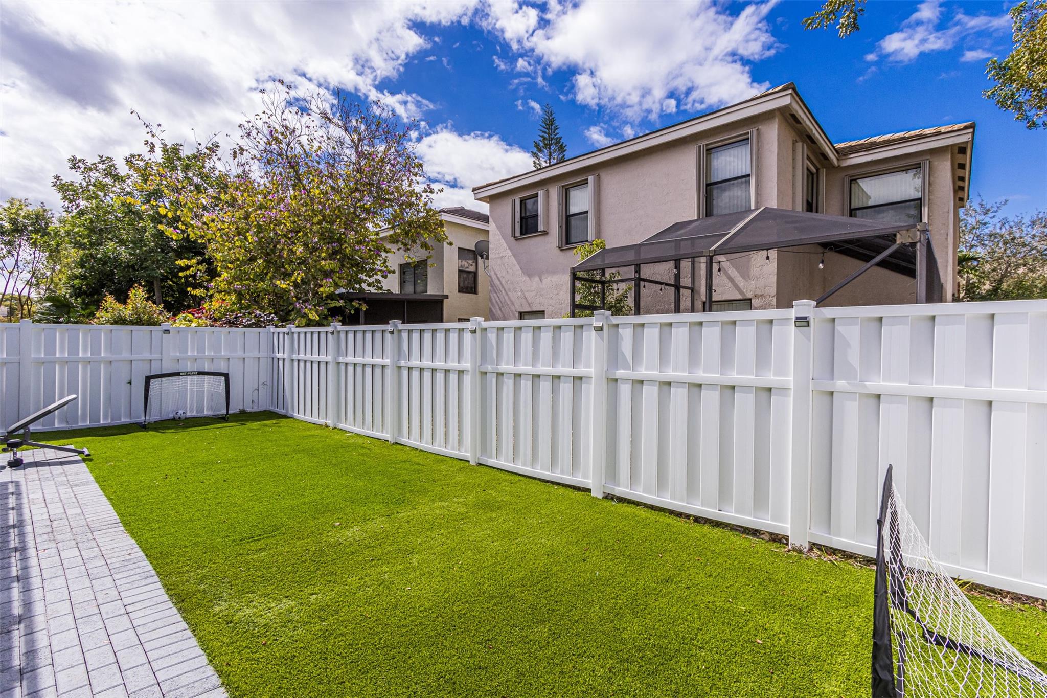 Discover the charm of this spacious 3 bedroom, 2.5 bath home, ideally situated on a beautiful corner lot. with both privacy and security, the property is fully fenced, for your peace of mind. Step inside to find a modern haven, meticulously updated with a new roof (2018), newer A/C, and appliances. Accordion shutters stand ready to provide seamless storm protection. Enjoy effortless commuting with convenient access to a major highway nearby. Outside, the backyard is welcoming with lush artificial grass, creating an inviting space for outdoor relaxation and entertainment. Don't miss the opportunity to make this stylish and conveniently located home yours. Schedule your showing today!