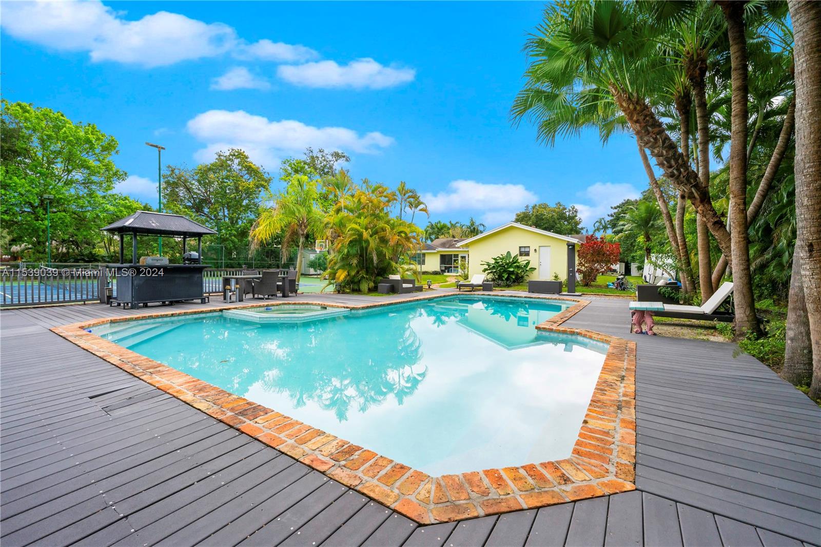 Nestled in a Cul de Sac of the sought after Plantation Acres development, this beautiful property has a great floor plan has 3,764 Sq Ft. under air, 4 beds and 4.5 baths plus a 2 car garage. Comes with an open floor plan, vaulted ceilings that creates a wonderful space for entertaining guest, fireplace, large bedrooms all with a bathroom and plenty of closet space. This home sits on a builders acres with 39,331 Sq. Ft and comes with a full size tennis/basketball court and huge pool with spa. Plenty of room for recreational vehicles, stalls for horses or chickens etc. Close to Sawgrass mall, American Heritage Plantation private School, major highways and 5 star restaurants. Easy to show!!