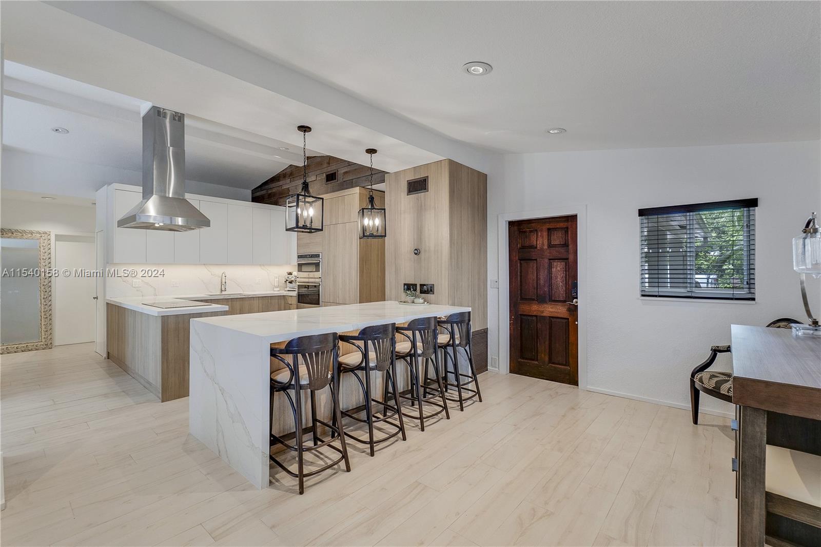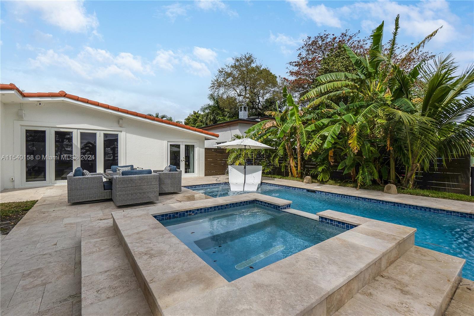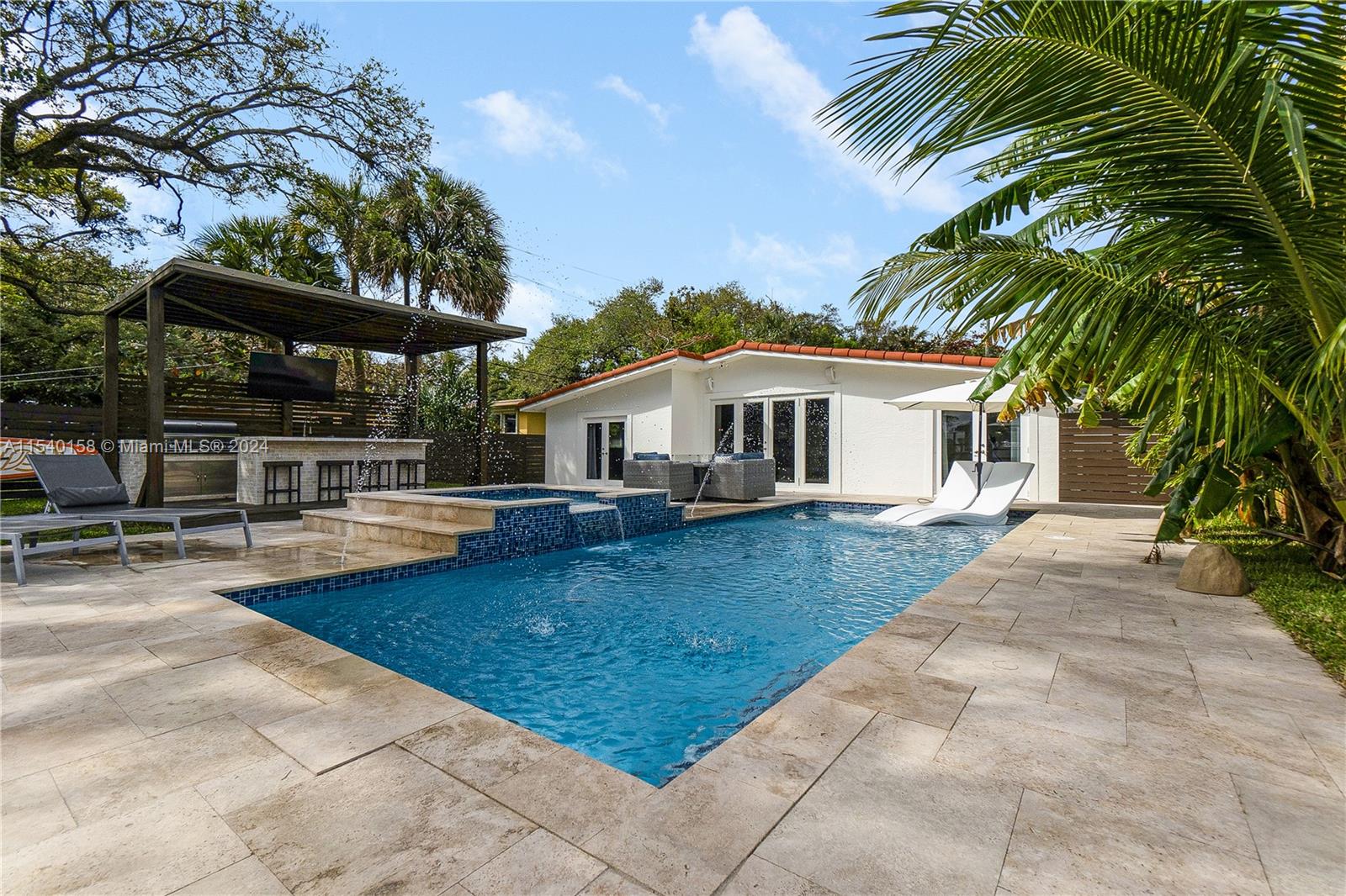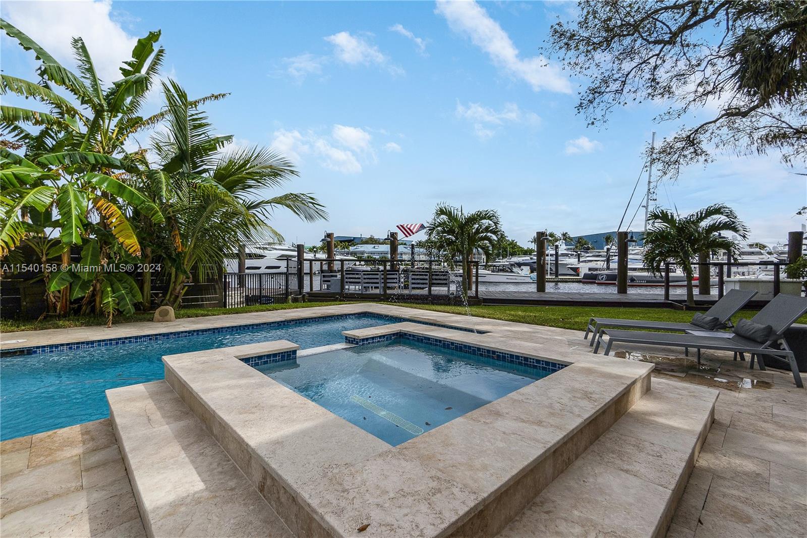 Welcome to your waterfront paradise. This meticulously renovated home offers a luxurious retreat with a 60-foot deepwater dock, perfect for boating enthusiasts. The outdoor space is an entertainer's dream, featuring an outdoor kitchen, JetSki lift, solid wood privacy fence heated saltwater pool surrounded by travertine tile, hot tub and a full Sonos surround sound system. The property boasts an array of modern amenities including impact windows, new AC, a $70,000 kitchen renovation w/brand new appliances, porcelain wood-look tile, recessed lighting, vaulted ceilings, renovated bathrooms and bedrooms... all adding to the allure of this stunning home. This property offers the perfect blend of luxury and functionality. Don't miss the opportunity to call this remarkable residence your own.