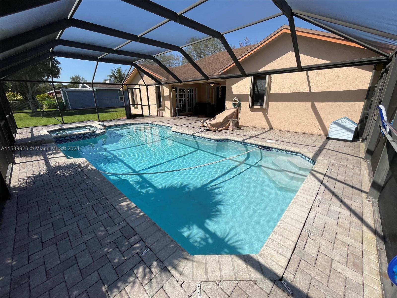 Just reduced!! Lovely pool home in the center of Plantation Acres sitting on just under 1/3 acre! This beautifully maintained single-family home features many upgrades. Some upgrades include a remodeled kitchen with stainless steel appliances, wood cabinetry, and granite counters; Vaulted ceilings with rich warm wood panels; Laminate flooring throughout the living area; New front double doors; One completely renovated bathroom; and a bedroom that was turned into a huge closet but it can easily be converted back. Enjoy the tranquility of the covered patio and screened-in pool area. The water heater, range, and dryer are all powered by gas which is a bonus if the power goes out for an extended time. Just minutes away from the Sawgrass Mills mall, dining, and the Florida Panther's Arena.