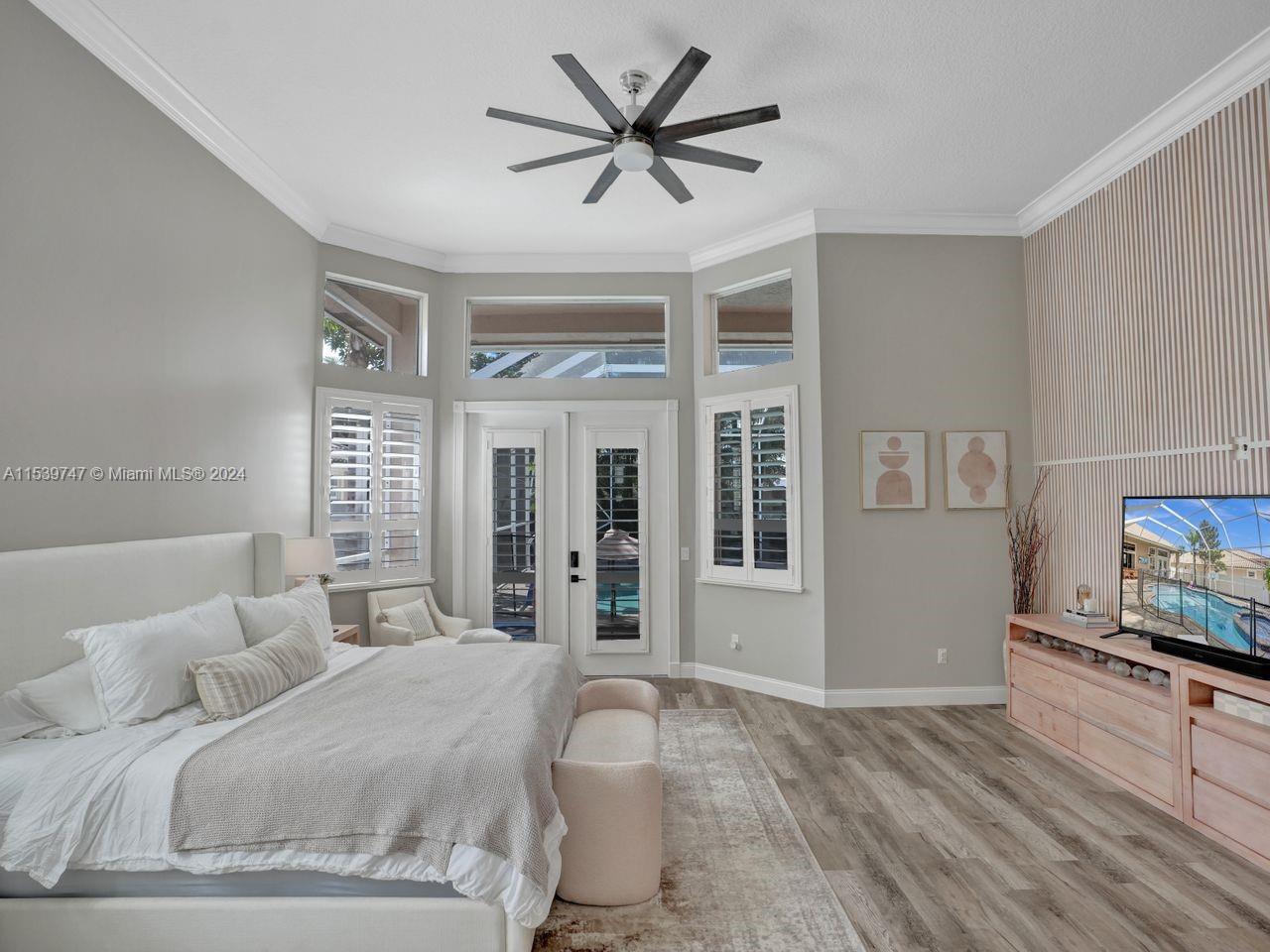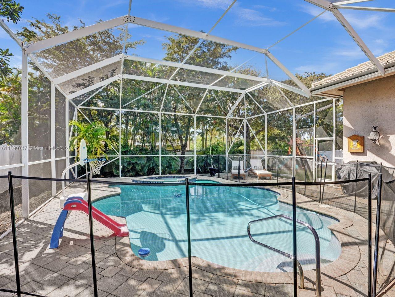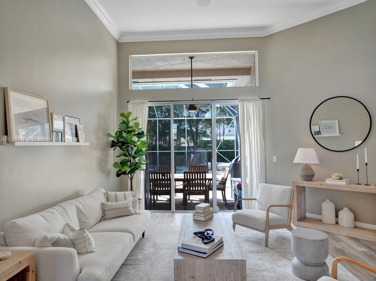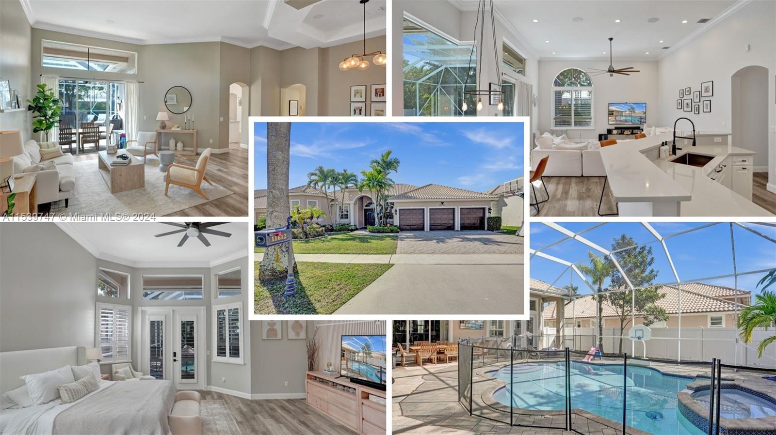 Behind the gates at Crystal Cove Estates is your new pool home. Tastefully updated, designer finishes. 3000+SF, 1/4 acre lot, triple-split floorplan w/no neighbors behind. 4BR w/5BR used as office/3BA. Step inside foyer, seamless luxury vinyl providing warmth of wood w/o maintenance. Plantation shutters & crown molding add classic charm. Primary suite-wood accent wall, new AC, 2 walk-ins, jacuzzi & open shower. Chef's kitchen boasts island, counter bar & dining area. New appliances. Laundry room w/new W&D, sink. 3-car garage, Sonos pre-wired. Outdoor space fully fenced-in w/pool & spa, baby gate & turf backyard. Only 30 homes in community. Make the most of this rare opportunity to experience West Boca Raton living at its finest. Shops, parks & more nearby. A-rated school district.