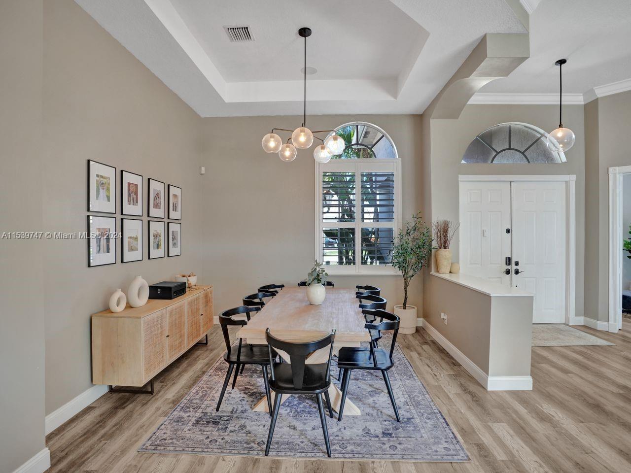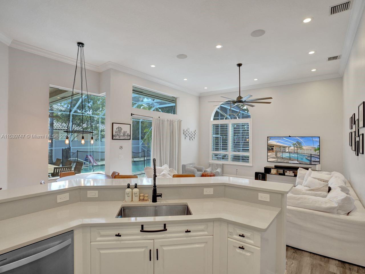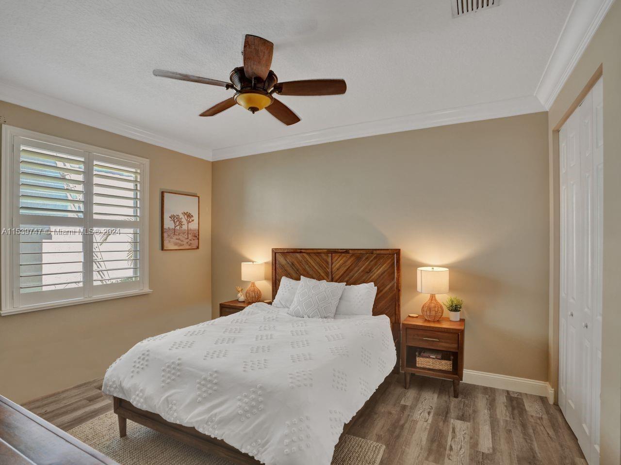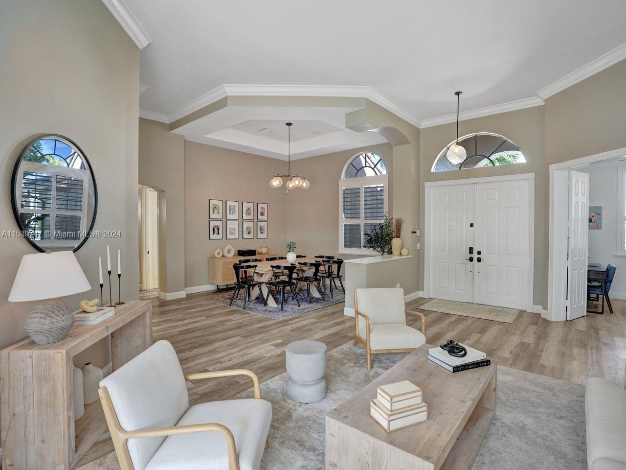 Behind the gates at Crystal Cove Estates is your new pool home. Tastefully updated, designer finishes. 3000+SF, 1/4 acre lot, triple-split floorplan w/no neighbors behind. 4BR w/5BR used as office/3BA. Step inside foyer, seamless luxury vinyl providing warmth of wood w/o maintenance. Plantation shutters & crown molding add classic charm. Primary suite-wood accent wall, new AC, 2 walk-ins, jacuzzi & open shower. Chef's kitchen boasts island, counter bar & dining area. New appliances. Laundry room w/new W&D, sink. 3-car garage, Sonos pre-wired. Outdoor space fully fenced-in w/pool & spa, baby gate & turf backyard. Only 30 homes in community. Make the most of this rare opportunity to experience West Boca Raton living at its finest. Shops, parks & more nearby. A-rated school district.