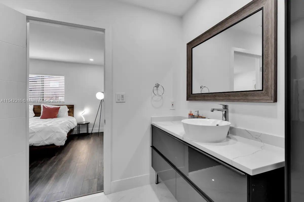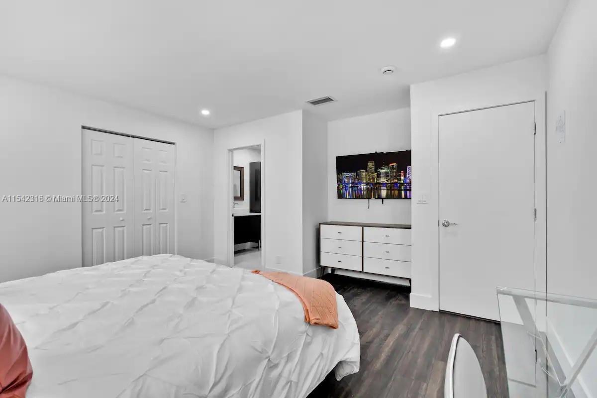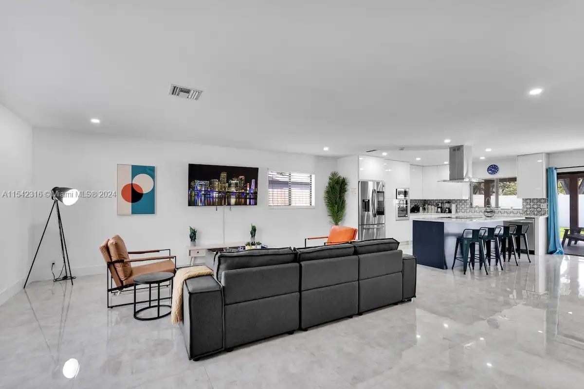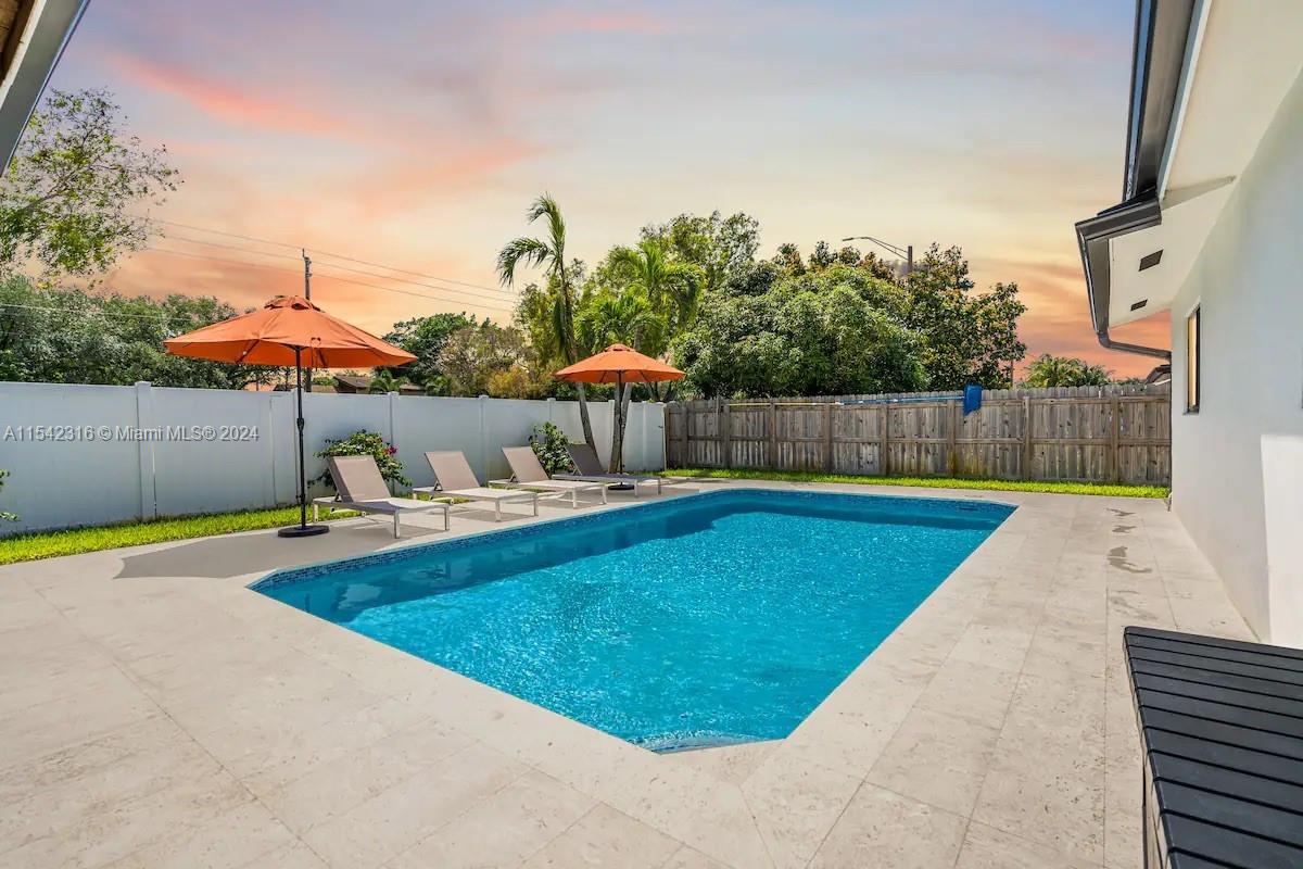 Welcome to a stylish haven with four bedrooms, each featuring plush bedding and Smart TVs. The primary bedroom has a king-sized bed, private ensuite, and an office desk, while the second bedroom offers a queen-sized bed with a Smart TV. Bedrooms three and four have two full-sized beds and a bunk bed with twin-sized beds, respectively. The two full bathrooms offer comfort with high end finishes. The well-appointed brand new kitchen has high end stainless appliances, ample counter space, and all culinary essentials. The living room, styled with a modern sofa, Smart TV with Xfinity Stream, and two arcade games, sets the scene for leisure and entertainment. Step outside into vibrant Ft. Lauderdale living with a private pool, sun-beds, and an outdoor area with a gas grill. Call Listing agent.