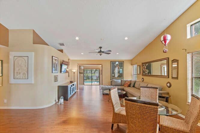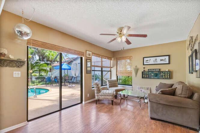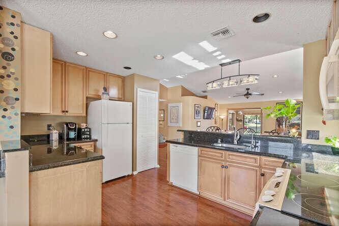 Location, location, location. Culdesac corner large lot backing to the lake with a private pool. Paddle board from your fenced yard. So much opportunity. Large foyer, separate laundry room. Dry bar off dining room/family room. Vaulted den or potential 3rd bedroom.Large eat in kitchen, granite counter, 2 tiered counter bar space. Bayed eat in kitchen area with a side door grilling. Dining room combination with the family room. Vaulted family room with CF and recess lighting. Primary bedroom is open to Florida Room. Huge fenced lot with room for playset and garden. Wonderful private pool with full enclosed gate.Roof is 17 years new,Ac is2021. Home is priced to sell ''AS IS. mission-bay site