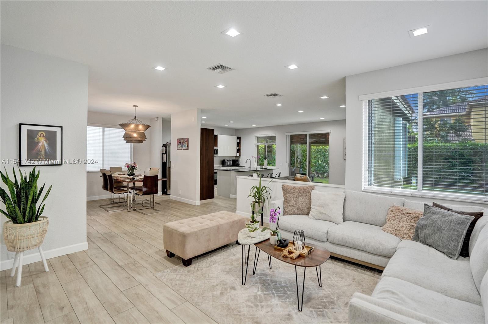 Nestled within a prestigious family-oriented neighborhood, this lovely two story home totally remodeled features 4 bedrooms and 2.5 bathrooms in an open floor plan that invites you into a bright living area, adorned with chic finishes. The modern kitchen showcases newer stainless steel appliances and custom cabinetry. Neutral Tile floor on 1st and 2nd floor. Luxury wood look laminate flooring on bedrooms. A High Efficiency AC was installed in 2023. The resort-style living offers 5 star amenities, with clubhouse, 3 swimming pools, sports courts, surrounded by lush landscaping and walkable paths within tranquil lakes. Savanna offers serenity and comfort in a prime location with an excellent school district, and surrounded by shoppes, restaurants and un paralleled lifestyle.