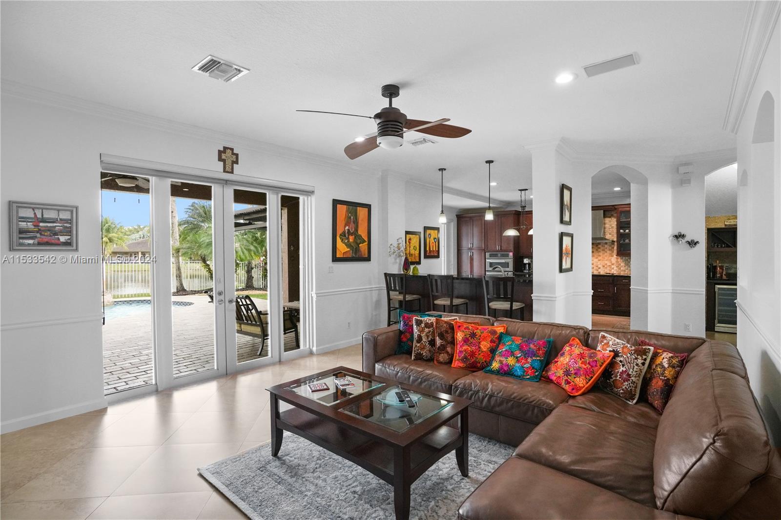 Beautiful water front two story 5 bedrooms and 3 bathrooms house, inmaculate condition it feels like a model home, one full bedroom and bath on first floor, granite counter tops and double oven wall in kitchen, big island. Induction stove. Porcelain on first floor living areas and carpet on second floor (2023). Roof replaced in 2023, the A/C is 2018, washer and dryer 2022. Gorgeous backyard, perfect for entertainment free form pool, lake, and summer kitchen. Accordion schutters, all upper windows in living area will be high impact windows. Located in the prestigious guard gated community of Isles at Weston, You can enjoy the recently remodel gym, 2 pools, basket and more at the club house. Walking distance to Manatee Bay Elementary, Falcon Cove Middle, and Cypress Bay high schools.AS-IS