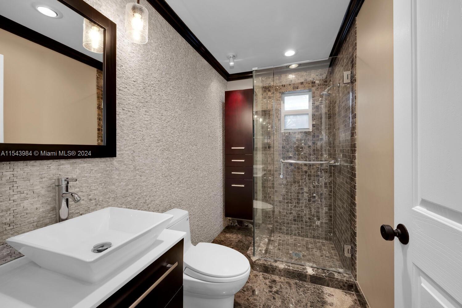 Welcome to paradise! This 1-story 5 BR/5BA + office home provides wonderful privacy ideally situated in the Pinecrest Elem School district on a no-thru street, yet close to it all. We aren't sure what you'll like better-the builder's acre lot w/ enough room for a soccer game or house expansion, or the house itself which is not your typical Pinecrest ranch! High ceilings thruout the living spaces are an unexpected surprise, and the list of updates is impressive. All impact windows & doors, luxury vinyl flooring, gorgeous kitchen w/ cooking island & new appliances, newer a/c & ducts, 2 new septic systems, updated plumbing (sleeve & pvc) & new flat roof. The pool & patio area are the perfect spot to relax at the end of the day, and a koi pond with yellow-belly-turtle is the icing on the cake.