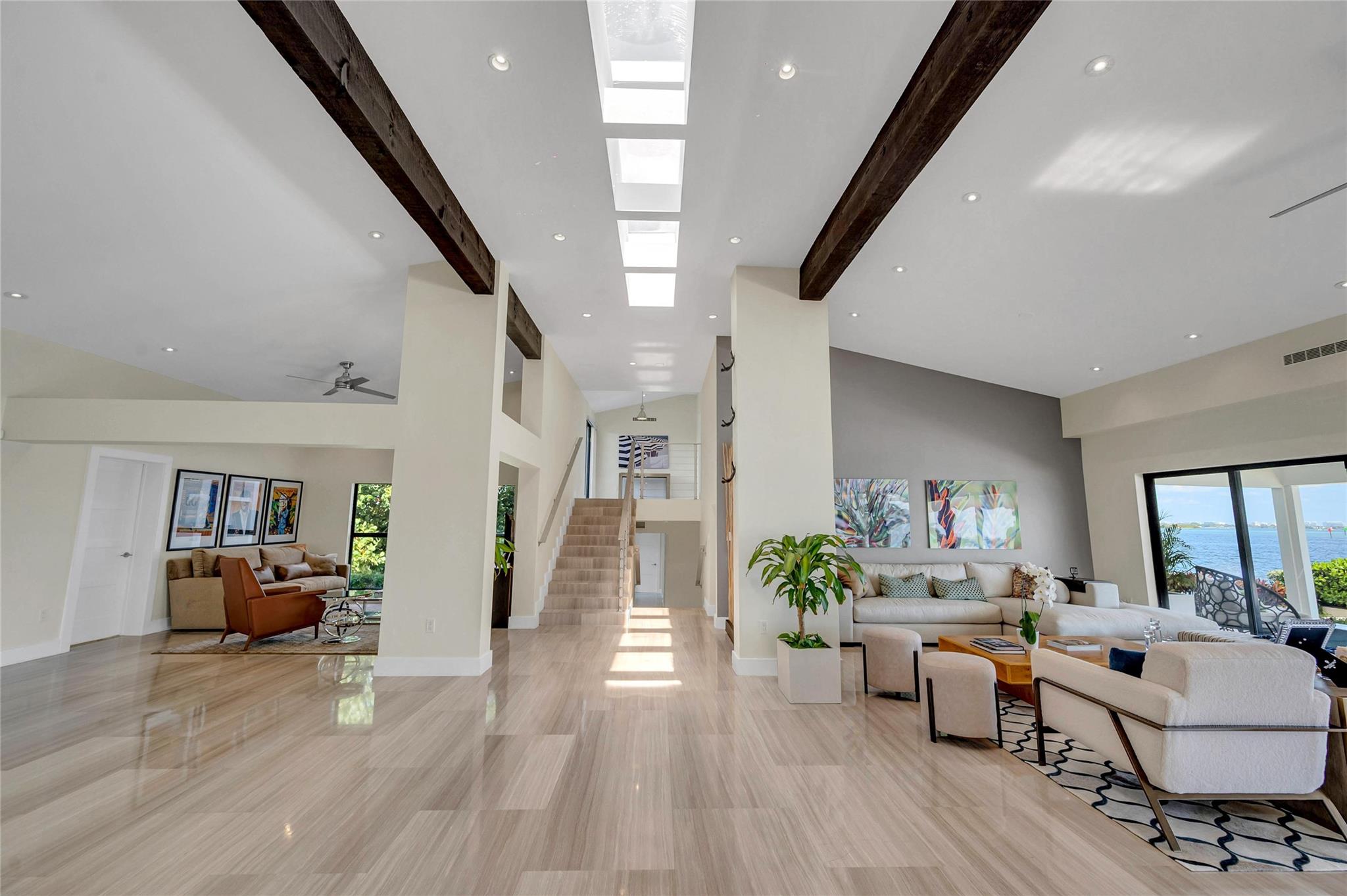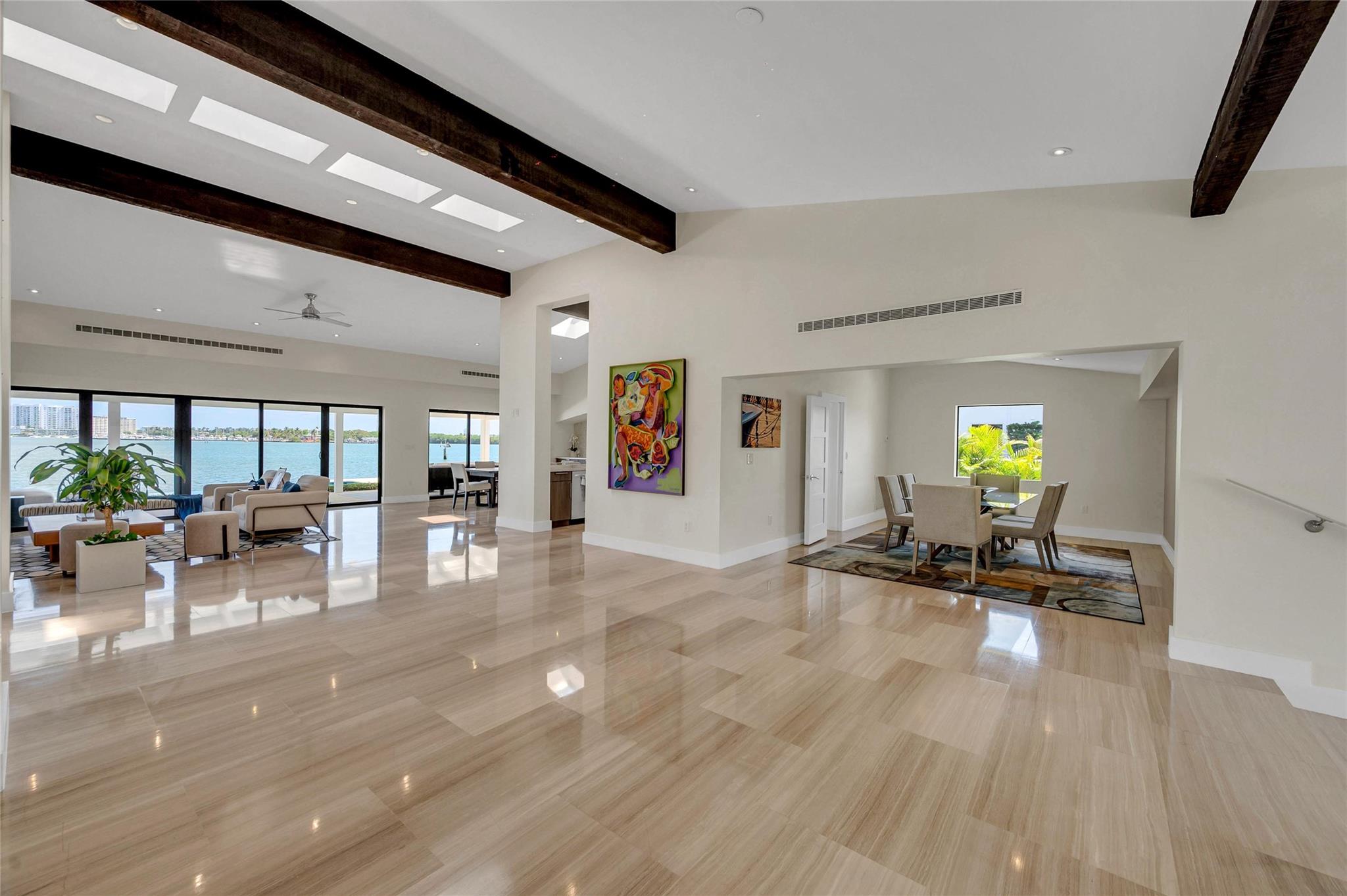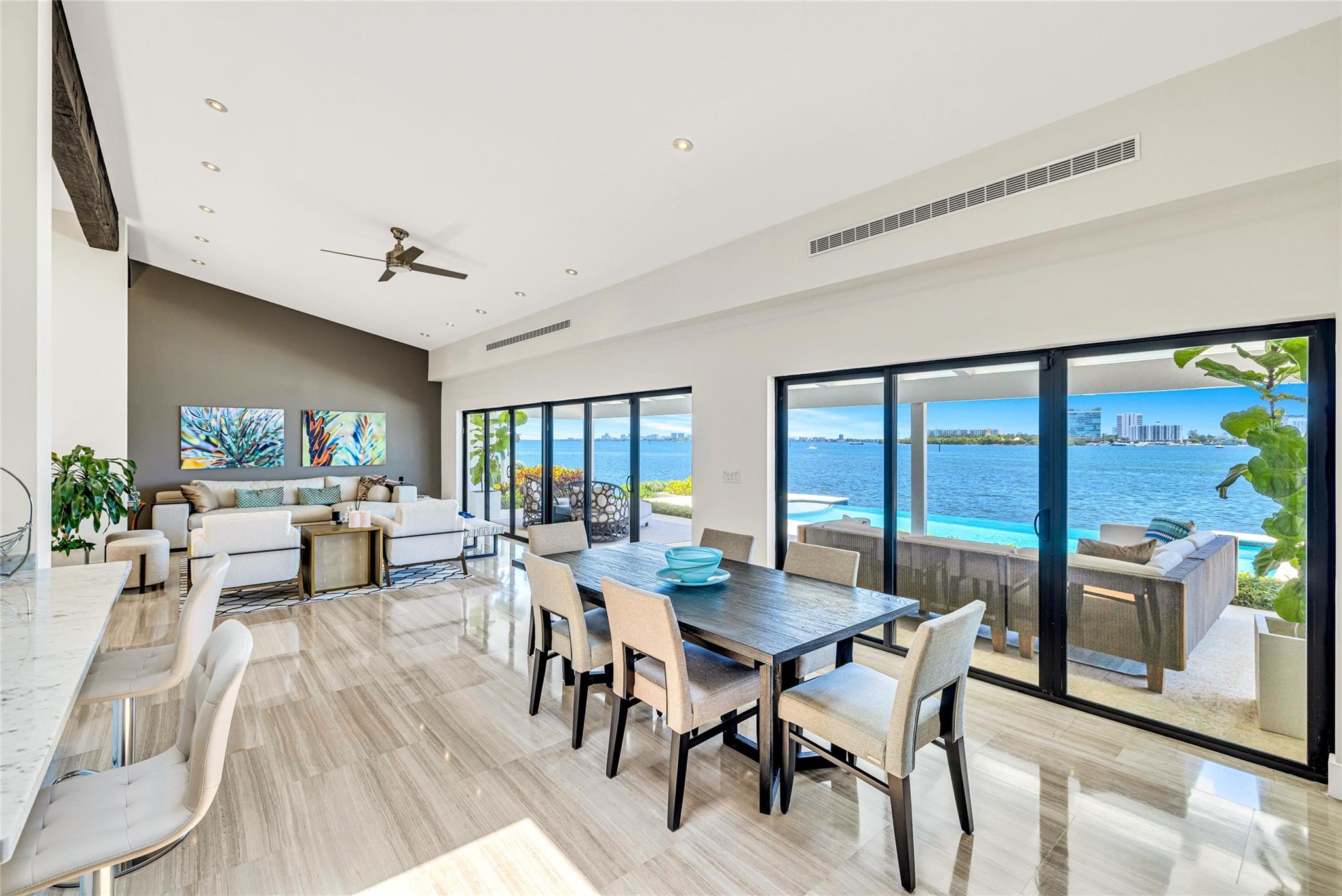 Savor panoramic Biscayne Bay views from every room in this 5,768 SF modern residence. Set on a gated 27,000 SF southeast point lot with 285 FT of waterfrontage, 150 FT on the Bay & 135 FT of protected canal dockage. Soaring skylit ceilings & wall-to-wall sliding glass doors frame the stunning living areas, unveiling uninterrupted bay views, a covered veranda, infinity pool, and expansive terrace ideal for alfresco dining & entertaining. The 1,240 SF Primary Suite features a lounge area, sweeping views, & full-length balcony. Three en suite guest rooms each open to a covered loggia & spectacular sunrises. Located on a quiet cul-de-sac, this home is convenient to top rated schools, major sports venues, the Design District, world-class shopping & dining, Miami Beaches, and the Int'l Airport.