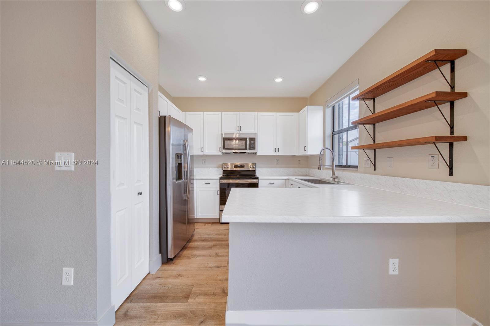Introducing a stunning 3 bedroom, 2.5 bath, 1,708 s/f townhouse with garage, located in the highly sought-after gated community of Aquabella. This beautiful home offers a perfect blend of comfort and convenience. Property is freshly painted and move-in ready. Kitchen is equipped with stainless steel appliances and plenty of cabinet space, plus built-in bar w/wine cooler. Home features accordion shutters throughout, driveway for 2 vehicles, plus no back neighbor with an open green space. Community provides a secure and peaceful environment w/amenities such as 2 pools, children's aquatic playground, exercise rooms & beautifully landscaped common areas. Whether you are looking for a cozy home or a lucrative investment, this property offers the perfect opportunity. Don't miss out on this gem!