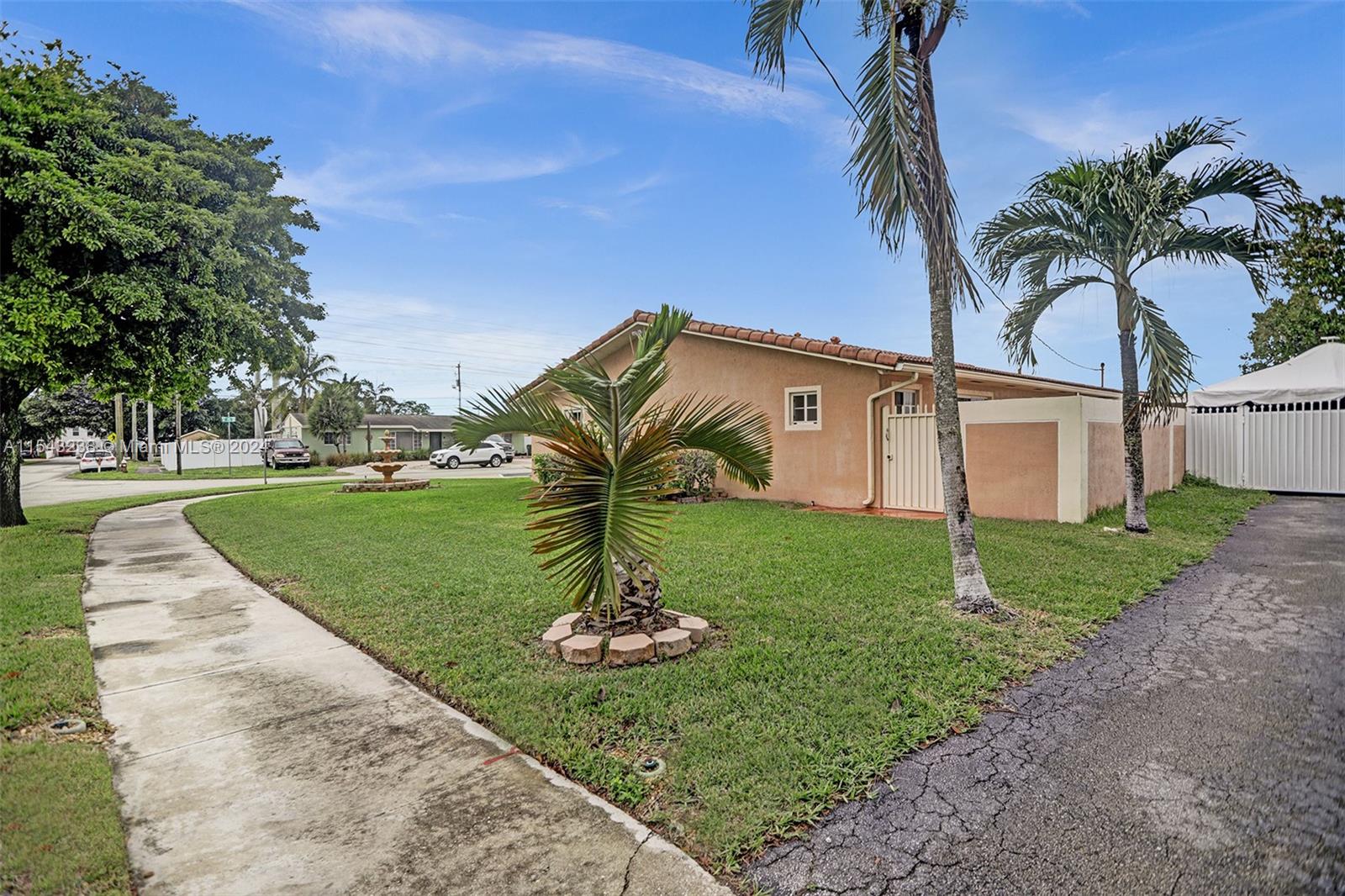 Beautiful well maintained home with circular driveway with great curb appeal. Oversized corner lot with upgraded concrete walls throughout the property. 4 bedroom, 3.5 bathrooms. Open layout with tile throughout the home. spacious Living room, family room and formal dining room. The home was remodeled and the family room, terrace, kitchen, master bedroom and bathroom were expanded. Updated hurricane impact windows and doors. Outdoor kitchen and refrigerator, great for family events and gatherings. Very well maintained home in a highly desirable area, close to great schools and major highways. No HOA.