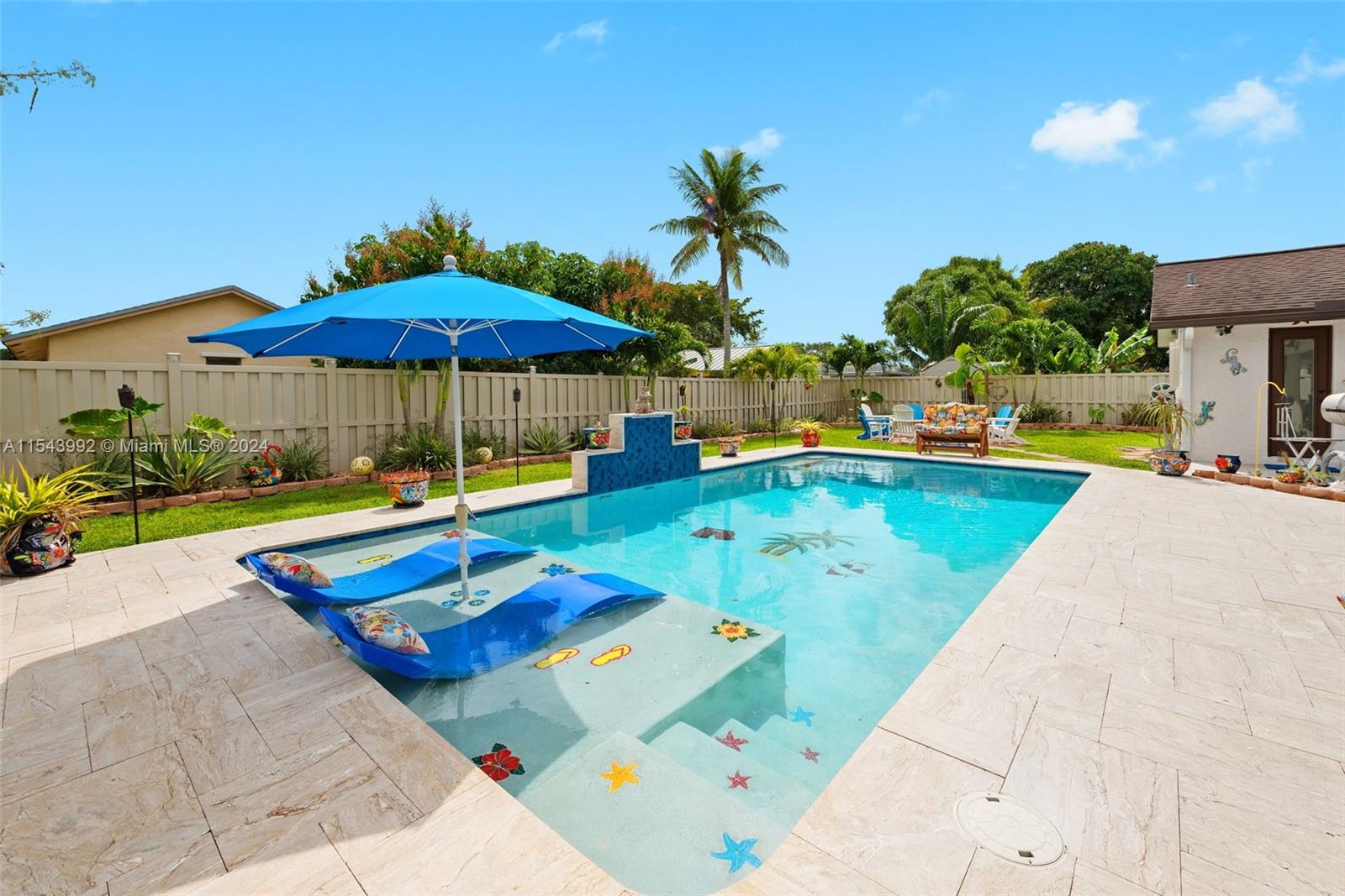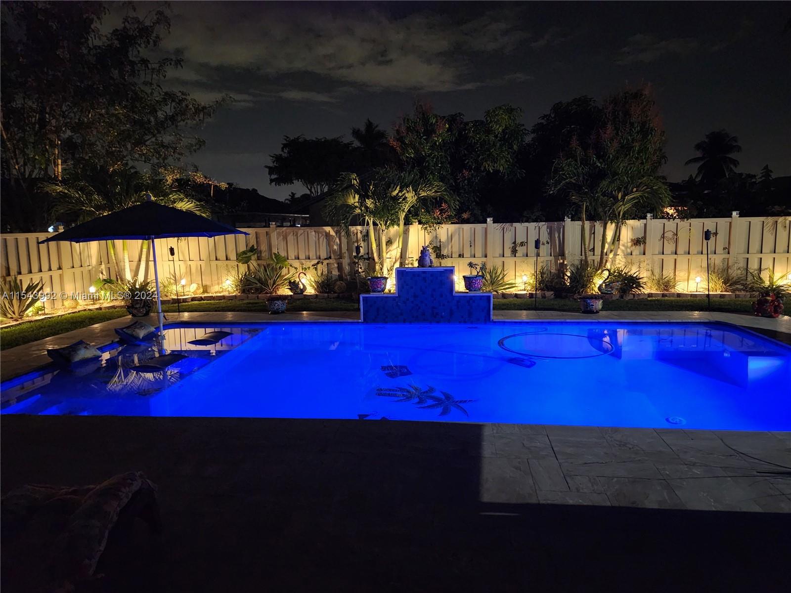 Welcome to paradise. This stunning 3/2 home offers many amenities and smart features, creating the ultimate haven for relaxation and entertainment. Step inside to discover modern elegance, with updates throughout the home including a newer roof and sleek ceramic floors. Both bathrooms have been tastefully renovated with modern fixtures and finishes, while the chef's dream kitchen with updated appliances and a big island perfect for entertaining. Now we take you ourdoors to breathtaking landscaping and a tropical oasis pool with and adjacent cozy firepit for evenings under the stars.The home also has smart home tech. with security of modern living from smart locks, smart AC thermo., smart switches, and security featuring 11 cameras with 4 PTZ (pan/tilt/zoom) all at your fingertips.