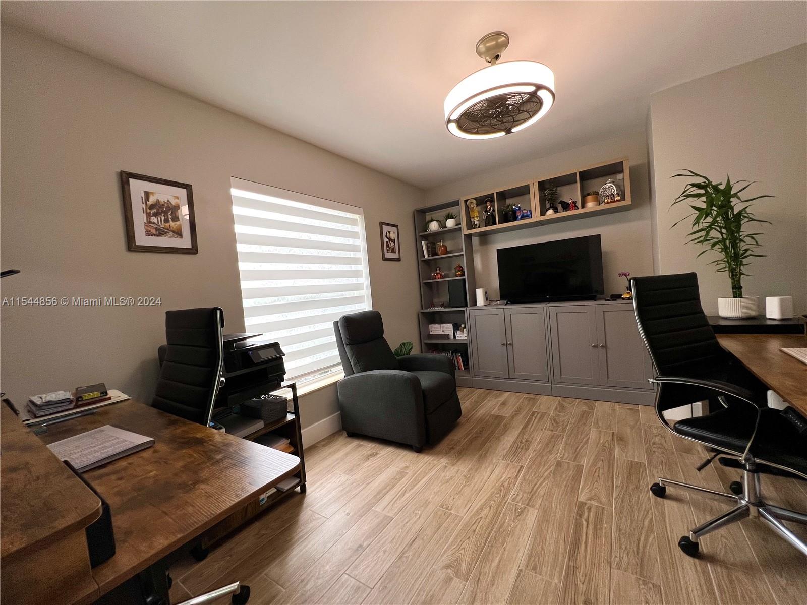 BACK ON MARKET, Buyer's financing fell through. This stunning single-family home boasts 3 beds, 2 baths in a 10,737sq ft lot perfect for a growing family or those who love to entertain. Half of the garage is converted in a bonus room to keep the office space which is ideal for those who work from home or need a quiet space to focus. The granite counters in kitchen add a touch of luxury, while the lake view provides a serene backdrop to your daily life. The new washer and dryer with Bluetooth technology make laundry a breeze, and the new hybrid resilient waterproof floor ensures durability and style. Step outside to the patio, perfect for hosting gatherings with friends and family. AC from '22 with new ducts and vents. Don't miss out on this incredible opportunity to own a piece of paradise