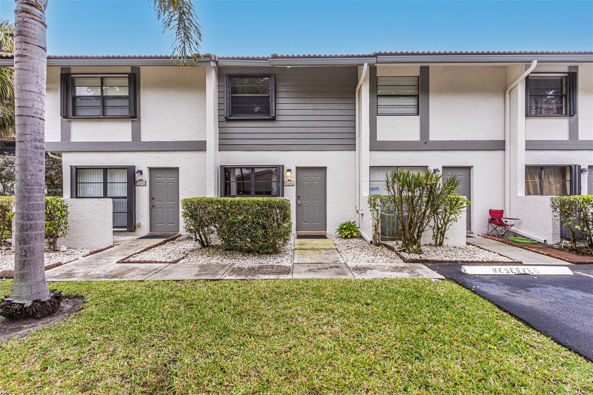 Very Strong Association. Can purchase with 3%. updated and impeccably kept condo/townhouse w/low maintenance, no assessments, and they have reserves! Walking distance to University Dr, shops, restaurants, & a 2-minute drive to Whole Foods! You can't beat this LOCATION, LOCATION. The first floor has beautiful tile throughout, & beautiful wood cabinetry in the kitchen w/granite counters, and SS appliances. Impact Hurricane windows and doors along with accordion shutters. Both bathrooms have been beautifully updated & custom cabinetry in all closets. W/D in unit. Large patio, right across from the pool area, and the garden area is lined with Magnolia trees. Very strong association. . No downpayment requirement per the association.