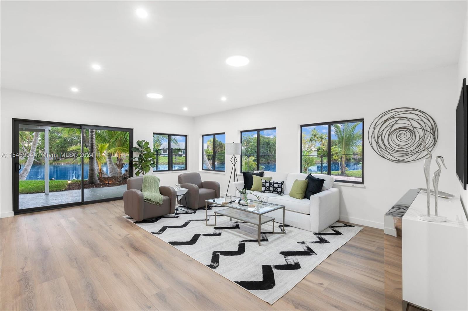 Discover modern living in Sunrise, FL, with this pristine residence boasting a harmonious blend of comfort and style. The exterior welcomes you with a lushly landscaped front yard and an inviting entrance, complemented by elegant outdoor sconces. Step inside to experience a sleek, open-plan kitchen, adorned with chic pendant lighting, a cascade island, and stainless steel appliances—the perfect setting for both entertaining and everyday living. Upstairs, expansive windows allow natural light to accentuate the attention to detail throughout the living spaces. Outside, the backyard oasis features a sparkling pool and a serene water view, adding a touch of tranquility to your leisure time. This corner of paradise awaits to enrich your lifestyle with its prime location and refined ambiance.
