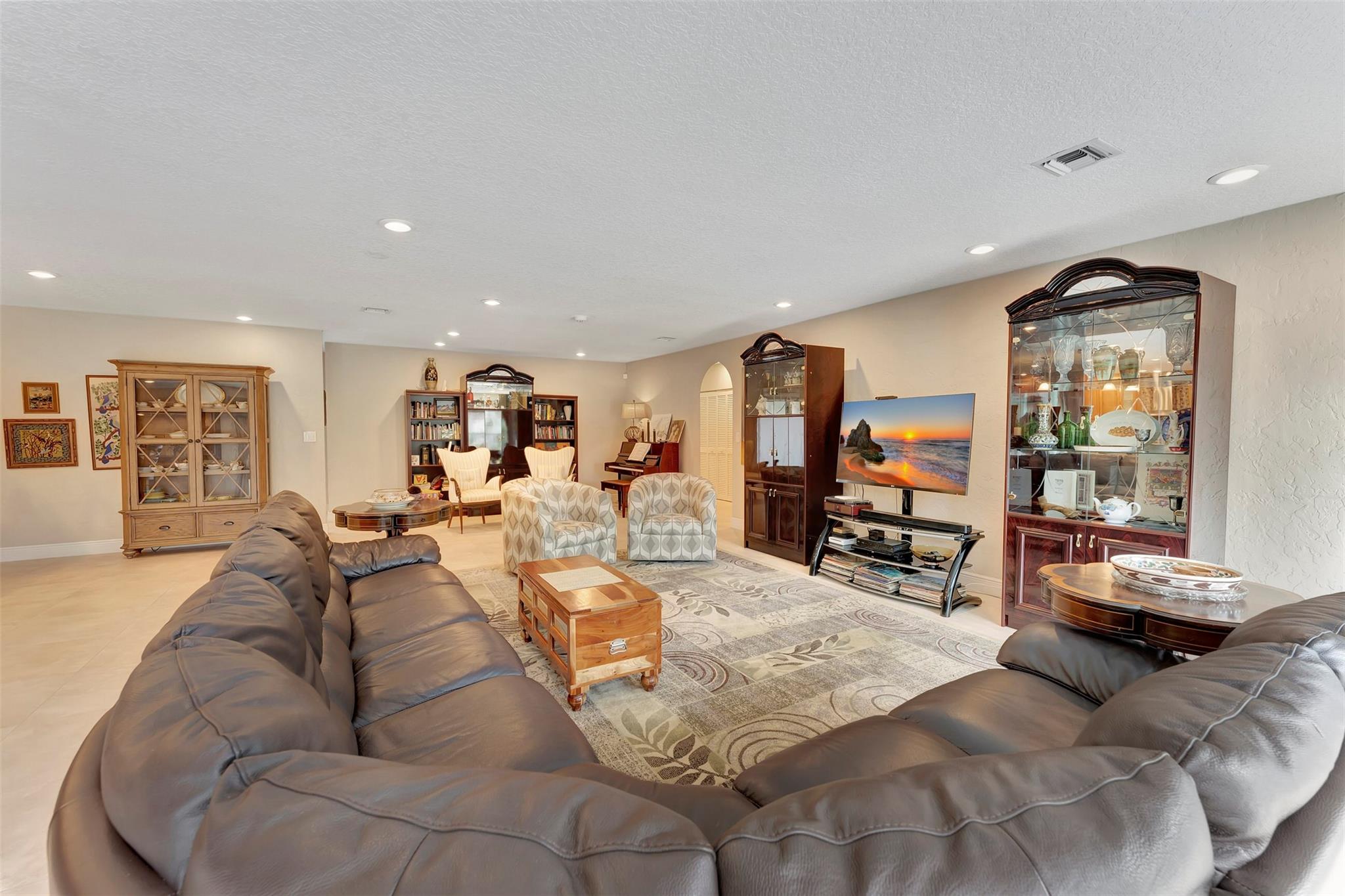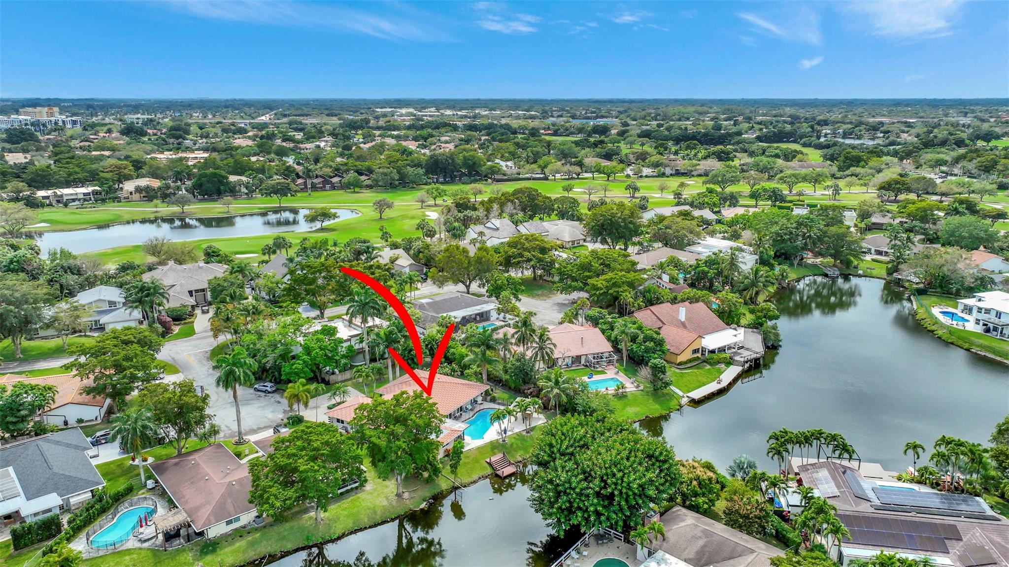 THIS ONE WILL IMPRESS! 5/3 single family home in Jacaranda Country Club. Spacious home on a quiet cul de sac with a water front oversized lot & 2 paved driveways. Large remodeled kitchen with custom wood cabinets, center island with Kitchen Aid & Bosch appliances, including double ovens for added convenience. . Enjoy the wood burning fireplace on chilly winter evenings and open concept ideal for entertaining with a split floorplan for privacy. Bathrooms have all been remodeled Motorized Hunter shades in great room. You will love floating in the fully remodeled salt water pool with a view of the serene water, the travertine deck, custom Pergola and screened in patio for those relaxing evenings. Close to shopping, restaurants and airport. ROOF 2013, AC's 2021 and 2023, IMPACT THROUGHOUT.