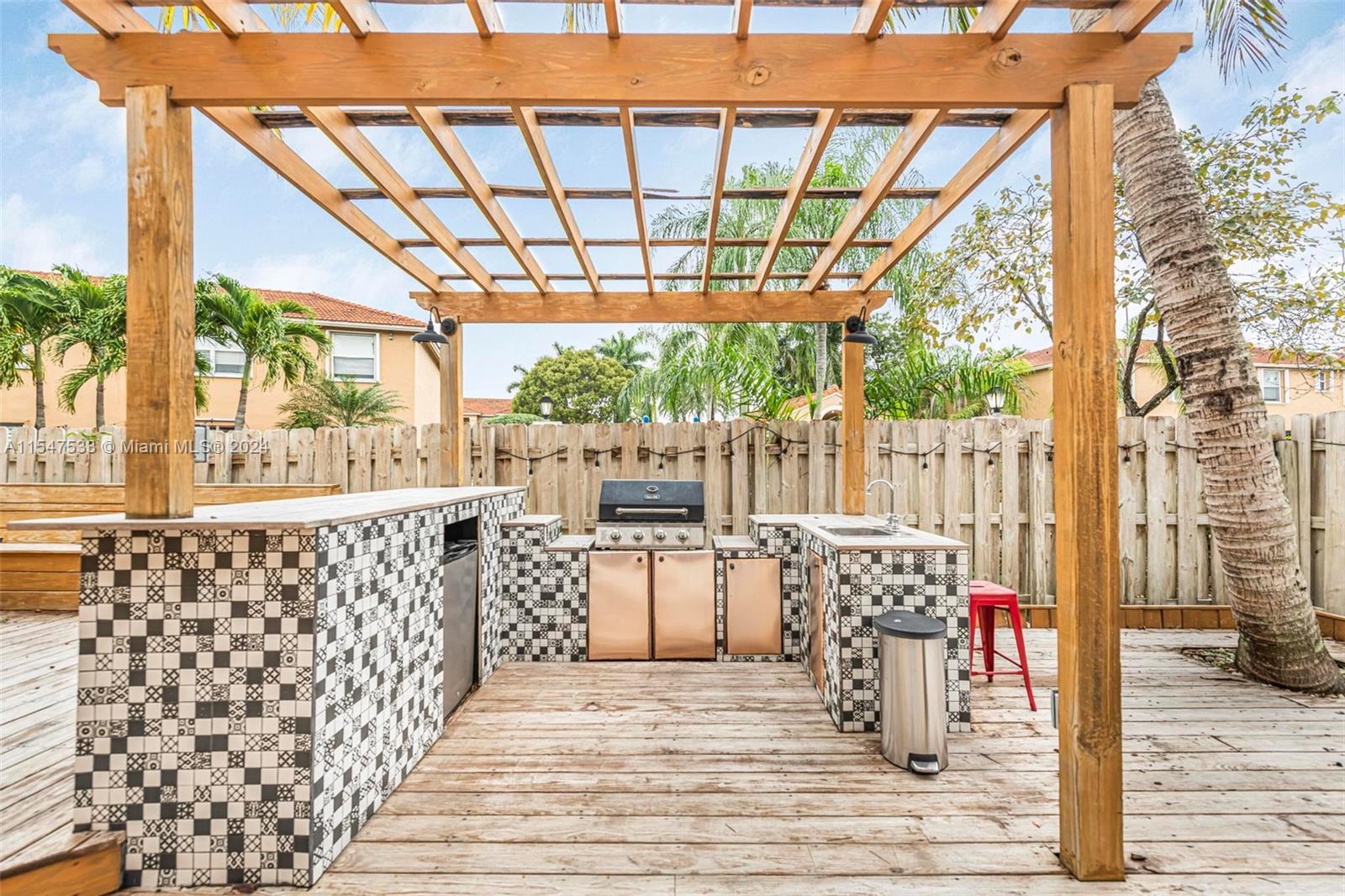 Beautiful 3 bedroom 2.5 bathroom townhouse located in the lovely Antigua community. Step inside and discover thoughtfully designed interior, open layout & natural lighting. Meticulously maintained, this property is turn key! Tiled floors throughout first floor. Updated kitchen with granite countertops and stainless steel appliances. Large primary suite with new flooring and a gorgeous updated master bathroom! All bedrooms are on the second floor. Updated fixtures, lighting and nice designer touches all through. Enjoy South Fl living in the AMAZING backyard area w/ wooden deck, summer kitchen, BBQ and lots of room for entertainment! Over 20K of upgrades was put into the backyard! New electrical panel! Fantastic location and development with a community pool and more. Low HOA! Must see!
