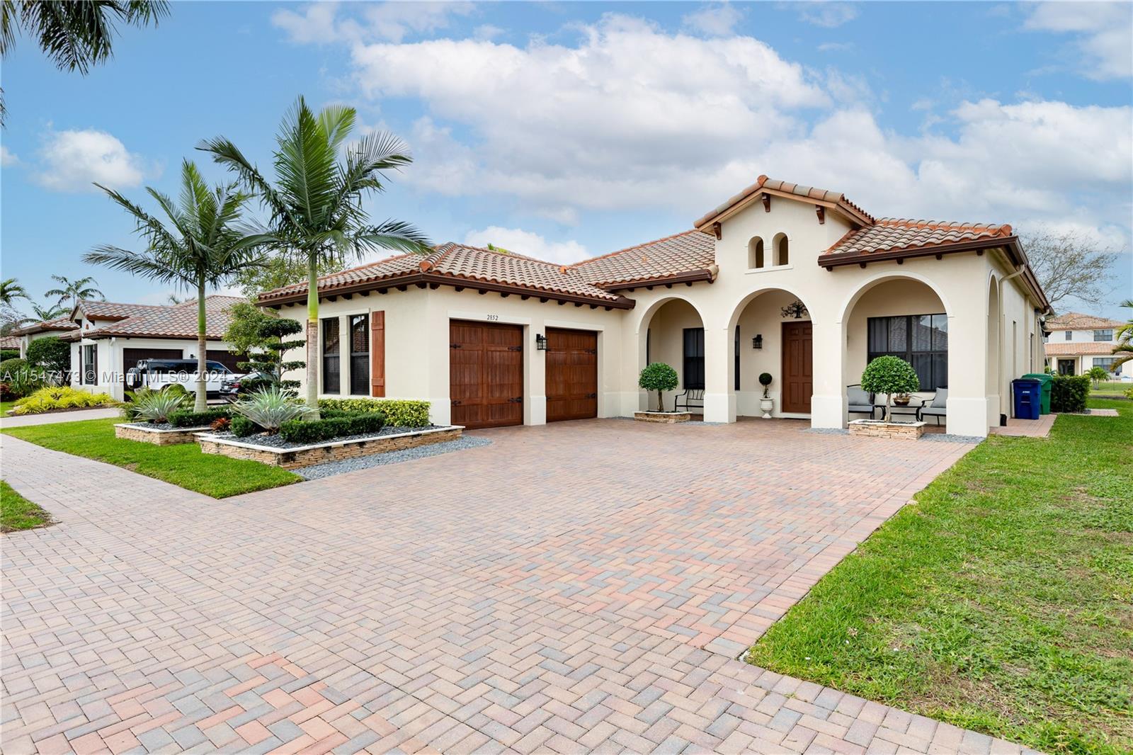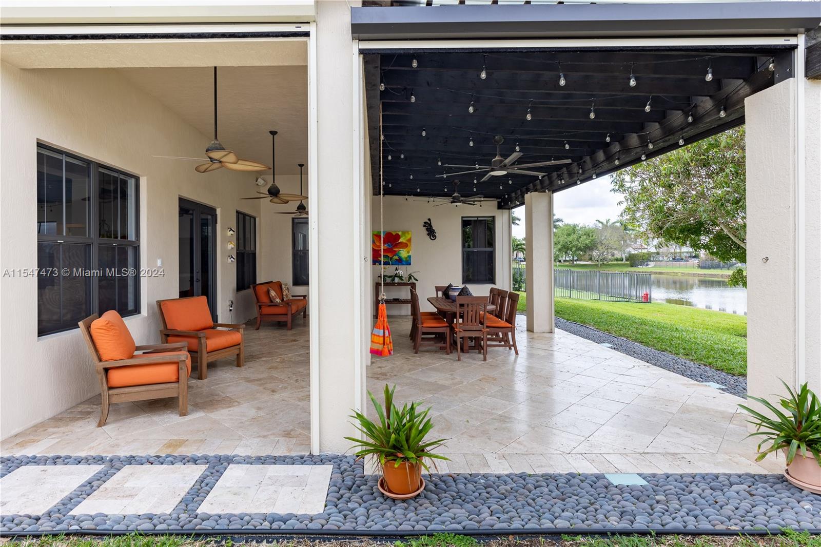 Building Area: 3,798 sf. Living Area: 2,860 sf. MAGNIFICENT DREAM HOME in the luxurious gated community of MONTERRA that offers a perfect blend of splendid lifestyle and comfort. RELAXING VIEW OF THE LAKE from a screened patio with a beautiful pergola. Natural travertine patio floors create an elegant and cozy ambiance with automated screens. Lavish and elegantly designed new landscape. Natural light floods through high impact windows. Beautiful kitchen in the heart of the house connects to the family room, informal dining area and the huge patio for enjoyment and relaxation. Resort-style community includes club house, party room, gym, pool, tennis, basketball, children’s water playground, on site administration, dog park and a walking and biking trail. A+ schools.